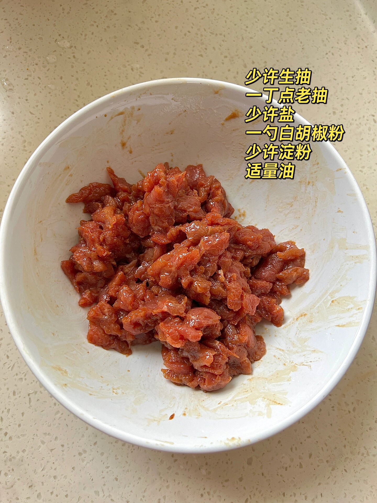2、牛肉先抓拌一下,放入少许盐➕少许生抽➕一丁点老抽➕一勺胡椒粉➕少许淀粉,抓拌均匀后,再加点油抓拌