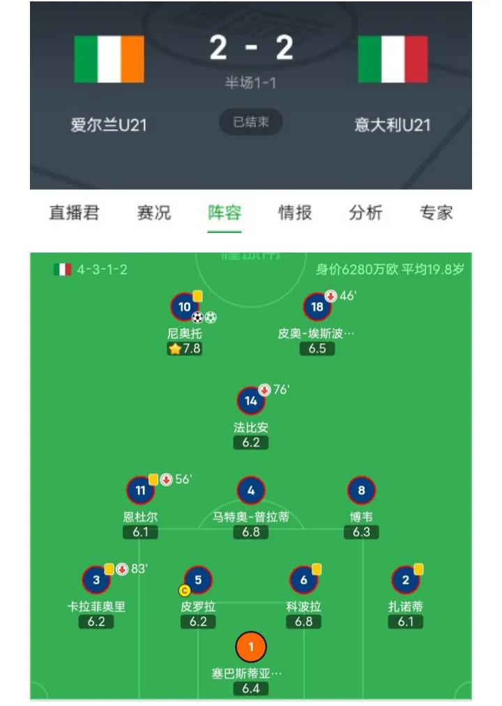 🇮🇹意大利足球🇮🇹 降维打击的尼翁托帮助意大利U21战胜了爱尔兰,跃升到小组第一 #足坛快讯#