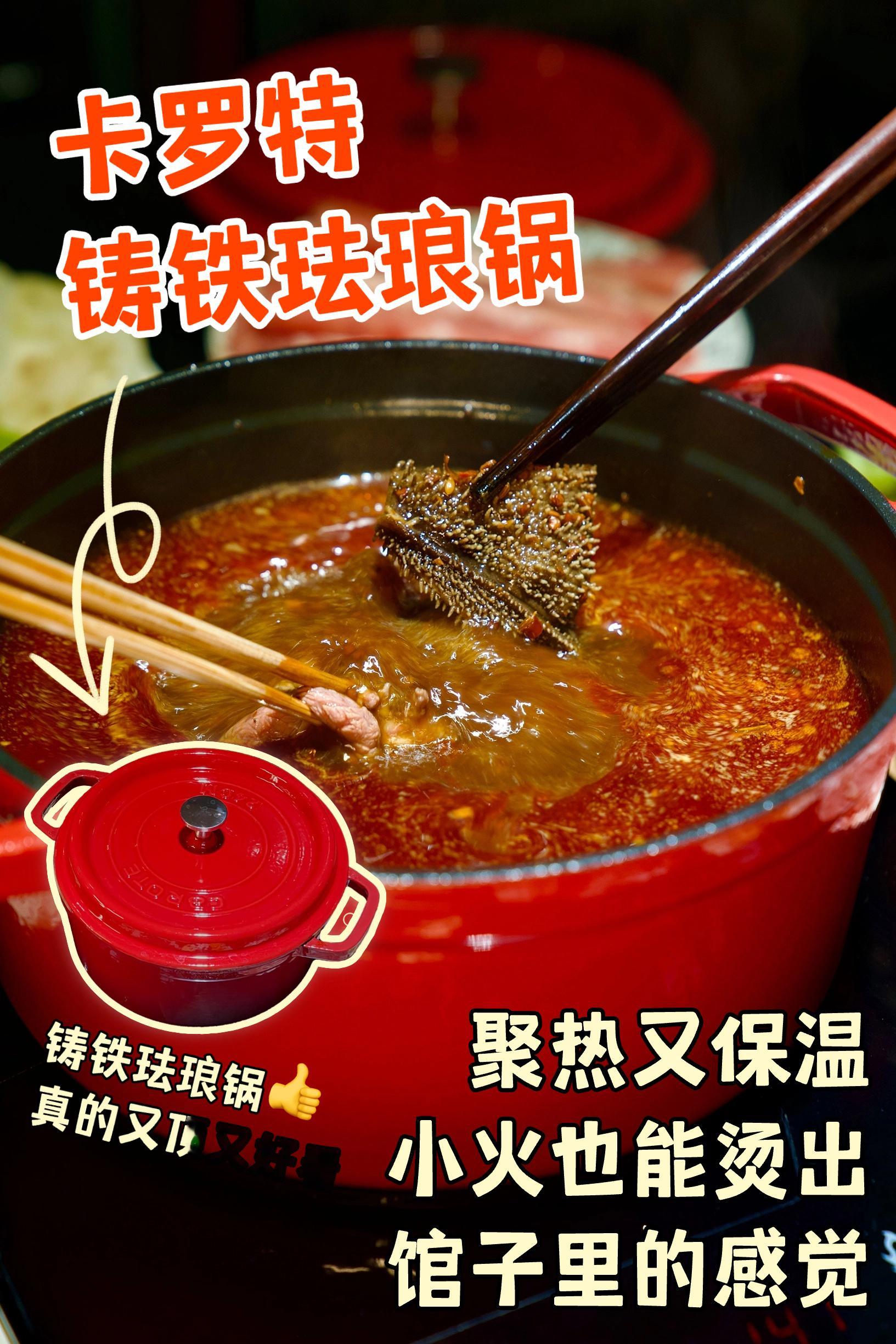 分量很扎实,用着很放心,而且完全不掉色也没什么磨损,这点真的很好。拿来煮火锅或者炖菜,只需要小火就可以了,真的很聚热,涮火锅的效率up!之前炖过牛肉,炖得糯糯的,而且锁水很好,没有流失水分,还是很嫩,很爱这个锅~