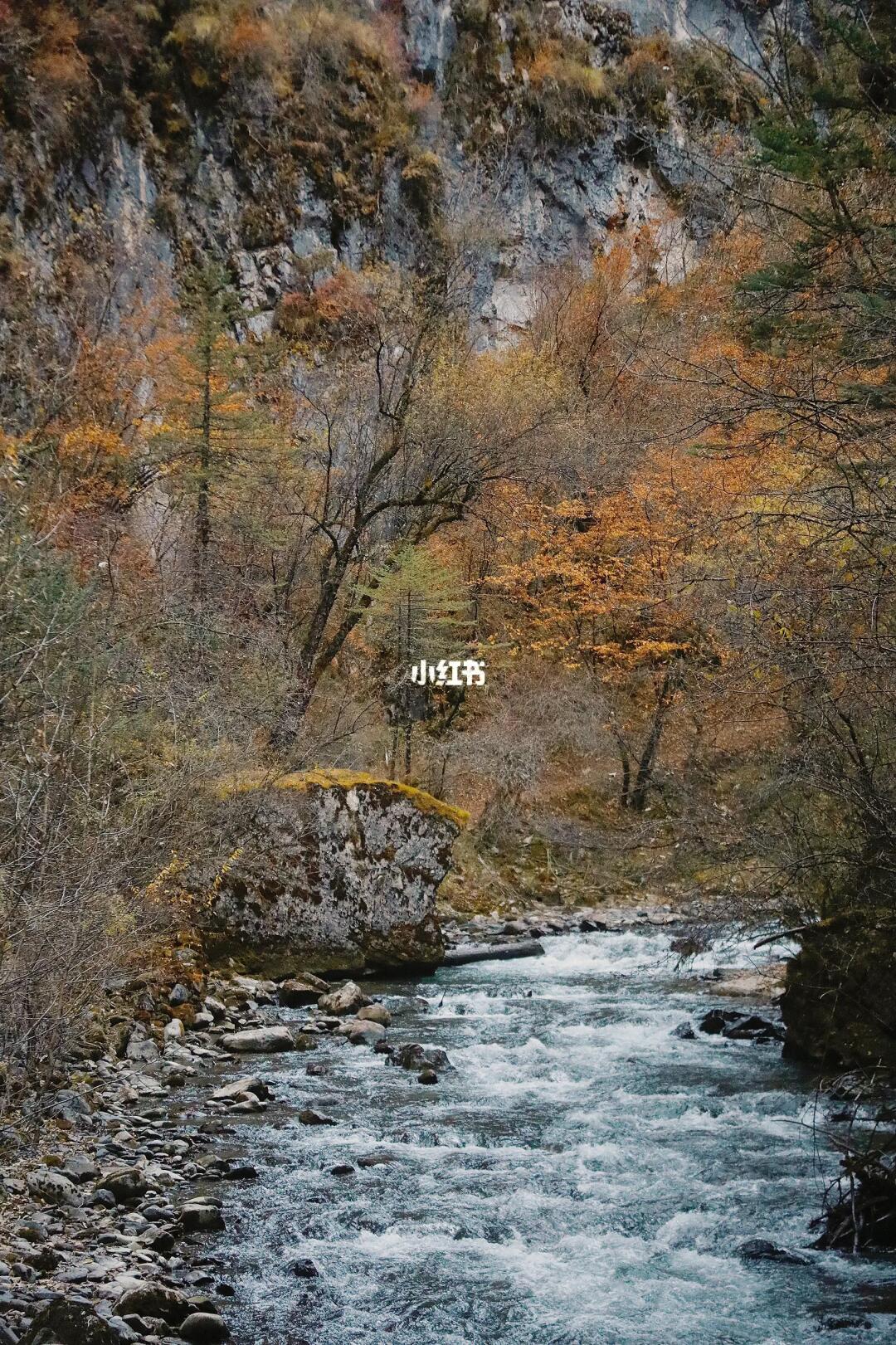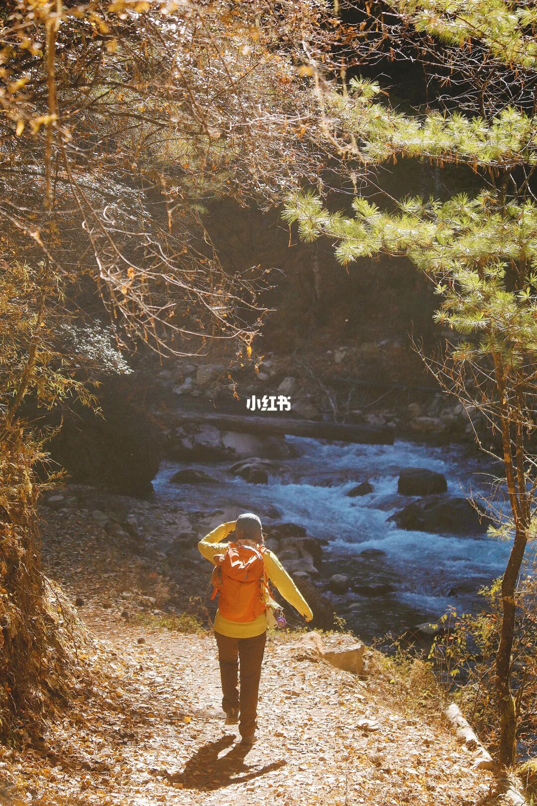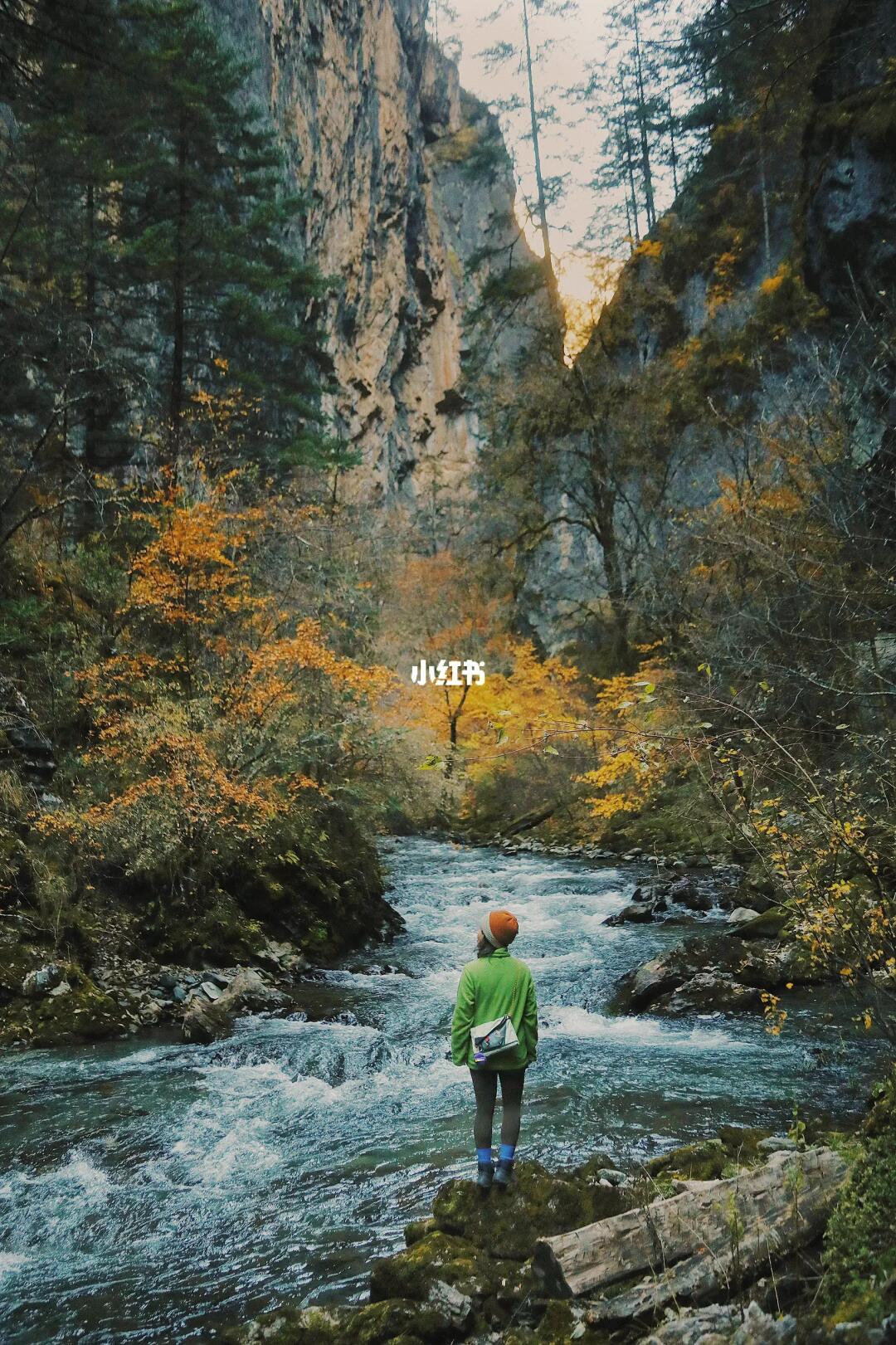 虽然是早上,山谷里一股凉意,河水透着凛冽的蓝色,但阳光冲破层层松林照耀下来那瞬间,整个峡谷被金光笼罩着.我才发现树叶间那些🍁红,橘,黄,橙……缤纷的没法用语言形容