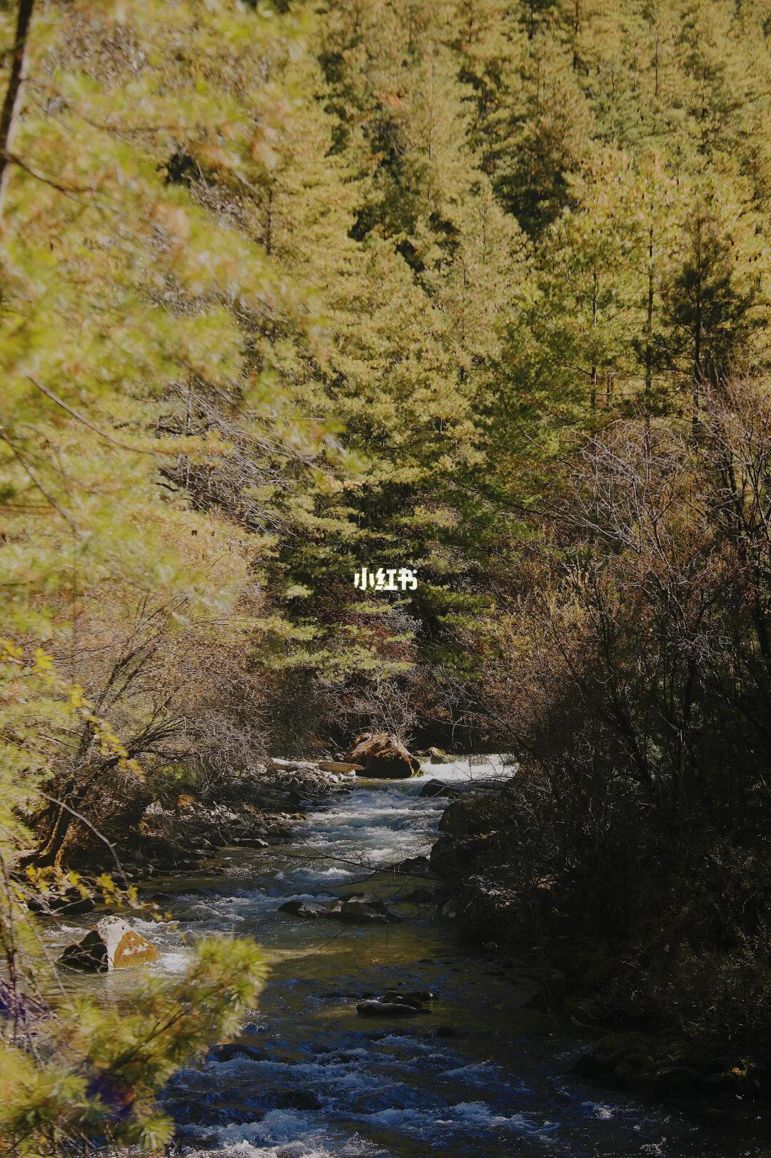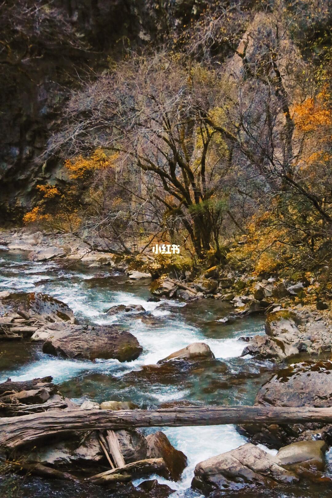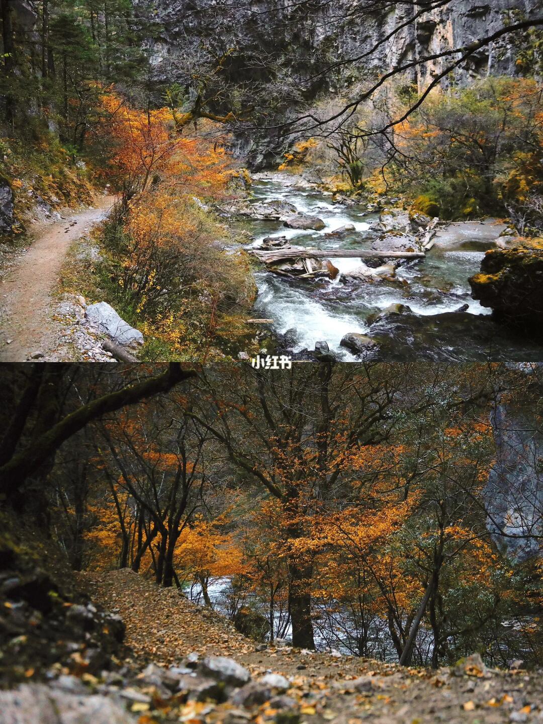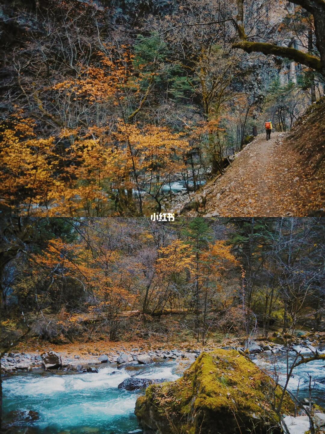 虽然是早上,山谷里一股凉意,河水透着凛冽的蓝色,但阳光冲破层层松林照耀下来那瞬间,整个峡谷被金光笼罩着.我才发现树叶间那些🍁红,橘,黄,橙……缤纷的没法用语言形容