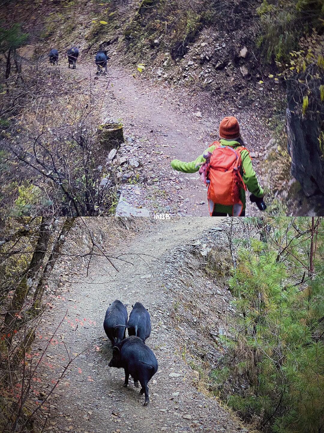返程遇到从牧场赶着🐷猪仔下山的姑娘,我们有一搭没一搭的聊着,她说她从牧场走到峡谷6、7个小时了,难得遇到我们.