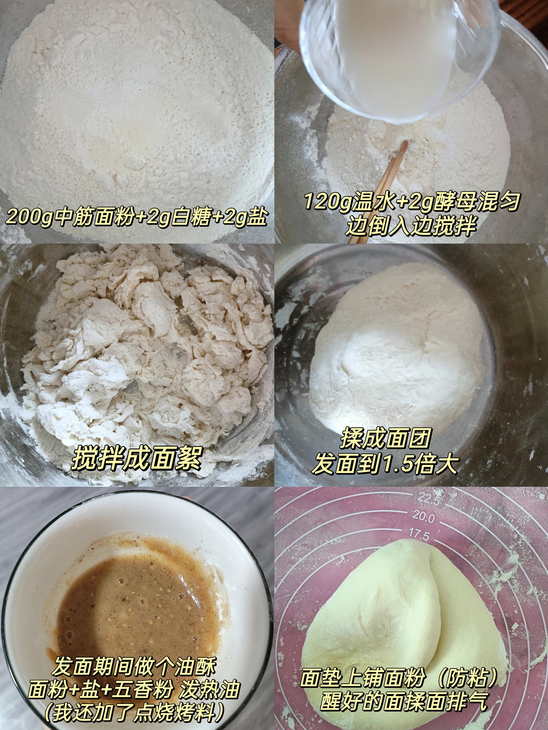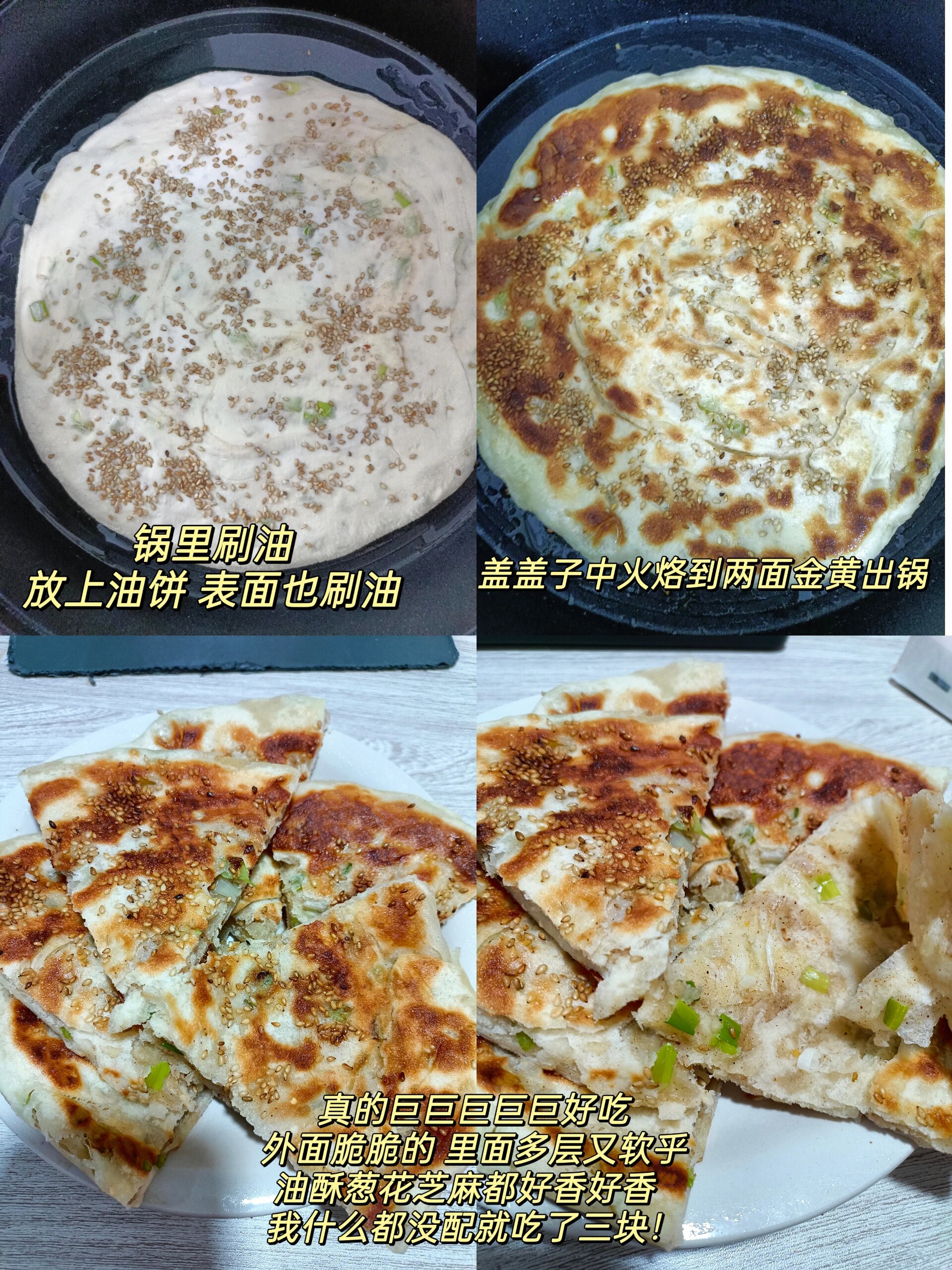葱花发面饼,姐在烙饼这一块从来就没输过! 这个发面葱花饼真的好好吃,发面的好消化,老人孩子都可以吃,外脆里面软乎多层,香晕了,一定要学起来 我写的配方适合两个人吃 1、和面:200中筋面粉+2g盐+2g糖,120g温水+2g酵母,搅拌成面絮,揉成面团,发到1.5倍大 2、油酥:面粉+五香粉+盐 泼热油 3、发好的面团揉面排气,擀成长方形,切一下抹上油酥和葱花,从一边卷起来,卷成圆锥,下面捏一下,竖起来,按压一下,擀薄 4、平底锅刷油,放入饼,饼表面也刷油,盖盖子,中火烙到两面金黄出锅