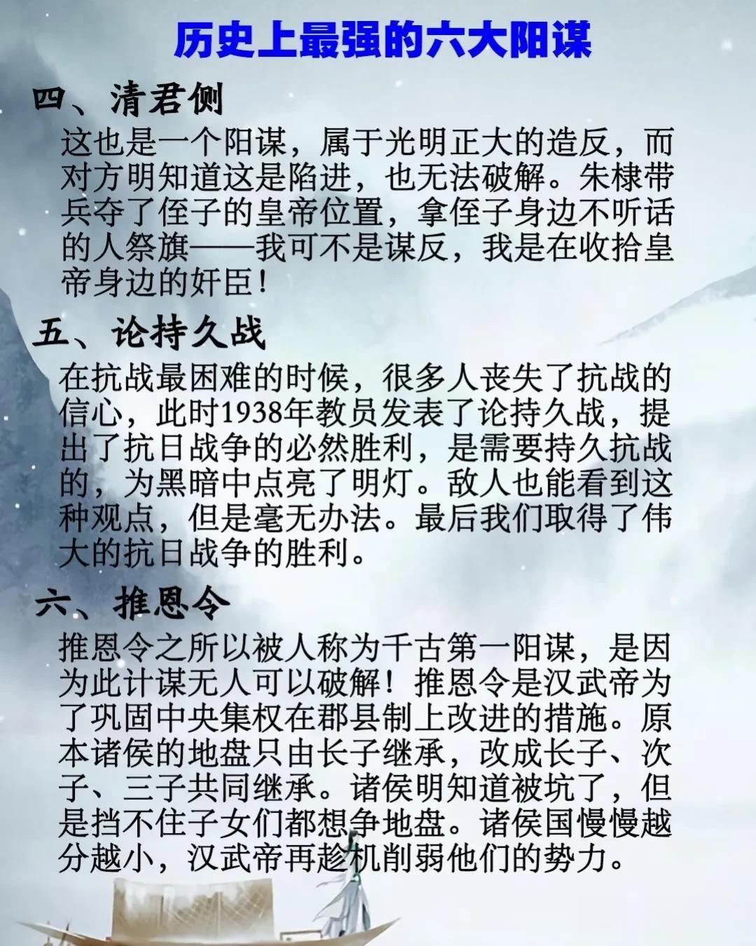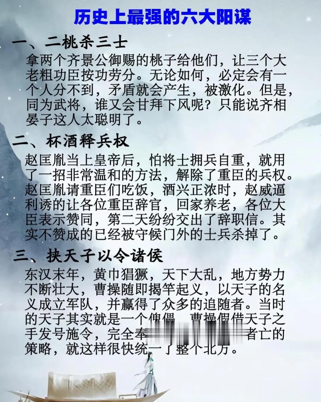 不愧是老祖宗留下来的智慧,看完历史上的这六大阳谋,真的是一个比一个厉害,最后一个根本无法破解,没事跟着古人学为人处世、经营之道,生存之道!让我们从中获得智慧,人生就避免很多弯路! 如果你总觉得自己没心眼,缺少职场智慧,不是被领导耍,就是被同事坑,那一定不要错过冯梦龙的《智囊》这本书,被世人赞誉为千古谋略第一书,谓之为“古代智谋之精华,海纳圣人智慧”。没事看一看,增长智慧、提高情商,帮助你走出人生迷茫、生活苦恼、职场困境! 智囊中华智慧奇书