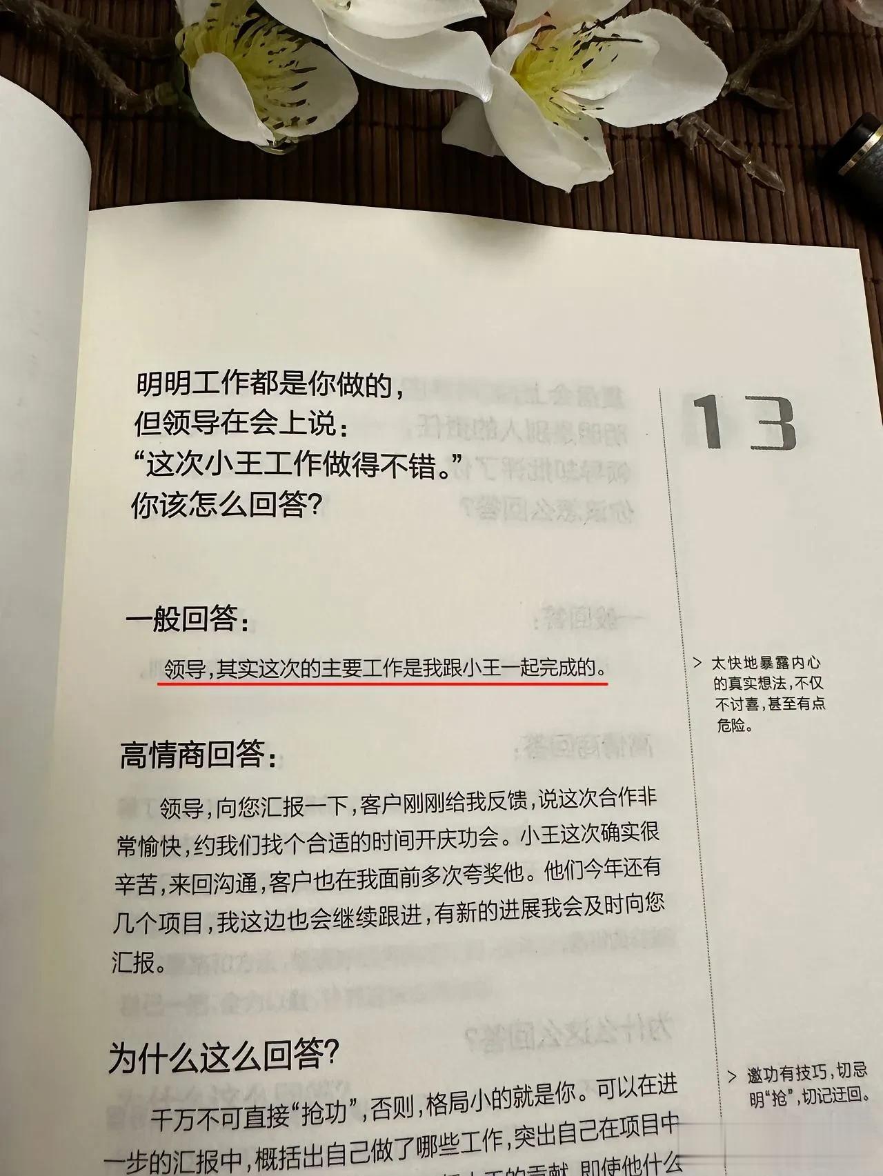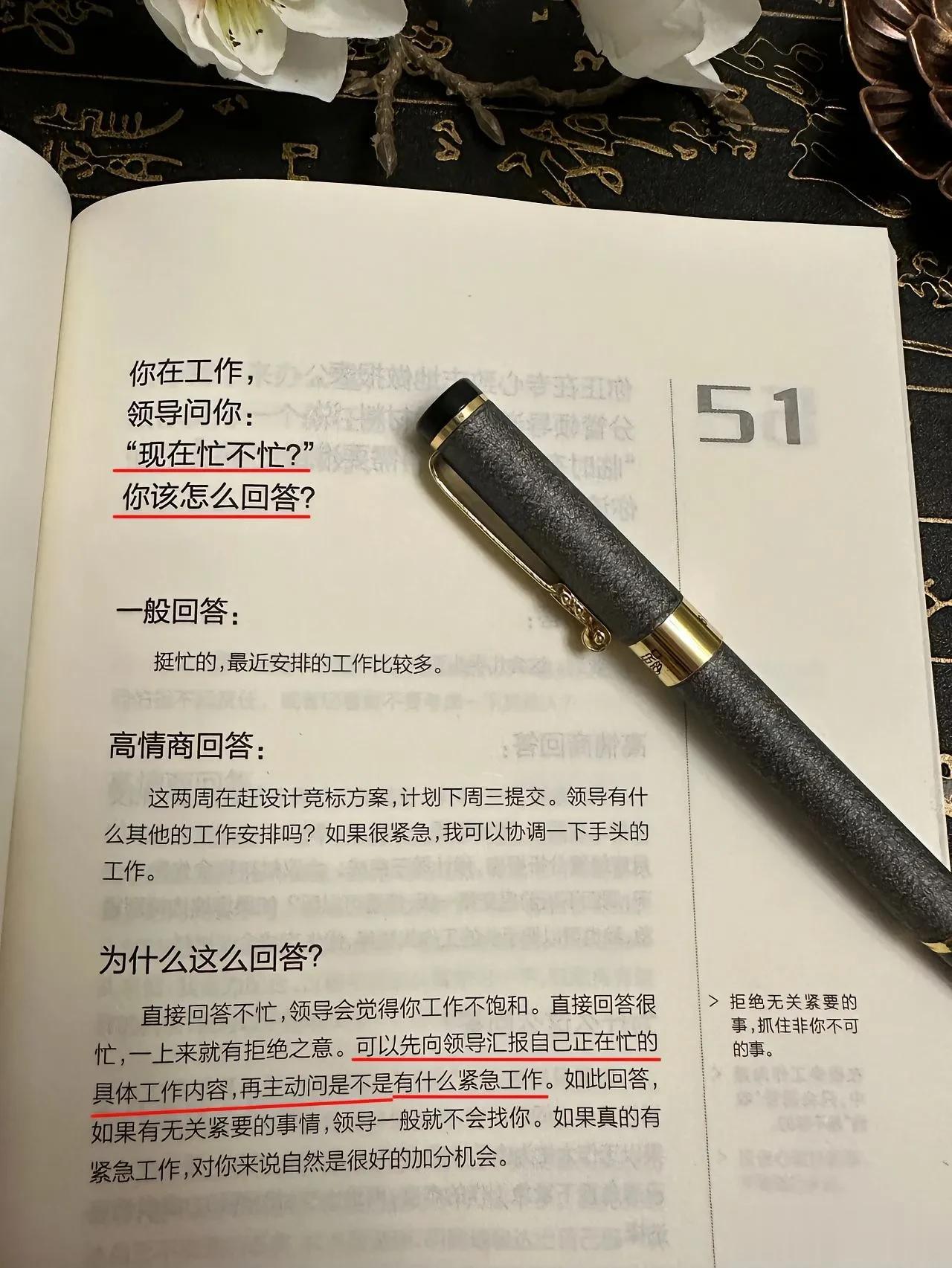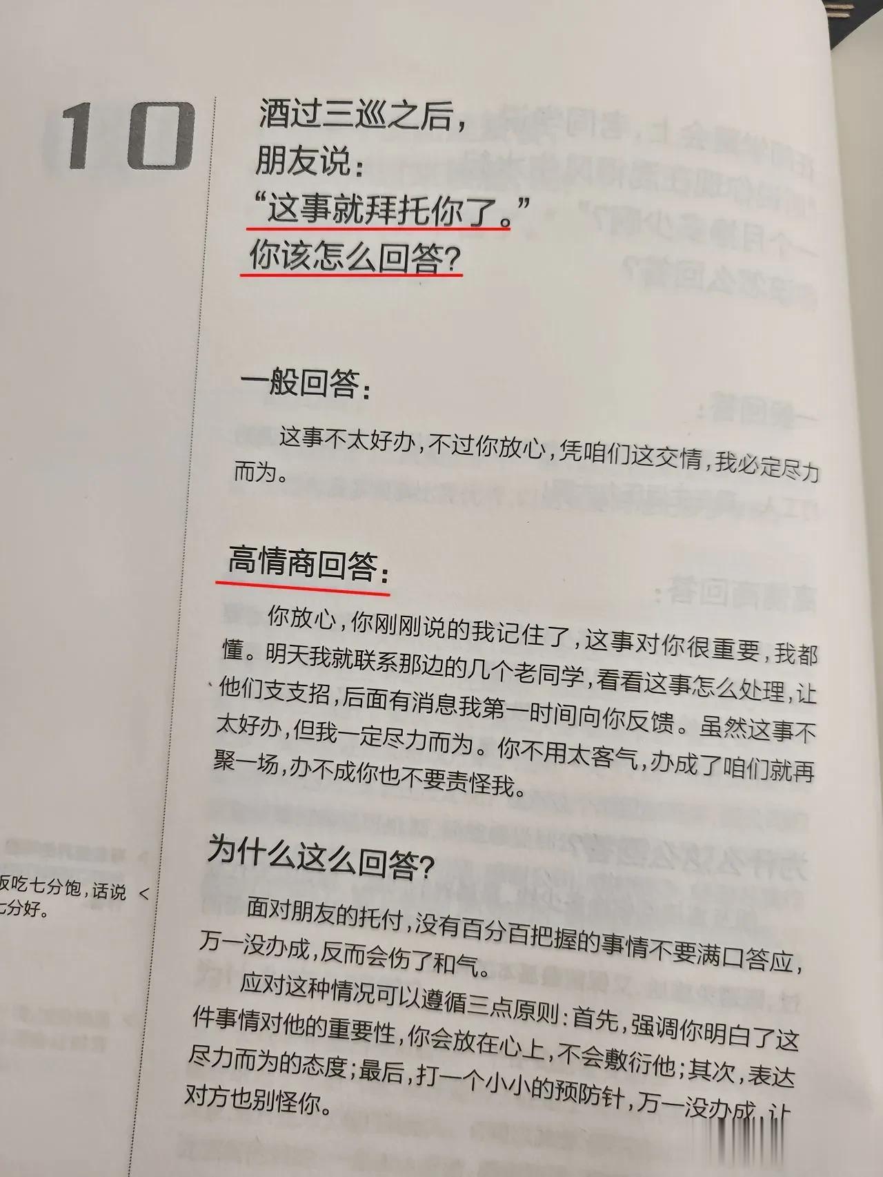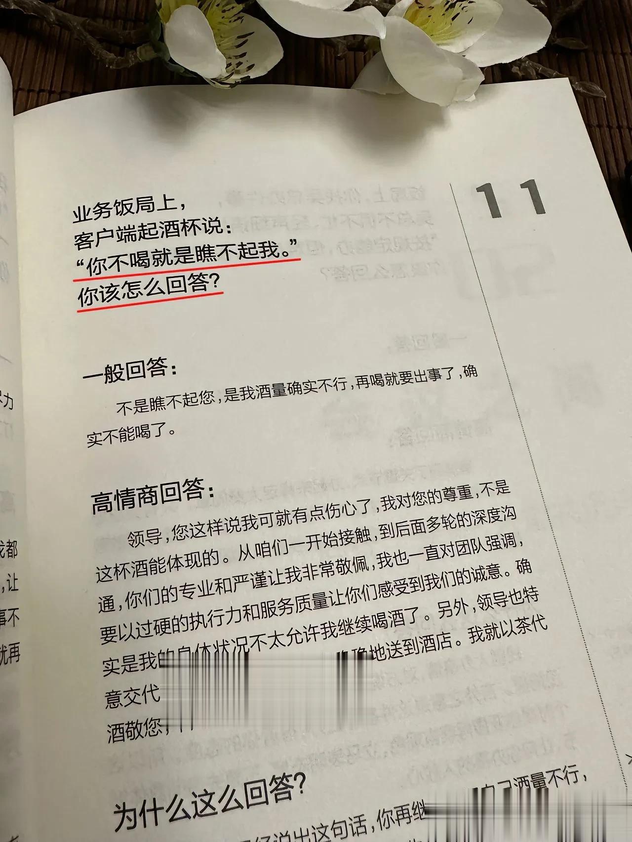 职场上,不要一开口就觉得很嫩,换种表达方式,让别人不敢小瞧你!那些在职场中混得好的人,早就摸清了领导的言外之意、弦外之音、识别同事的真情假意、避开职场的陷阱黑锅,在职场越混越好,深得领导厚爱!赶紧学起来!职场沟通技巧、化解尴尬、自我提升! 新优化的方案提交给客户后,对方反馈说: “这一版还不如上一版。”你该怎么回答? 晚上十点,领导给你发信息:“昨天说的报表做好了吗?”你该怎么回答? 部门新来的一个实习生,在报到时说:“我是高总介绍来的,请多关照。”你该怎么回答? 一位老同学找你说:“公司经营困难,能否借点钱周转?”可你手头也比较紧,你该怎么回答? 业务饭局上,客户端起酒杯说:“你不喝就是瞧不起我。”你该怎么回答? …… 说话不仅是一门学问,也是一门艺术。拥有好口才的人将会在职场、社交、恋爱、家庭中变得越来越成功。 职场这么回答你就赢了