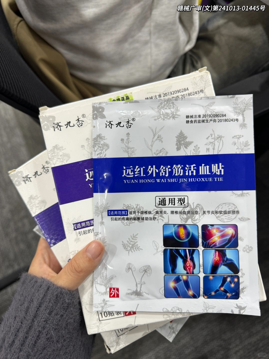手不舒服的时候贴一张济九杏贴膏,这个贴是远红外的,贴上一会就发热感觉很舒服,无纺布材质透气不闷汗,它是独立包装,有时候上班手不舒服我就会贴一贴。