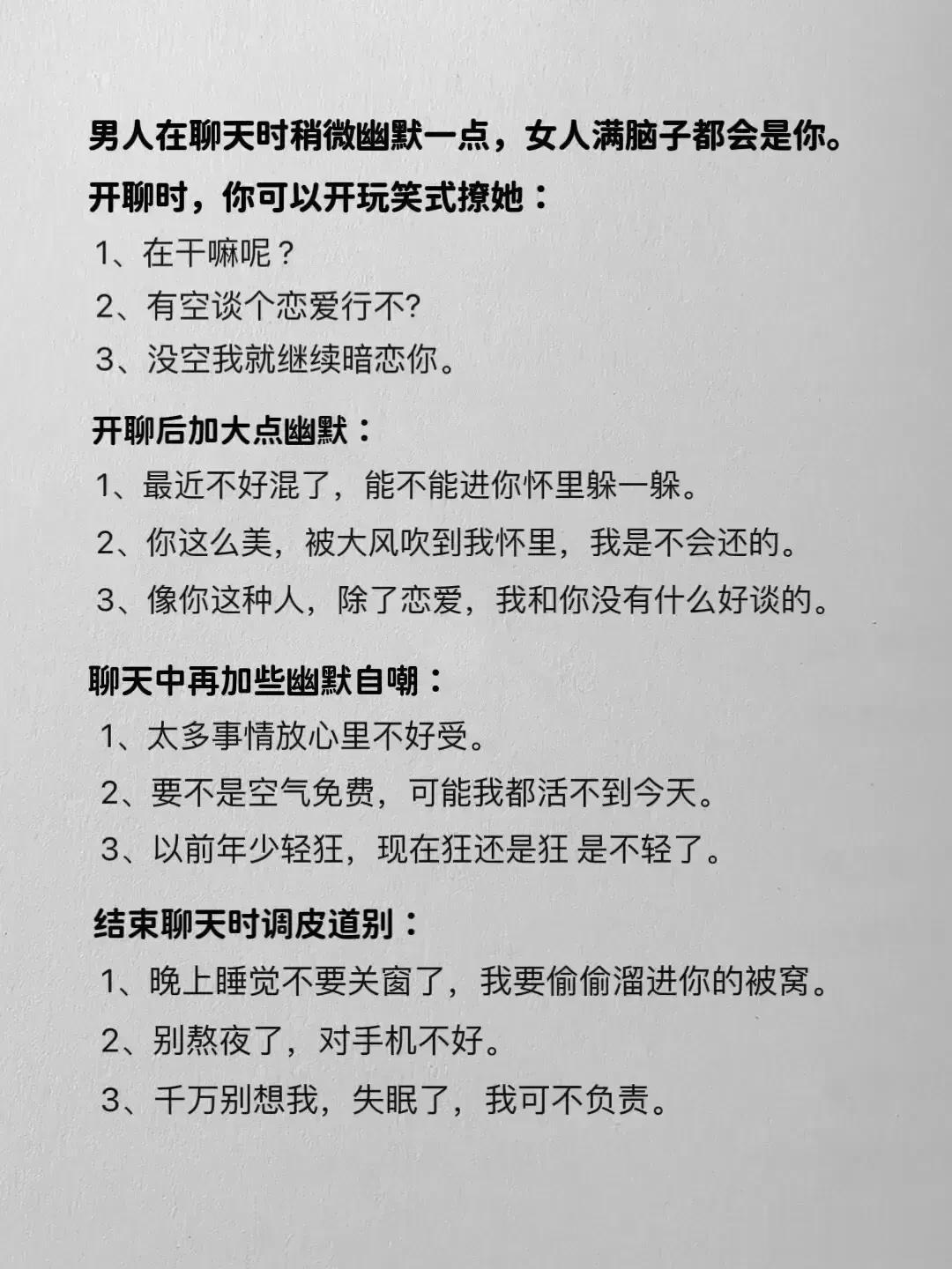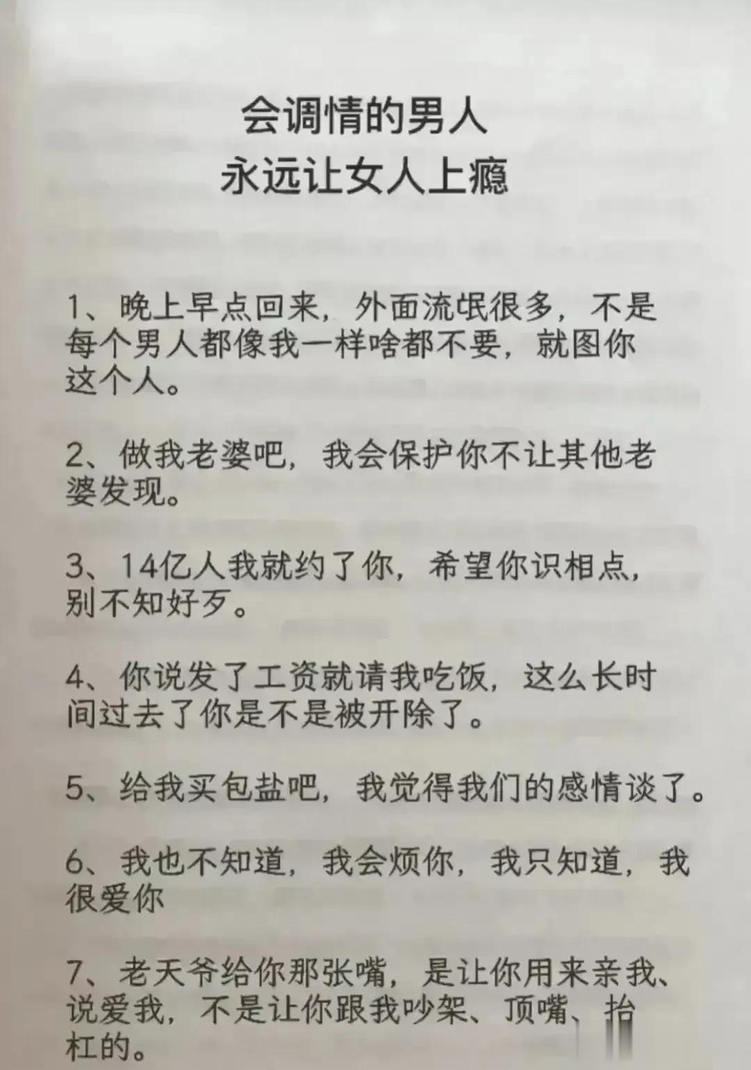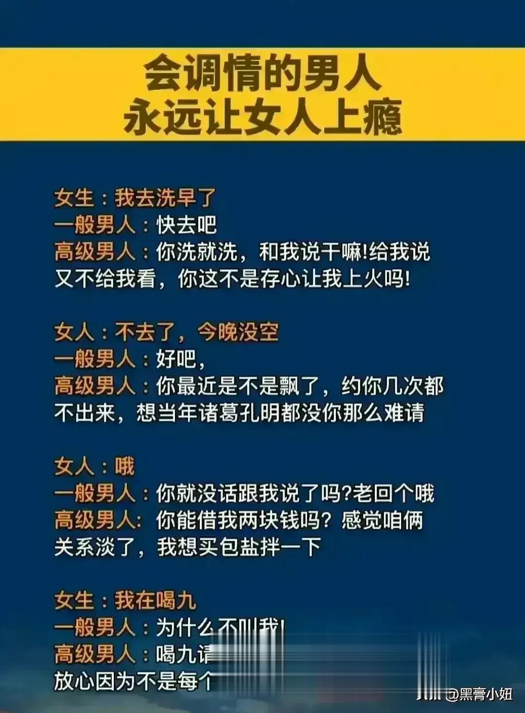 我滴天呐!原来会调情的男人,永远让女人上瘾,让对方越来越爱你!背下这份高情商幽默口才话术,让你的情商突飞猛进,不管和谁打交道,都能受到别人的喜欢,让你在生活和工作中聊出感情,聊出机遇!扩宽自己的人脉,越混越好,赶紧保存下来! 幽默的人往往具有大智慧,但幽默并非与生俱来的,幽默感是可以培养出来的,赶紧下方链接系统的学起来! 幽默沟通学沟通口才