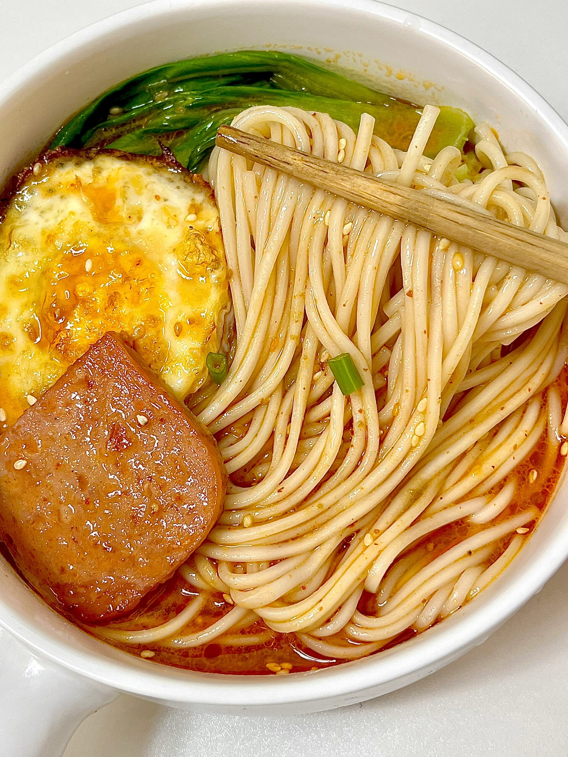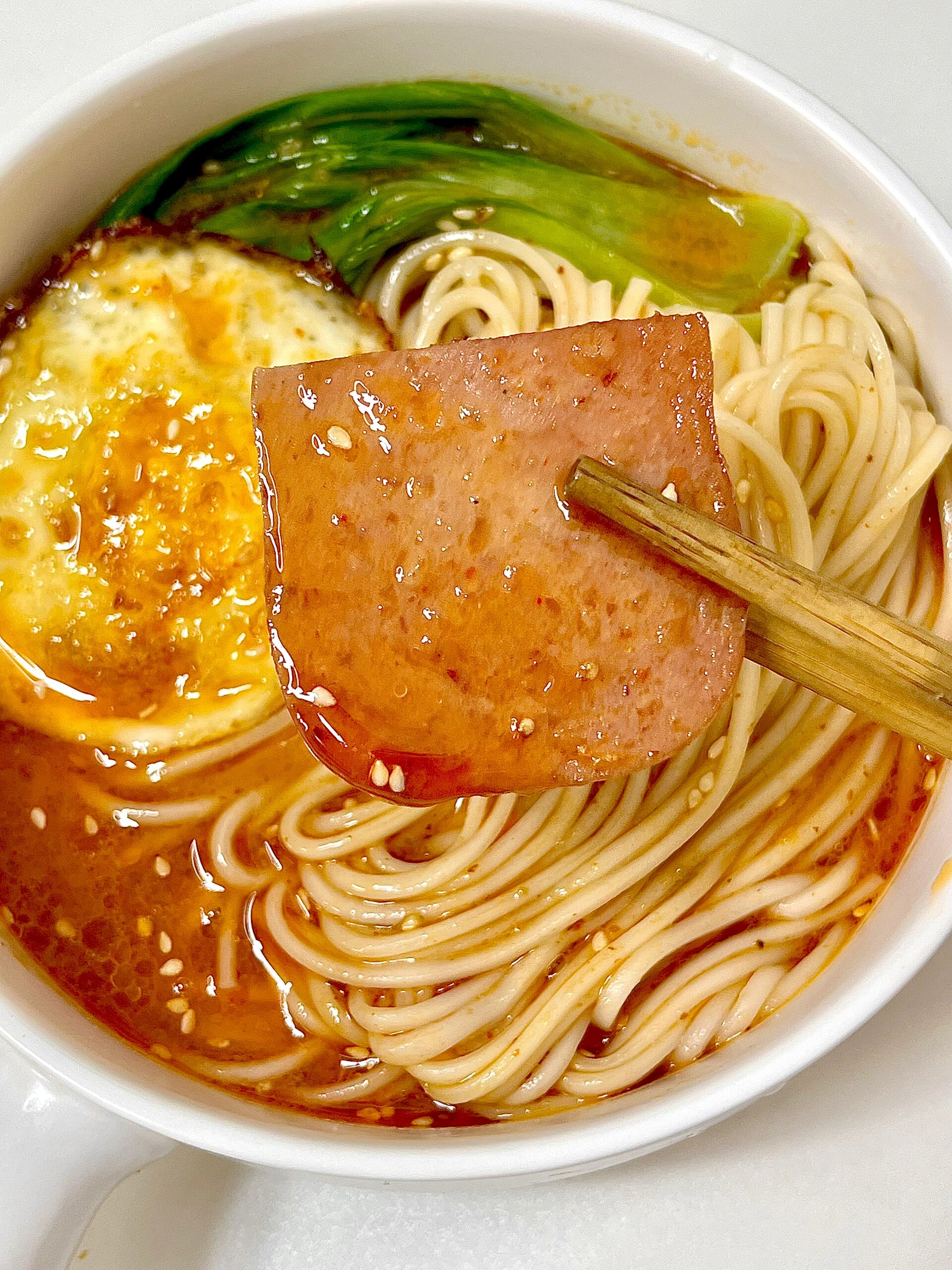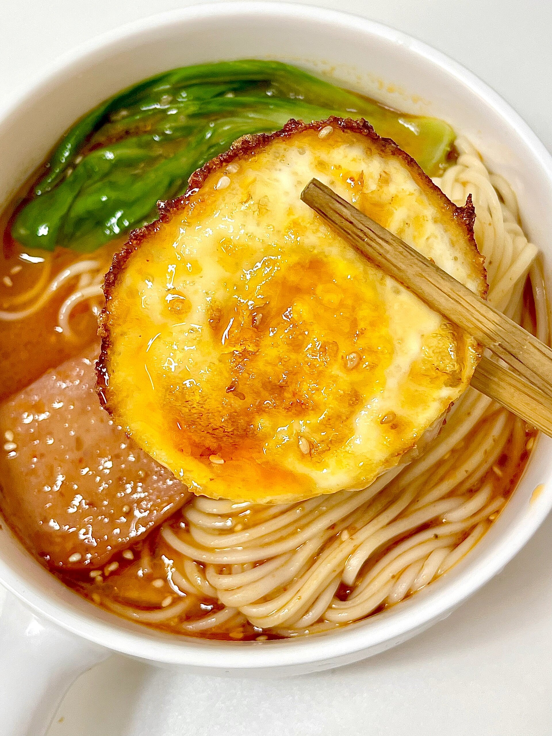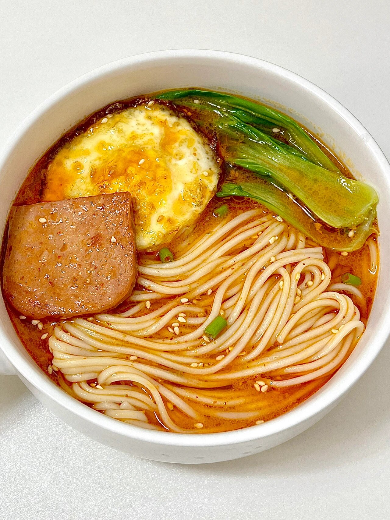 搭配荷包蛋、青菜、午餐肉,真的无敌鲜
