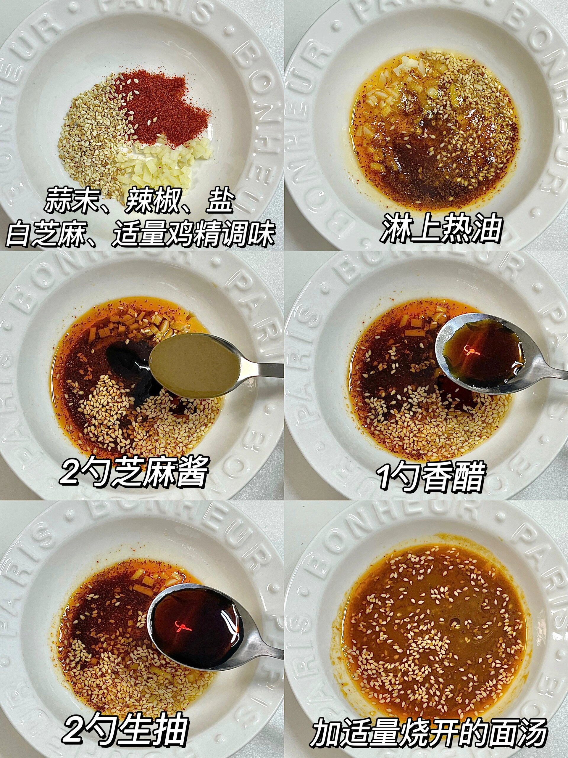 3、放2勺生抽、2勺芝麻酱、1勺香醋、面汤