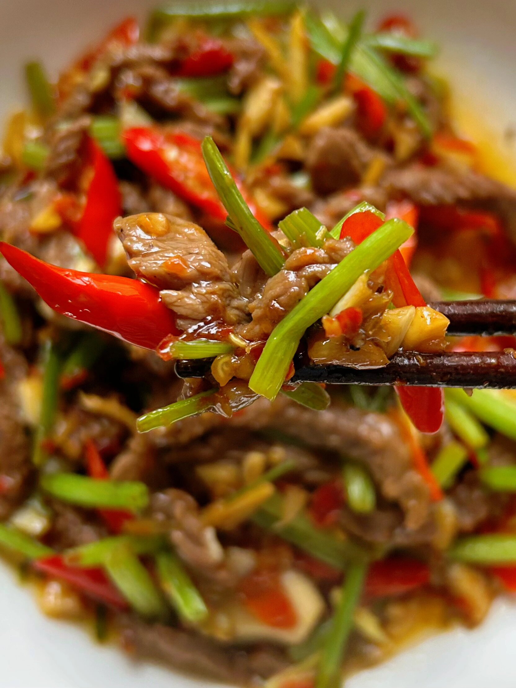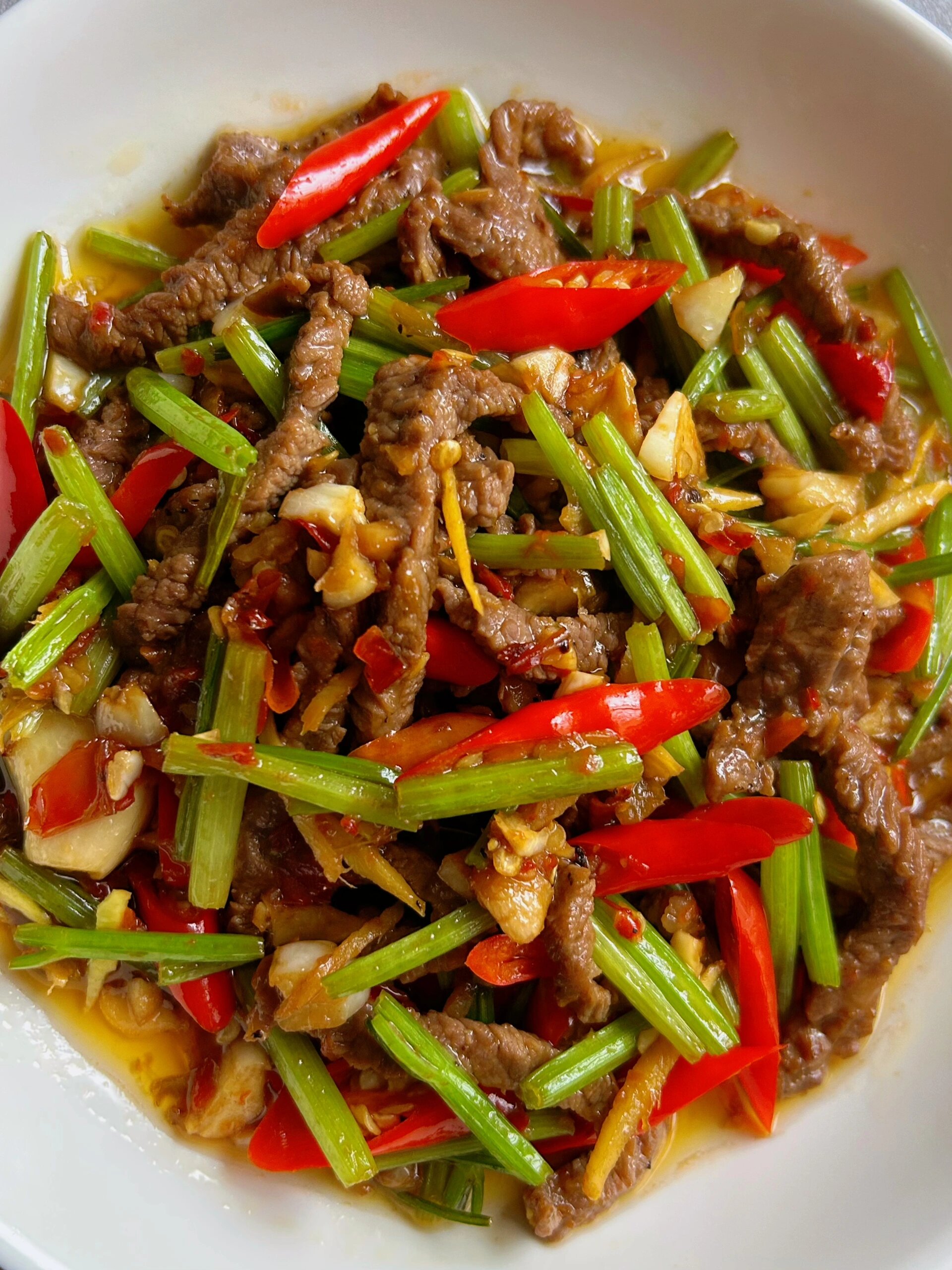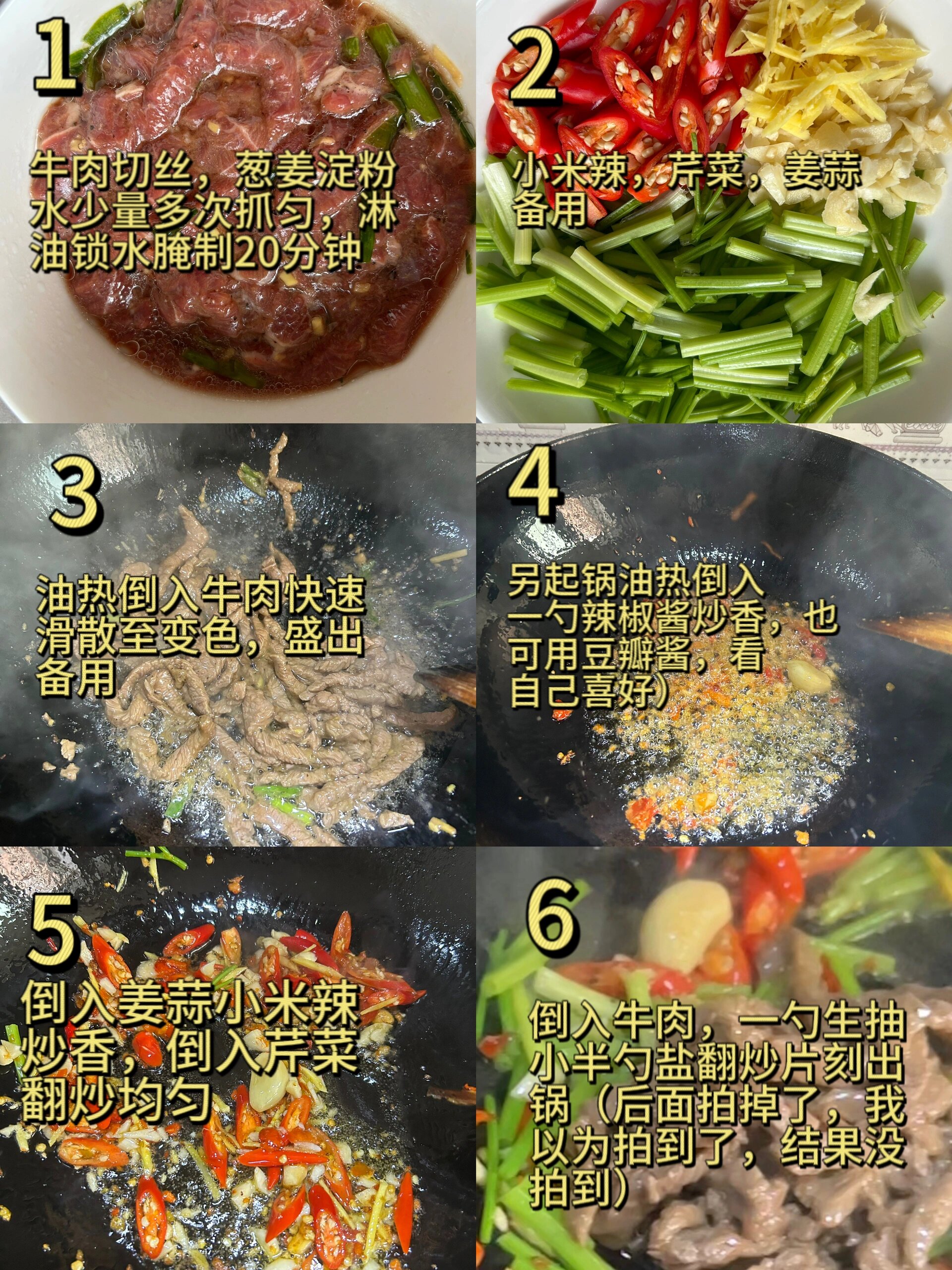 这个小炒黄牛肉香懵了 毫不夸张的说,这样炒出来的牛肉一点不比饭店味道差,芹菜的香味加上牛肉的嫩滑,配上米饭吃根本停不下来 食材:牛里脊,芹菜,小米辣,姜蒜 做法:1、牛肉切丝(我是买的时候卖牛肉让老板给我切好的),一勺生抽,少许黑胡椒粉,葱姜淀粉水少量多次抓拌均匀,淋上食用油锁水腌制20分钟,芹菜,小米辣,姜蒜末切好备用 2、锅烧热倒油,油热倒入牛肉快速滑散至变色,盛出备用 3、另起锅烧油,油热放入一勺辣椒酱炒香,倒入姜蒜炒匀,然后倒入芹菜翻炒片刻,倒入牛肉,一勺生抽,小半勺盐继续翻炒一分钟,出锅