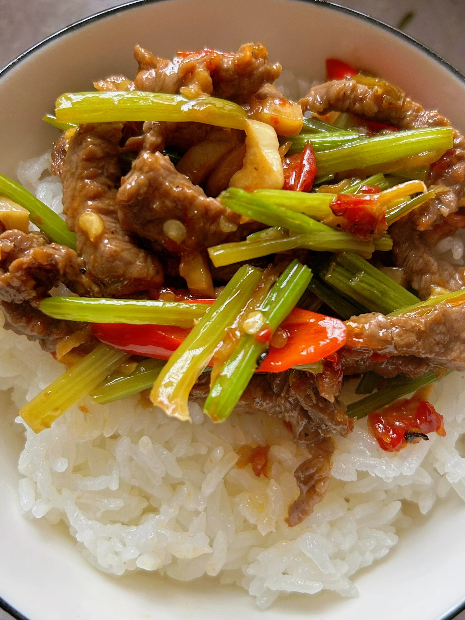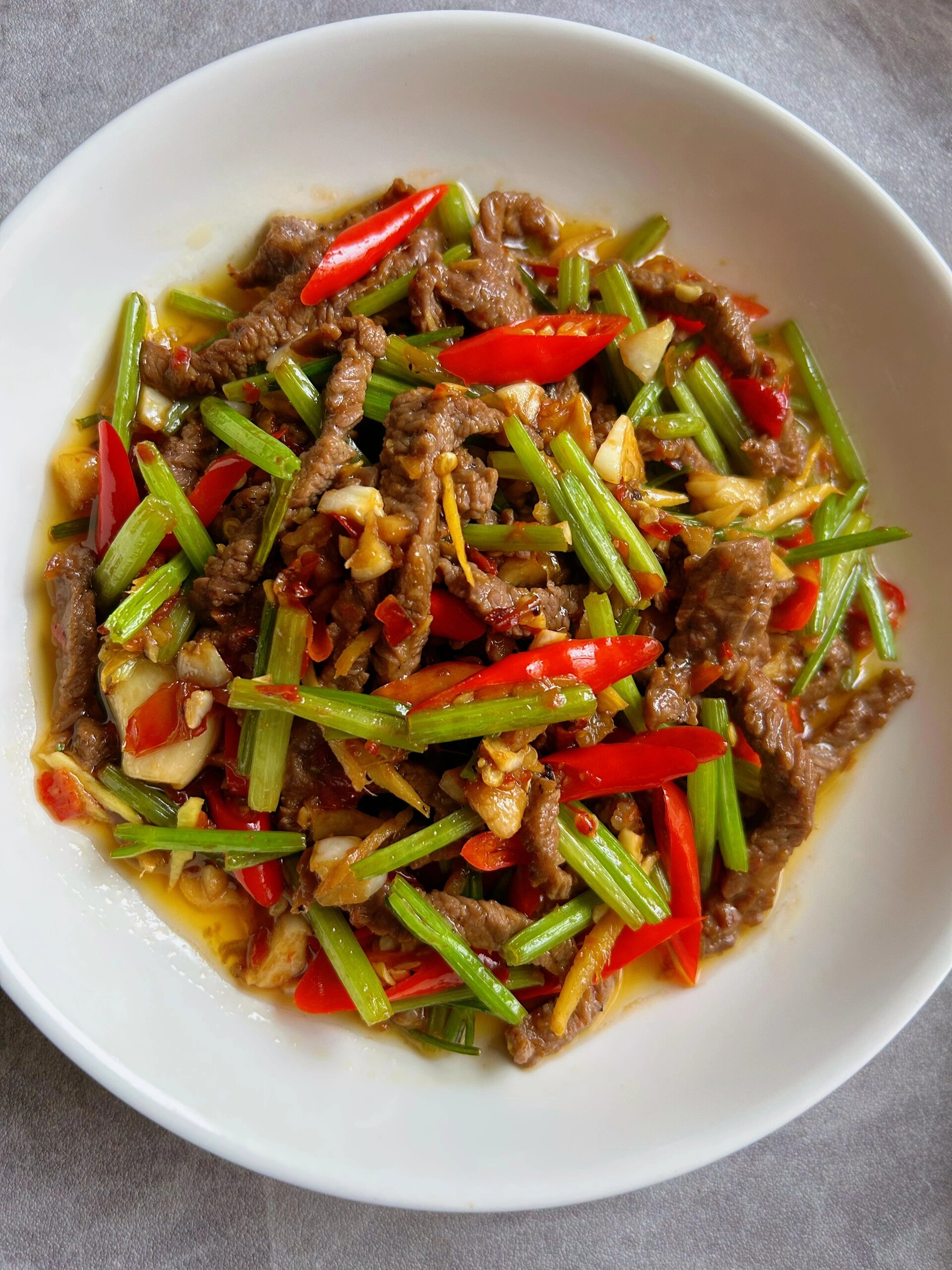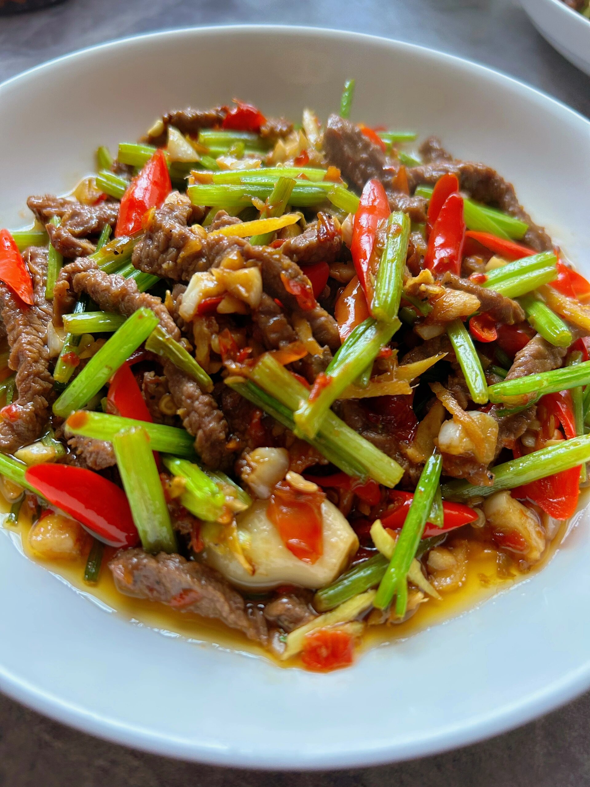 这个小炒黄牛肉香懵了 毫不夸张的说,这样炒出来的牛肉一点不比饭店味道差,芹菜的香味加上牛肉的嫩滑,配上米饭吃根本停不下来 食材:牛里脊,芹菜,小米辣,姜蒜 做法:1、牛肉切丝(我是买的时候卖牛肉让老板给我切好的),一勺生抽,少许黑胡椒粉,葱姜淀粉水少量多次抓拌均匀,淋上食用油锁水腌制20分钟,芹菜,小米辣,姜蒜末切好备用 2、锅烧热倒油,油热倒入牛肉快速滑散至变色,盛出备用 3、另起锅烧油,油热放入一勺辣椒酱炒香,倒入姜蒜炒匀,然后倒入芹菜翻炒片刻,倒入牛肉,一勺生抽,小半勺盐继续翻炒一分钟,出锅