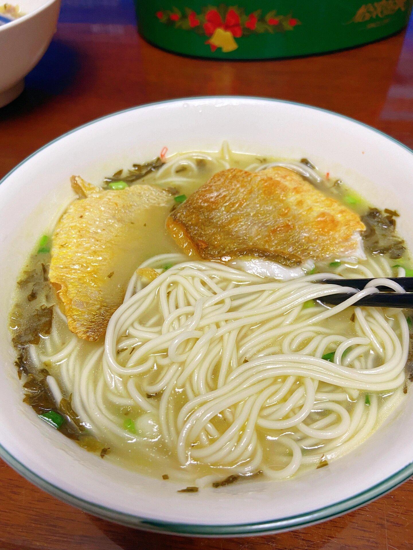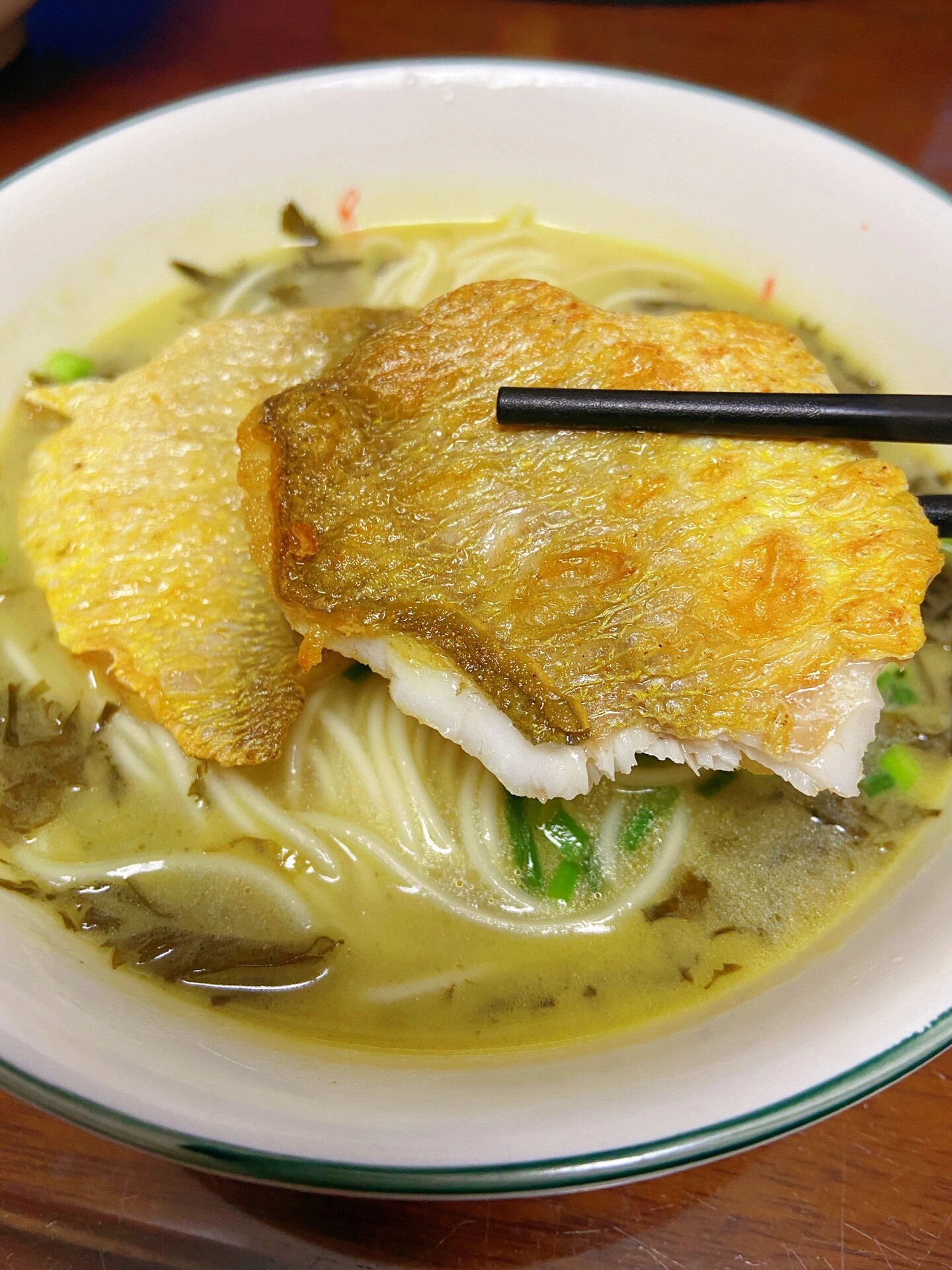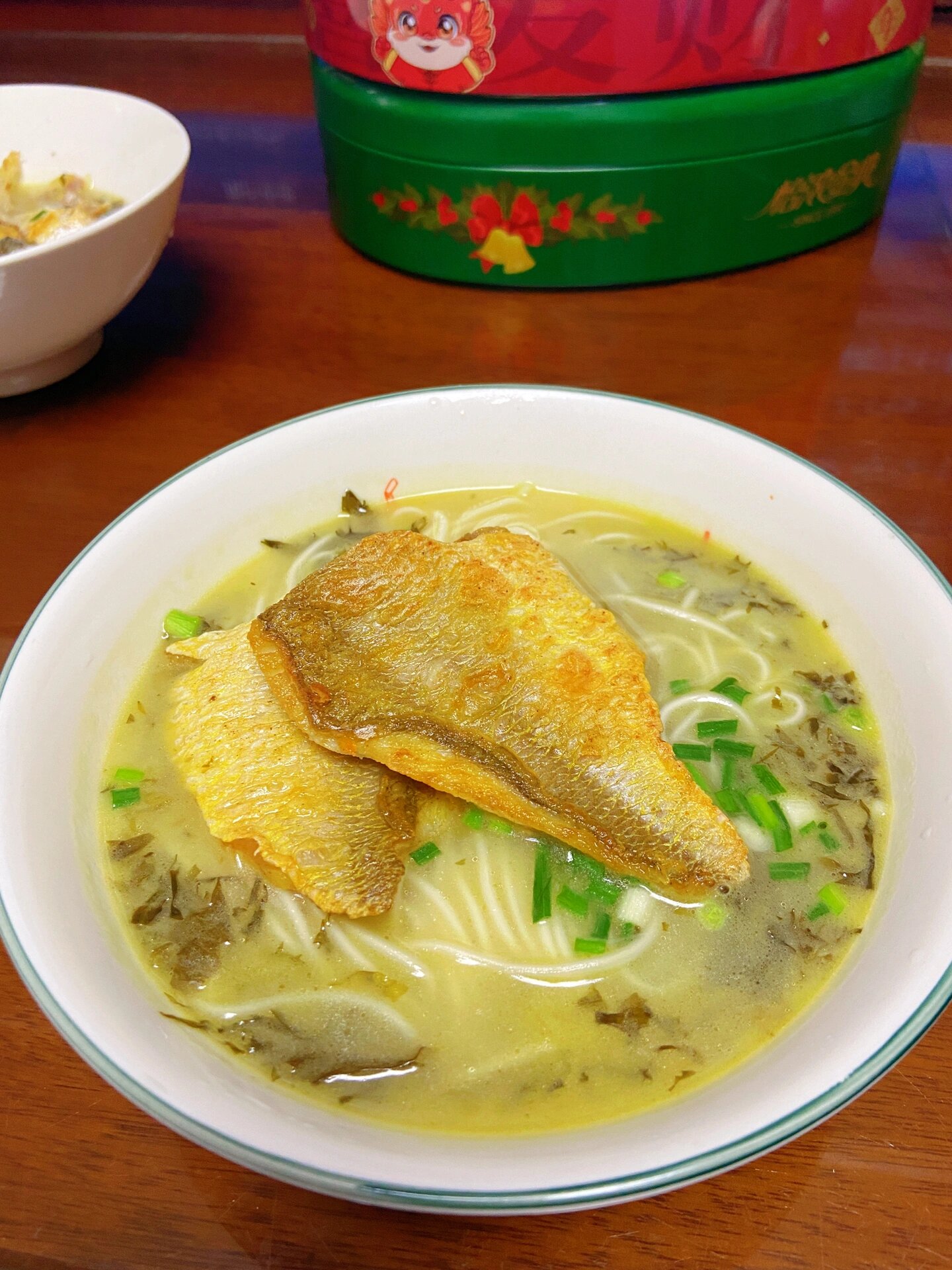 这道家庭版的雪菜黄鱼面真是太美味了!鱼肉细嫩鲜香,鱼汤底特别鲜美。雪菜的加入让整个面更加开胃可口。如果你喜欢面条的口感,可以尝试一下这种做法哦!