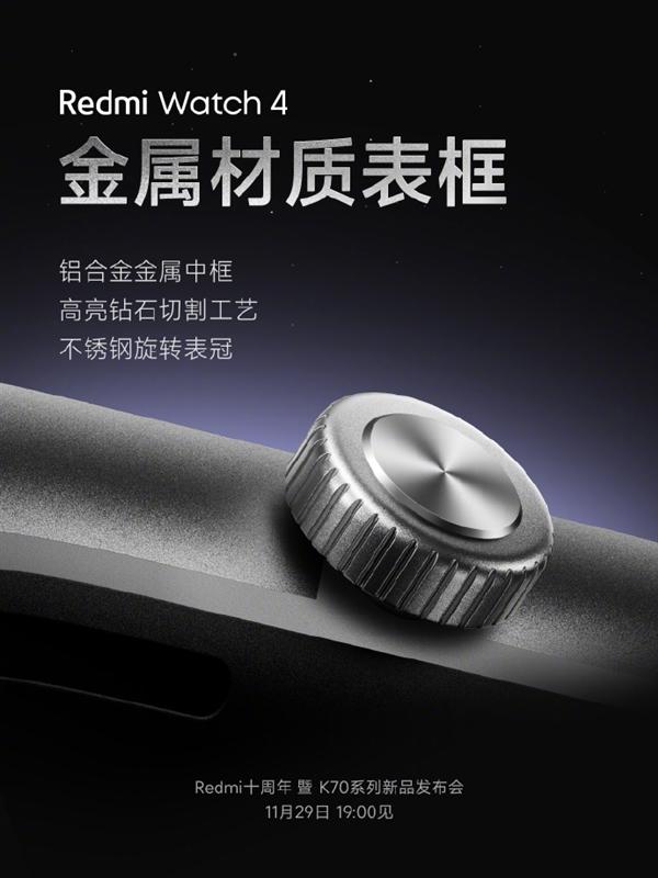 RedmiWatch4智能手表将在11月29日发布,现在它的一些信息也已经曝