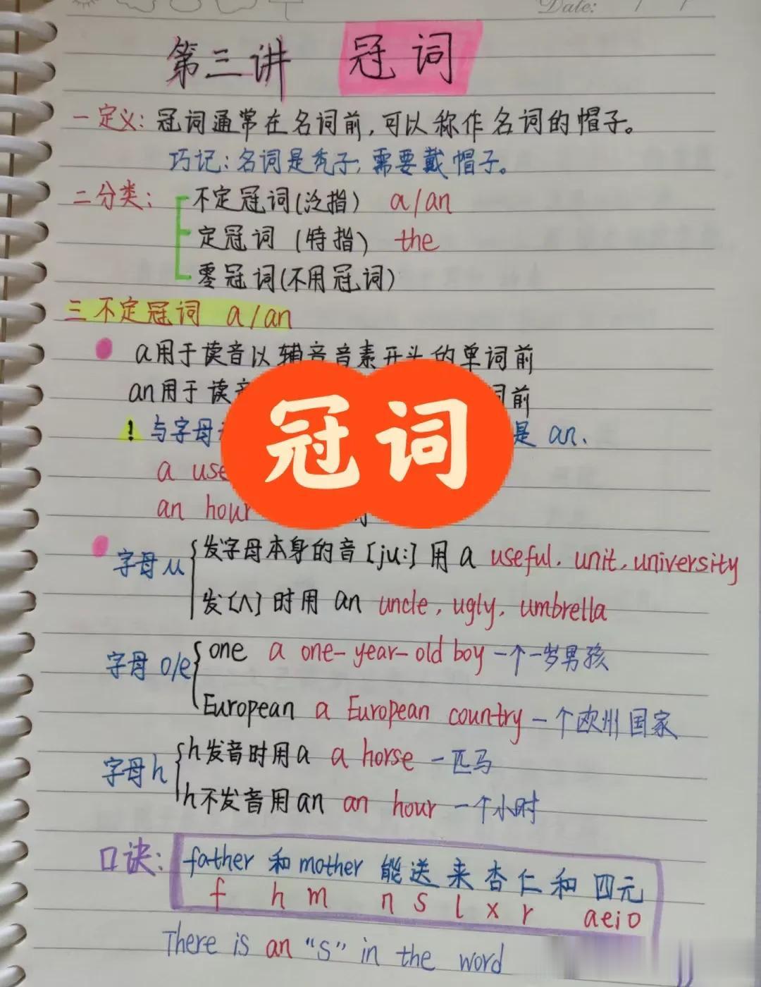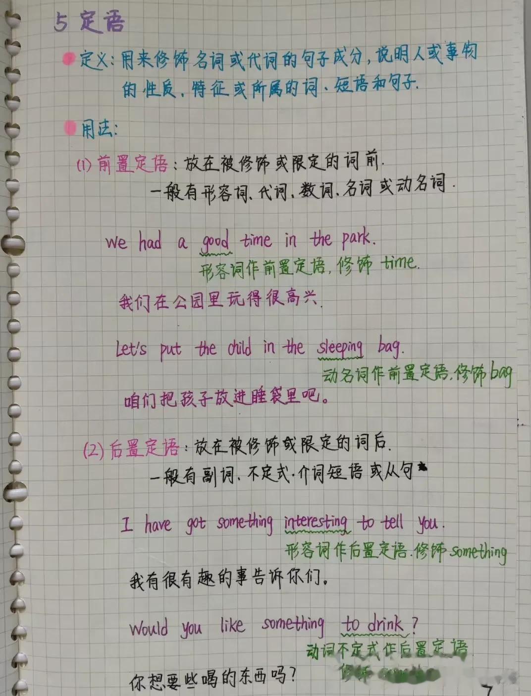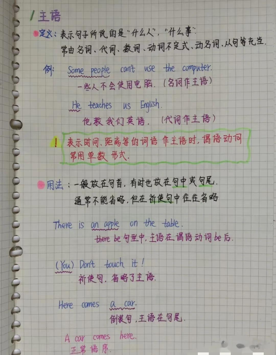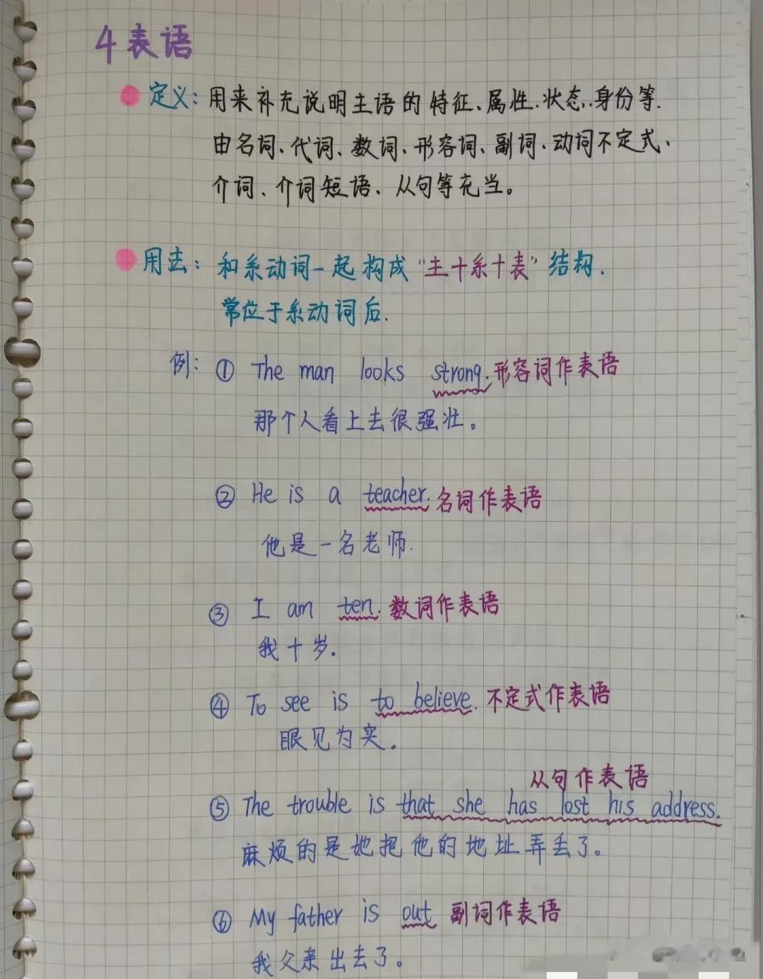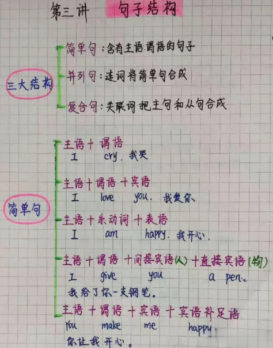 天呐!终于有人将英语中的句子成分、句子结构、什么是主语、谓语、定语、宾语、什么是名词、代词、冠词、介词、连词、数词等全都手写出来,还附带记忆口诀,没有比这更专业更贴心的整理,满满的干货,家有孩子的赶紧收藏保存下来!背完它,语法就牛了!18页纸狠狠逆袭! 英语语法从入门到精通