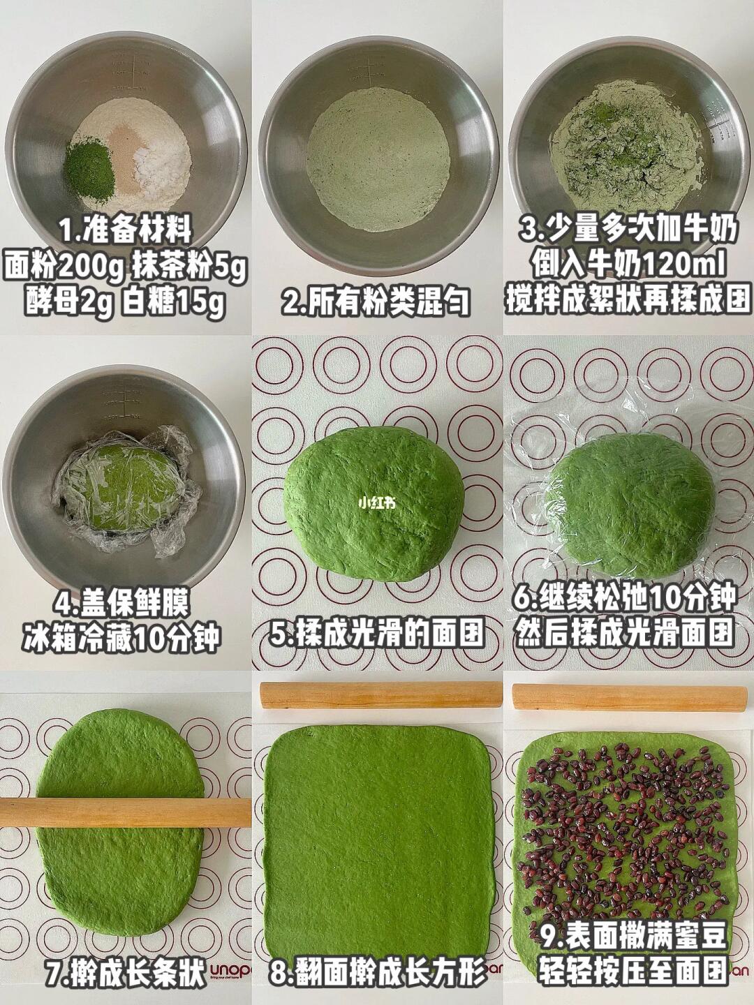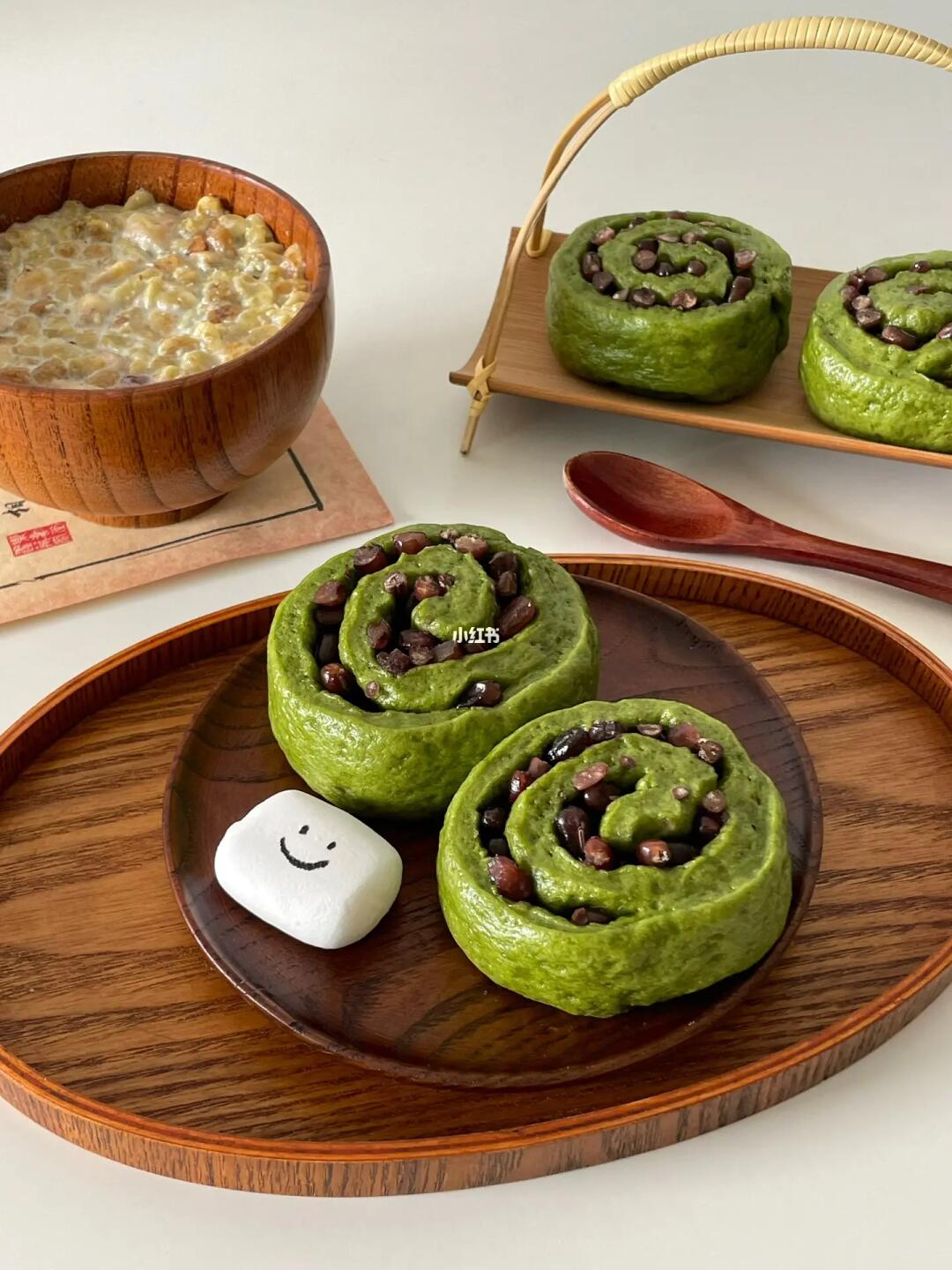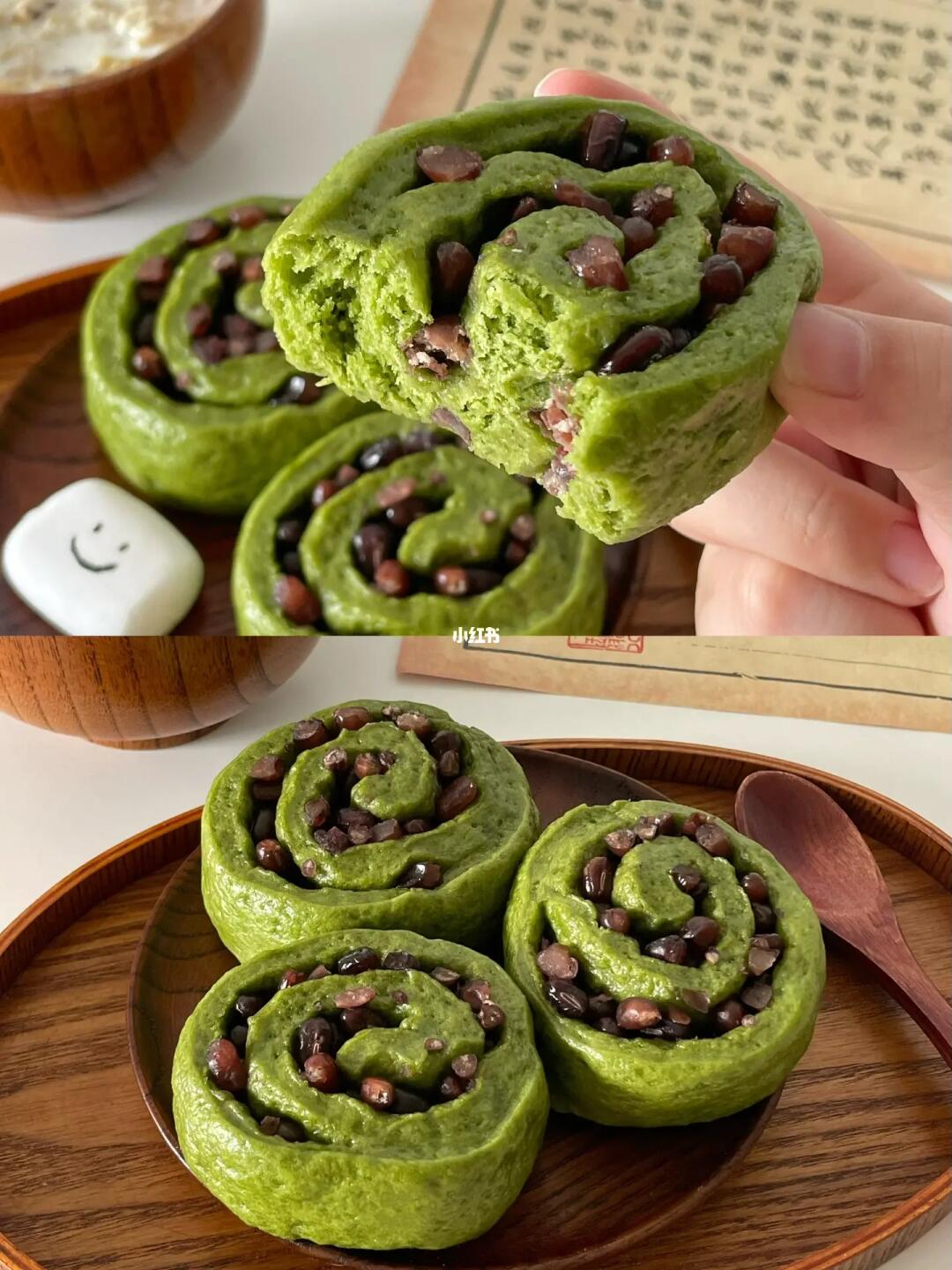 1️⃣抹茶蜜豆卷🫘&热牛奶糯麦片🥛