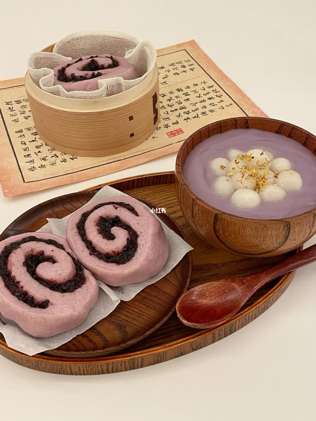 4️⃣紫米馒头卷&芋泥丸子羹🍥