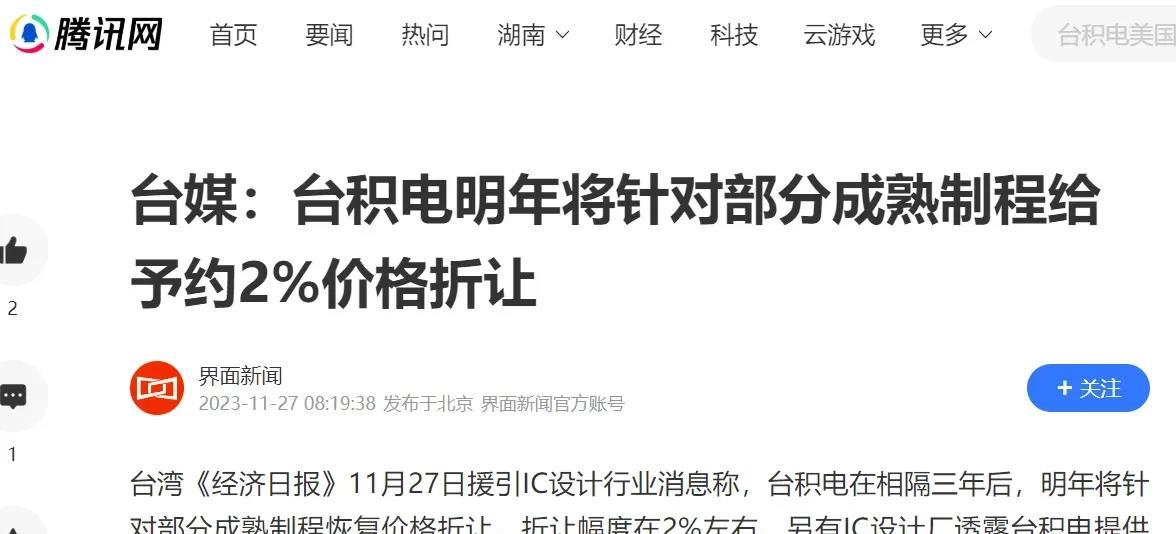 只可惜呀,当英伟达营收一瞬间秒杀了台积电,当苹果再难担当台积电首席客户,张忠谋装着装着就彻底露馅了:这不,原本营收更依靠先进制程的台积电,如今又得反过来依赖成熟制程了。 反过来依赖成熟制程也就算了,想不到台积电如今竟然还沦落到对部分成熟制程打折的地步了。