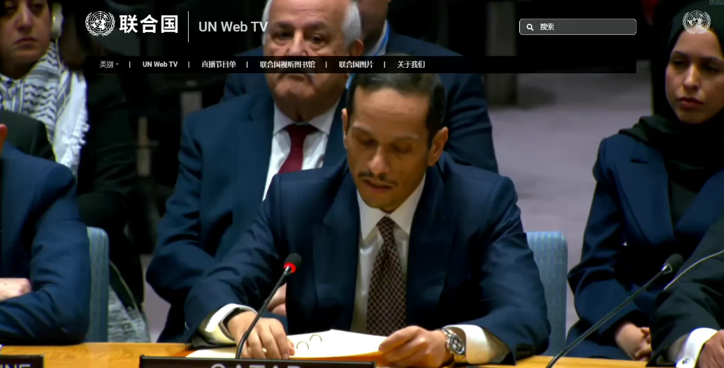 主持安理会会议的王主任风采依旧。而卡塔尔外交大臣(见图7)上来就先谢王主任。