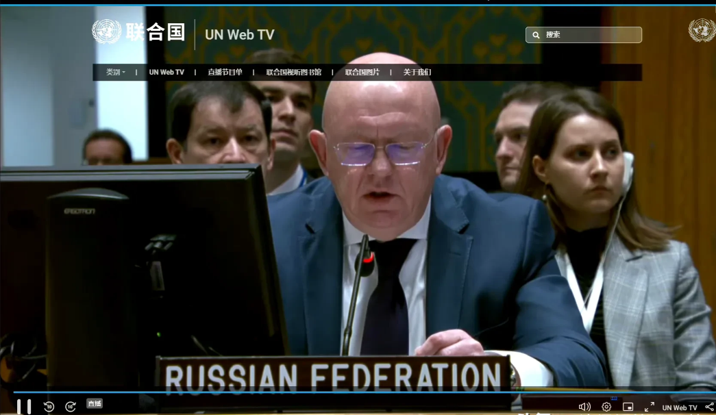 轮到俄罗斯常驻联合国代表瓦西里·涅边贾(见图5)上场时,他一上来就痛骂西方在乌克兰问题和巴勒斯坦问题的双标立场。