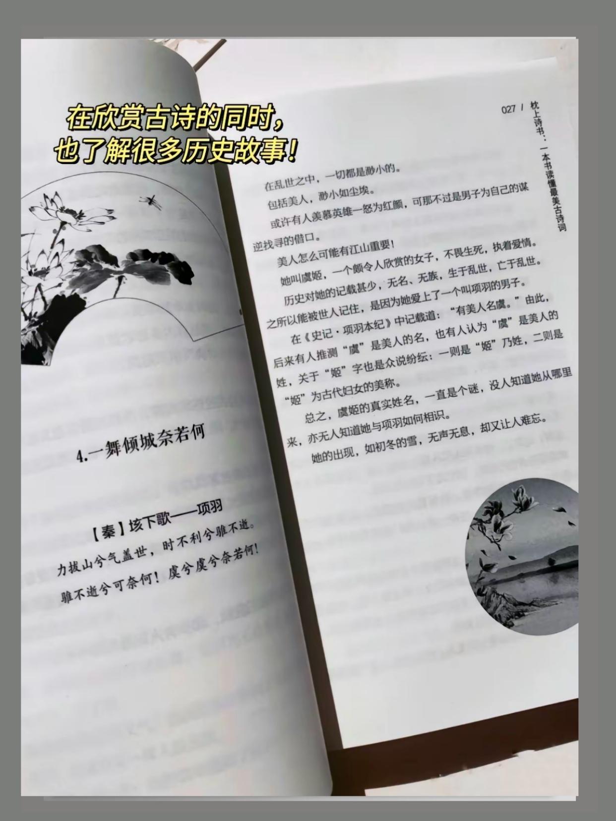 1.当你开心时可以说:“春风得意马蹄疾,一日看尽长安花。而不是只会说,哈哈,我太高兴了。 2当你难过时可以说:“问君能有几多愁,恰似一江春水向东流。而不是只会说,我太难受了…… 唐诗如歌,说不完的明月美酒 唐诗如画,绘不尽的岁月河山 就让这本枕上诗书带你去领略那盛唐风光,品味那时的风花雪月与豪情万丈!#好书推荐 #古诗词#枕上诗书#才女#好词好句