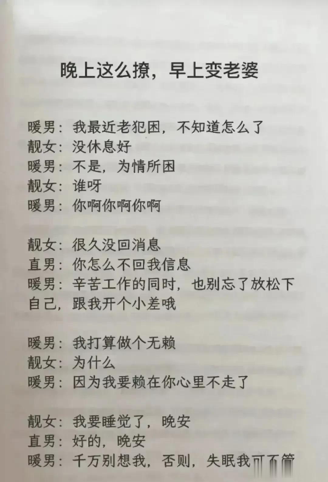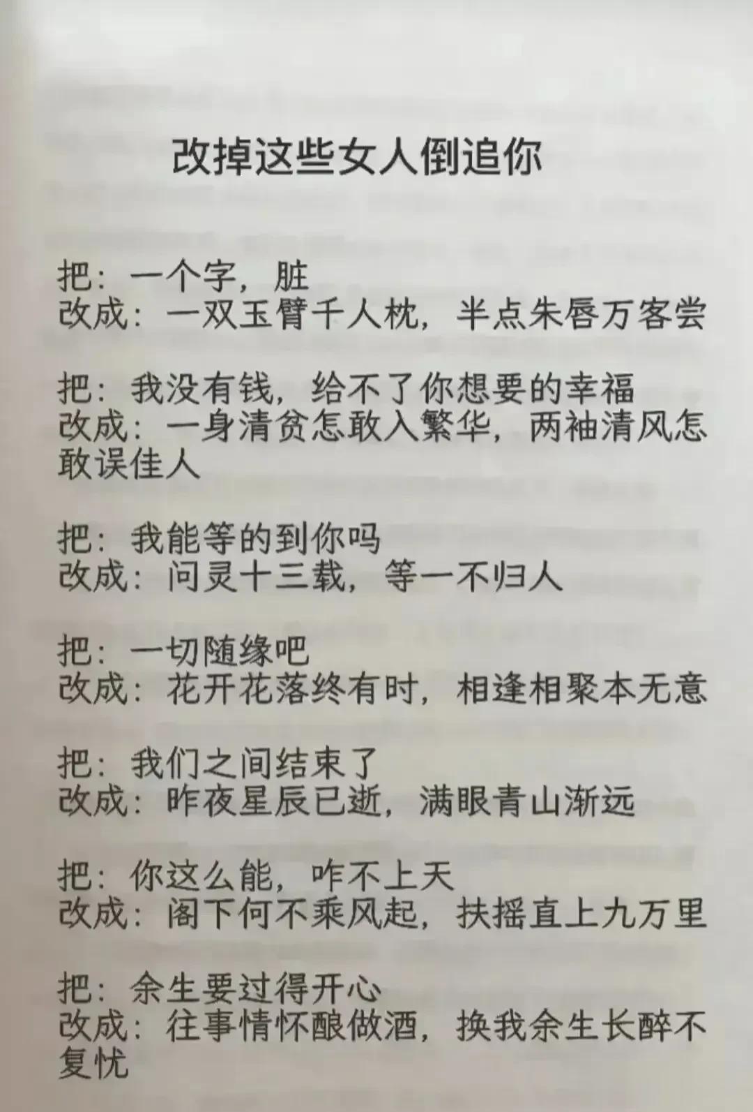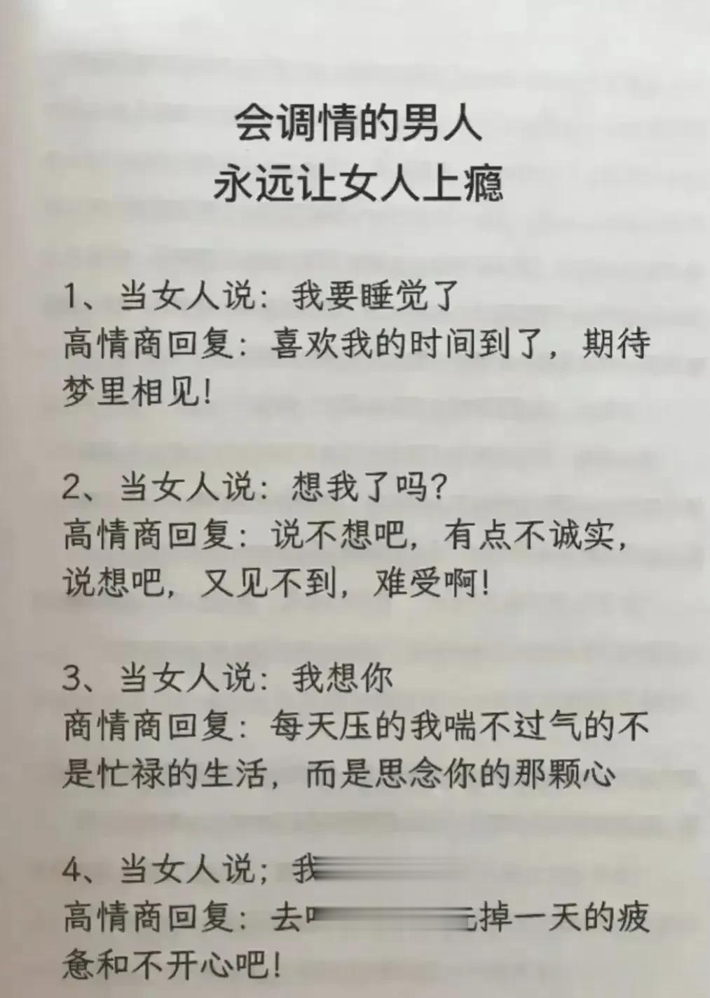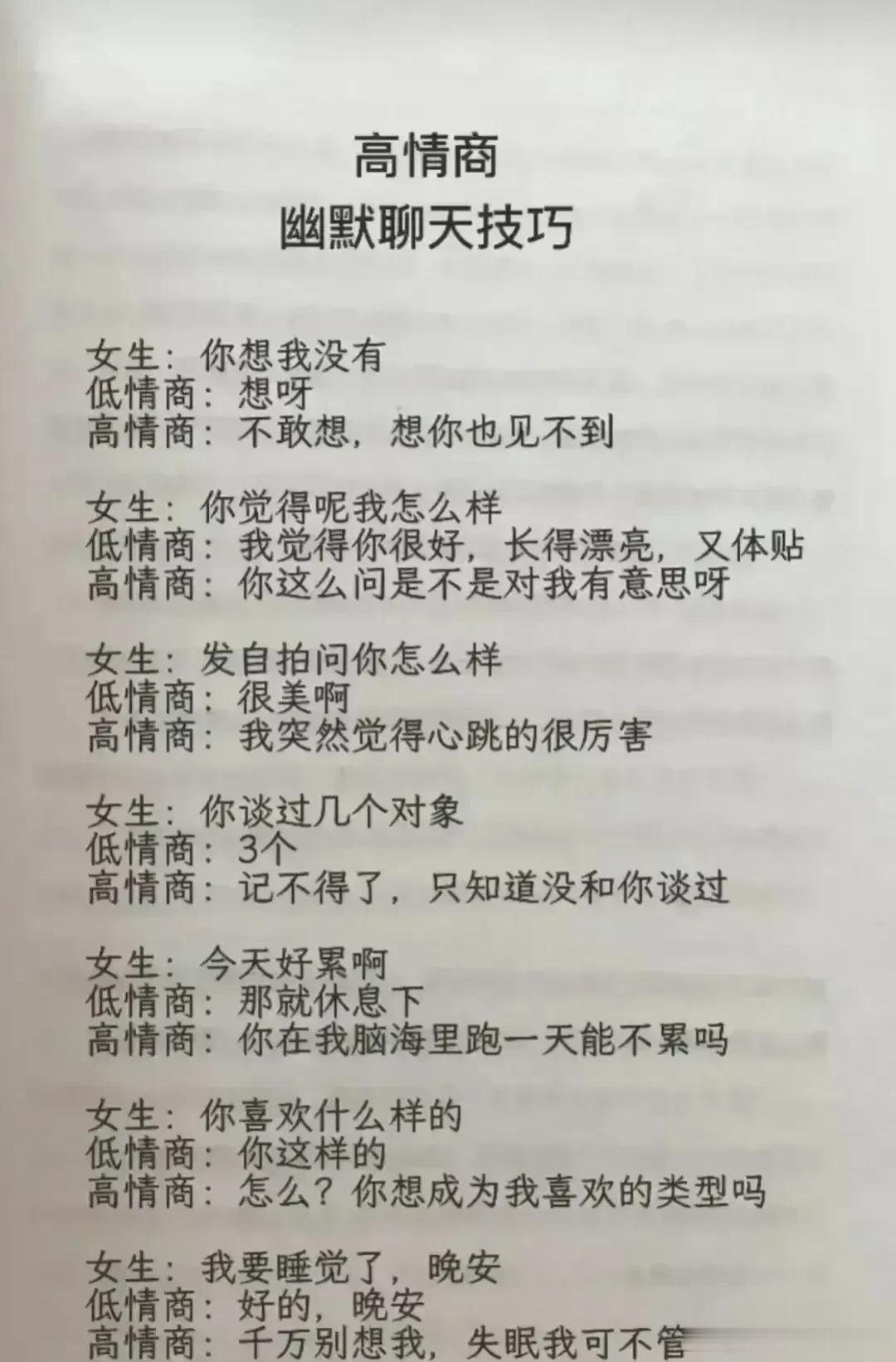 天呐!会调情的男人,永远让女人上瘾,想要提升自己的魅力,就要学会幽默聊天技巧!每天看一遍,让你的情商突飞猛进,一开口就让对方喜欢你,生活事事如意,职场步步高升!赶紧保存下来!提升自己的幽默口才和接话技巧,你将受益终身! 不管和谁打交道,幽默又会接话的人,能让人越聊越开心,轻松聊出感情聊出机遇,让你朋友越来越多,混得越来越好! 幽默口才好好接话