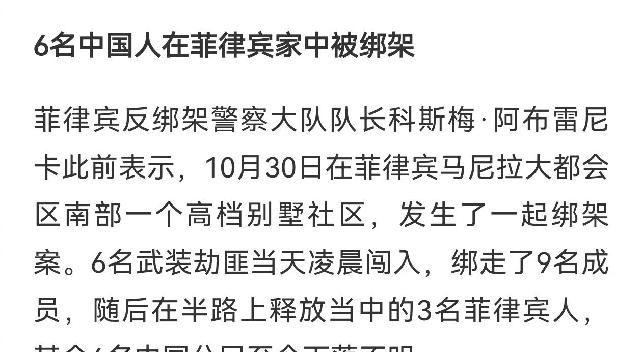六名中国人在菲律宾被绑走,其中四人已经死亡。这不是绑架案,这是菲律宾针对中国人的恐怖袭击,绝不能按照普通刑事案件处理。
