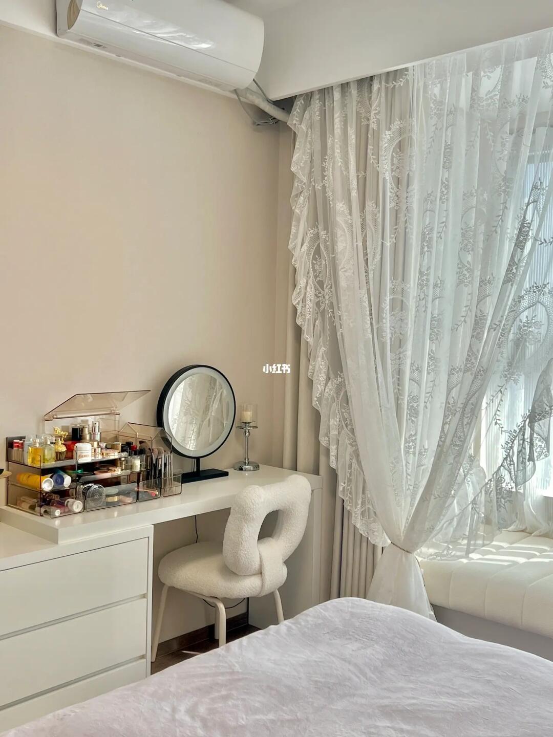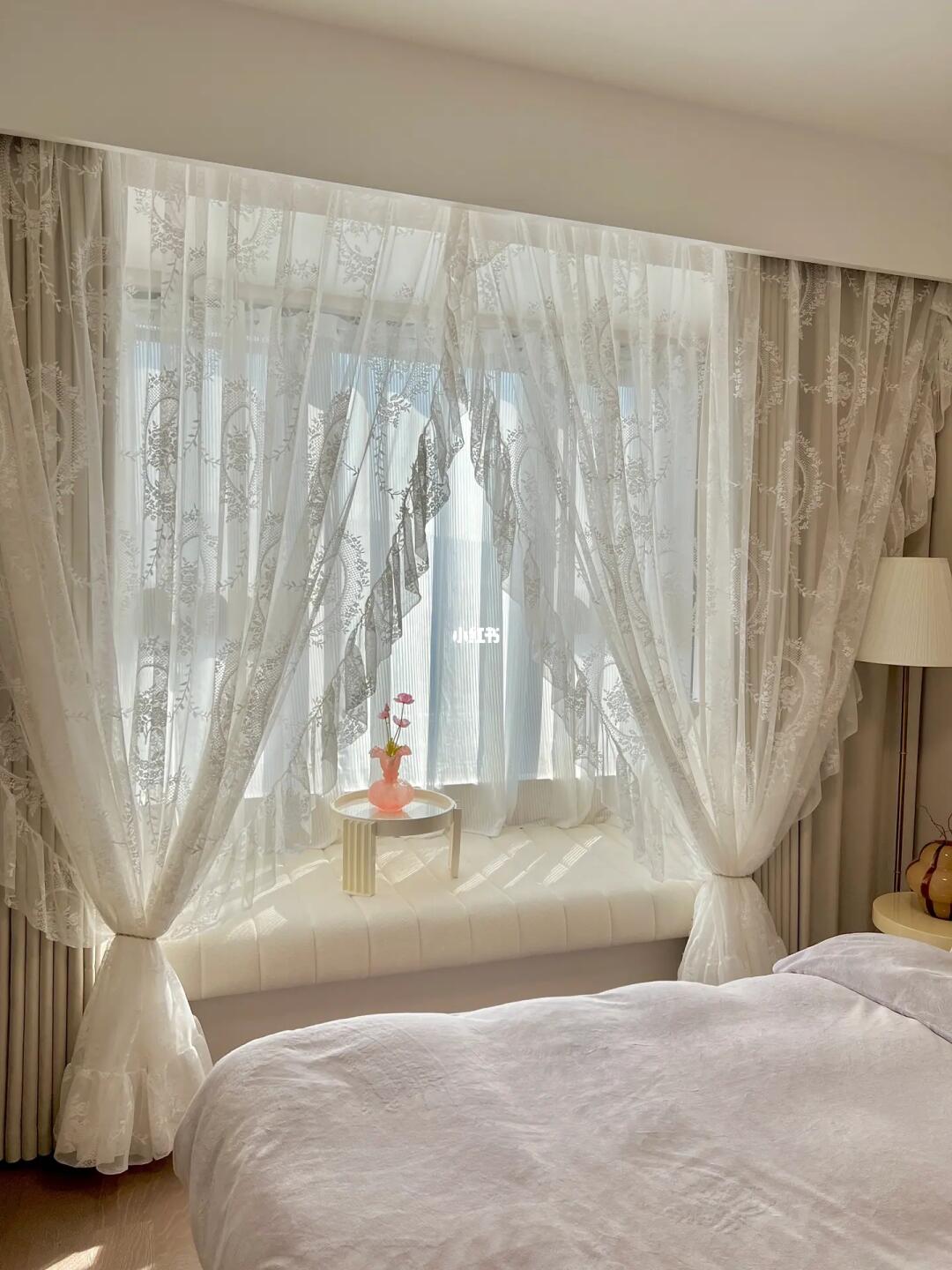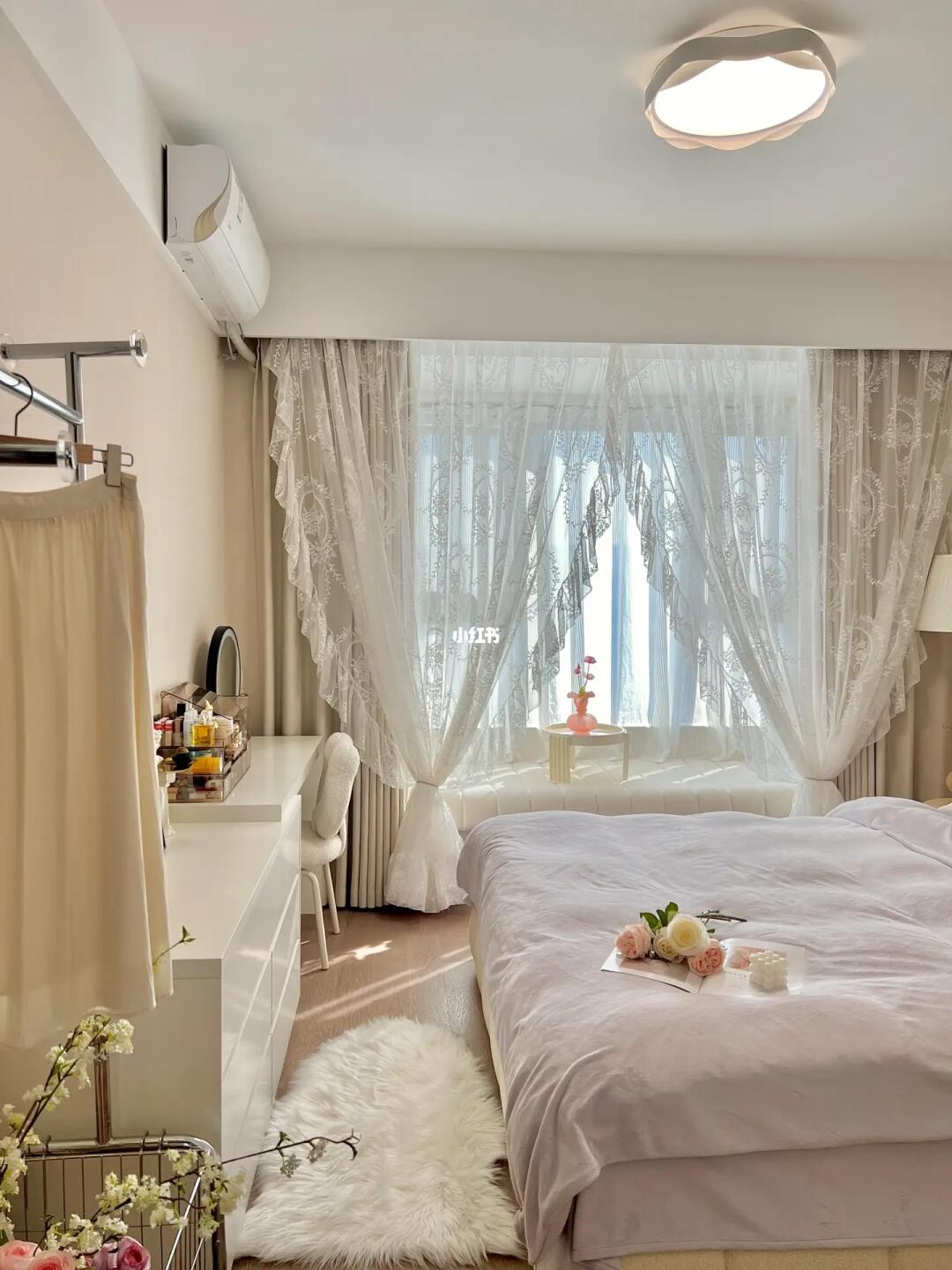 欢迎参观我的13平奶油卧室🌷 入冬之后更想宅家躺平啦~ 清晨阳光洒满飘窗垫☀️ 在温暖的被窝里睡到自然醒 就是冬日的小确幸🍾️ · 趁着天气正好☁️ 给软软的棉花糖床 换上柔软舒适的四件套 梳妆台上安排了配套的收纳盒 配上花边吸顶灯和蕾丝纱帘 奶呼呼的温柔又浪漫💕 · 其实,卧室不需要多复杂的装饰 阳光就是最好的风景🌅