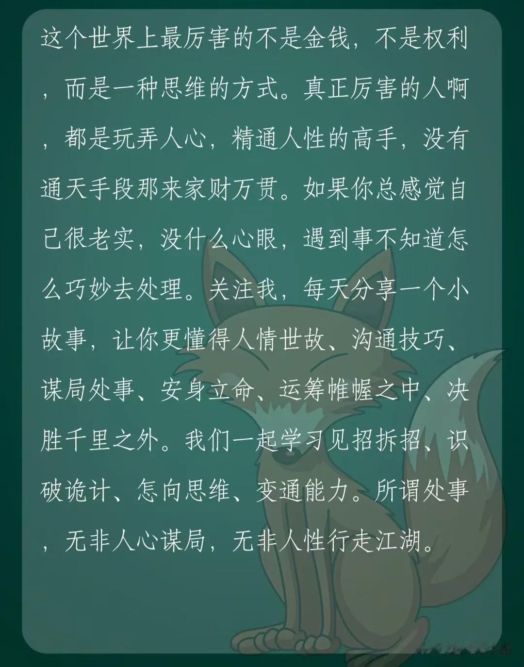 能当官的人,手段有多高明?看完之后,你会惊出一身冷汗,果然厉害的人,都是玩弄人心,精通人性的高手,干掉一个人或拿捏一个人,也是用最阴狠的手段!真所谓,没有通天手段,哪来家财万贯。 这个世界上最厉害的不是金钱,不是权利,而是一种思维的方式。如果你总感觉自己很老实,没什么心眼,遇到事不知道怎么巧妙去处理。推荐你看一看下面这套书,利用知识让你变得强大,那么成功就在向你招手了。 变通人情世故沟通谋略