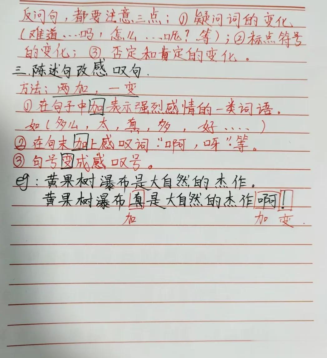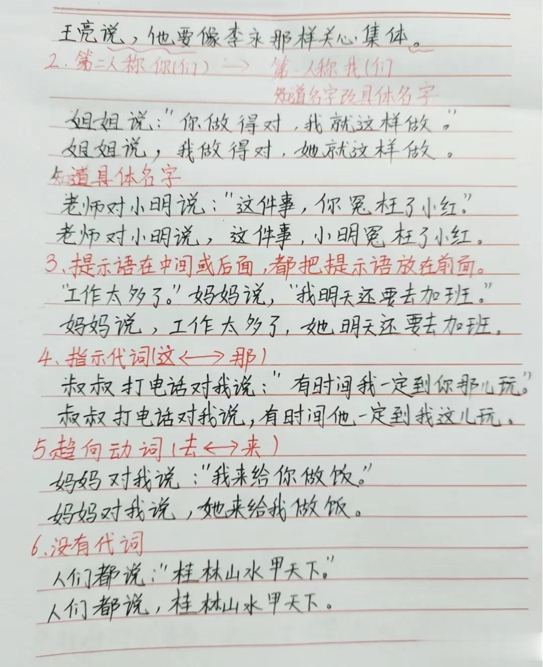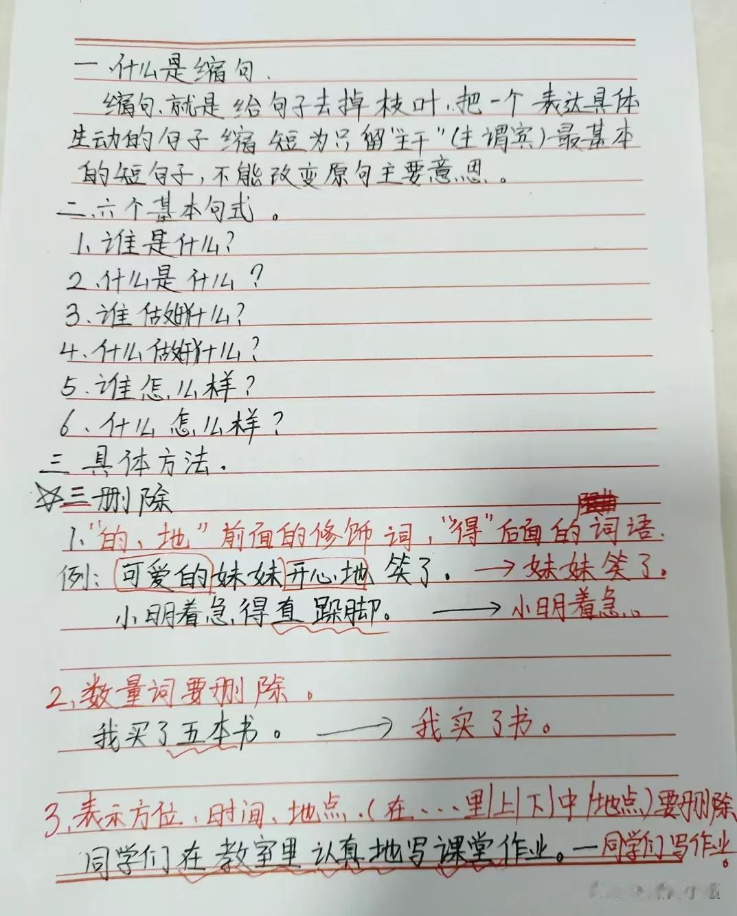 天呐!太卷了!竟然有孩子将小学句子专项训练全都手写出来了!涵盖肯定句,双重否定句互换、陈述句改反问句、感叹句、扩句、缩句、直接引用与转述句等等,有方法有口诀有总结有例题有练习,全在这18张纸上,看完轻松掌握各类句式转换技巧!家有孩子的赶紧收藏!没事练一练,打牢语文基础! 语文句式强化训练