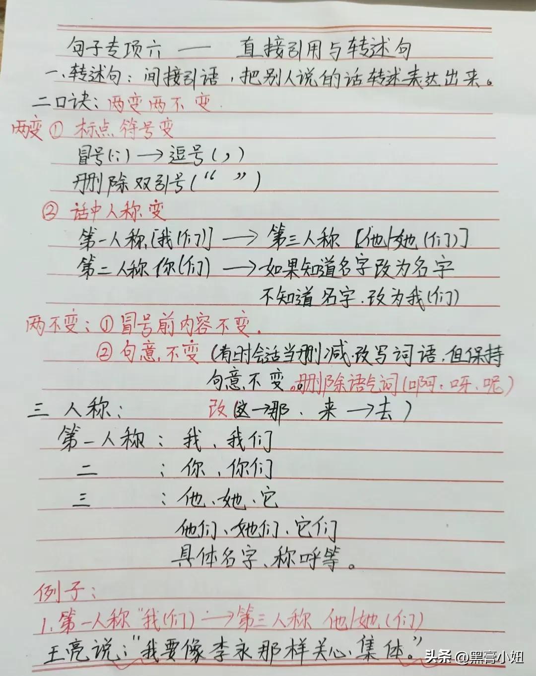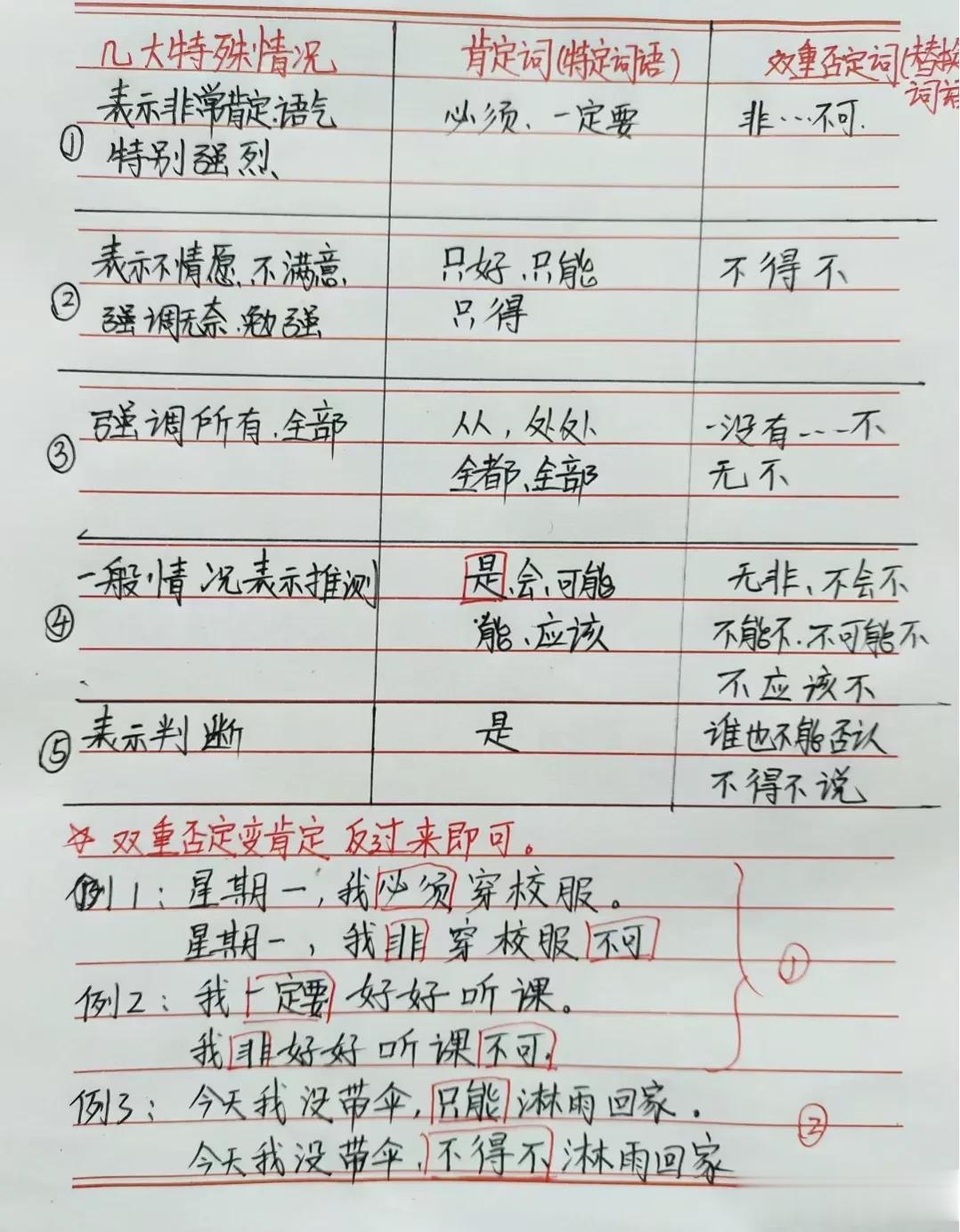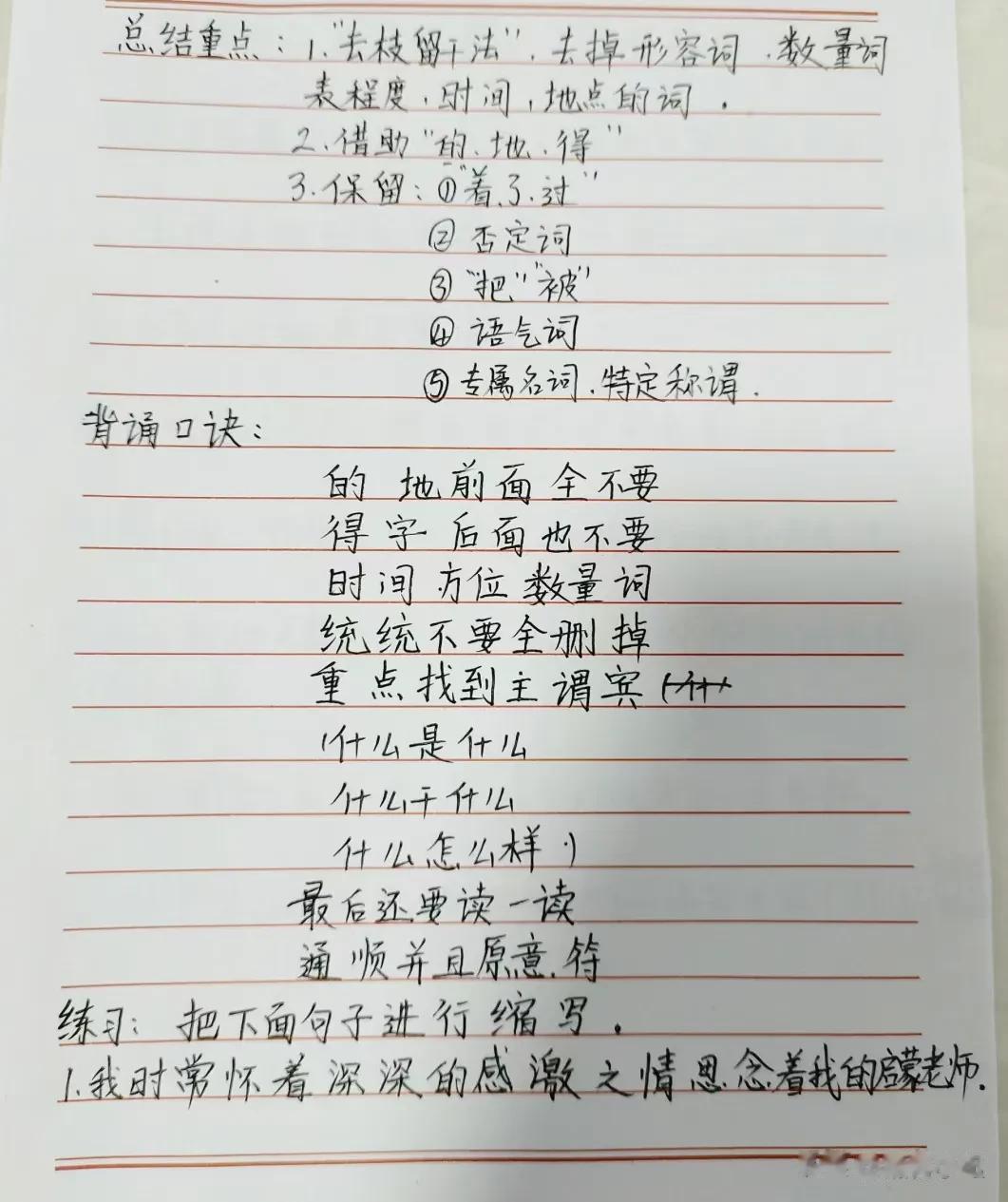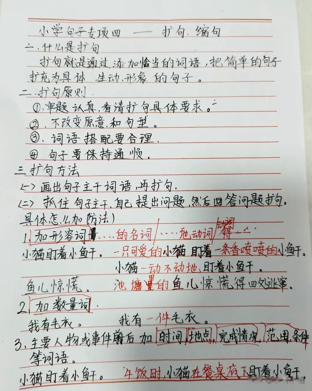 天呐!太卷了!竟然有孩子将小学句子专项训练全都手写出来了!涵盖肯定句,双重否定句互换、陈述句改反问句、感叹句、扩句、缩句、直接引用与转述句等等,有方法有口诀有总结有例题有练习,全在这18张纸上,看完轻松掌握各类句式转换技巧!家有孩子的赶紧收藏!没事练一练,打牢语文基础! 语文句式强化训练