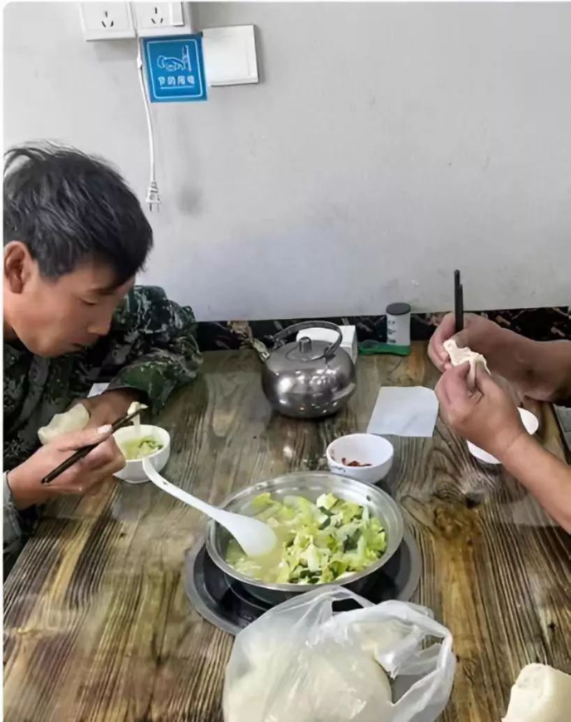 工地上很正常 前几天 工地上的泥瓦工 十几个人 围着一盆豆腐白菜吃