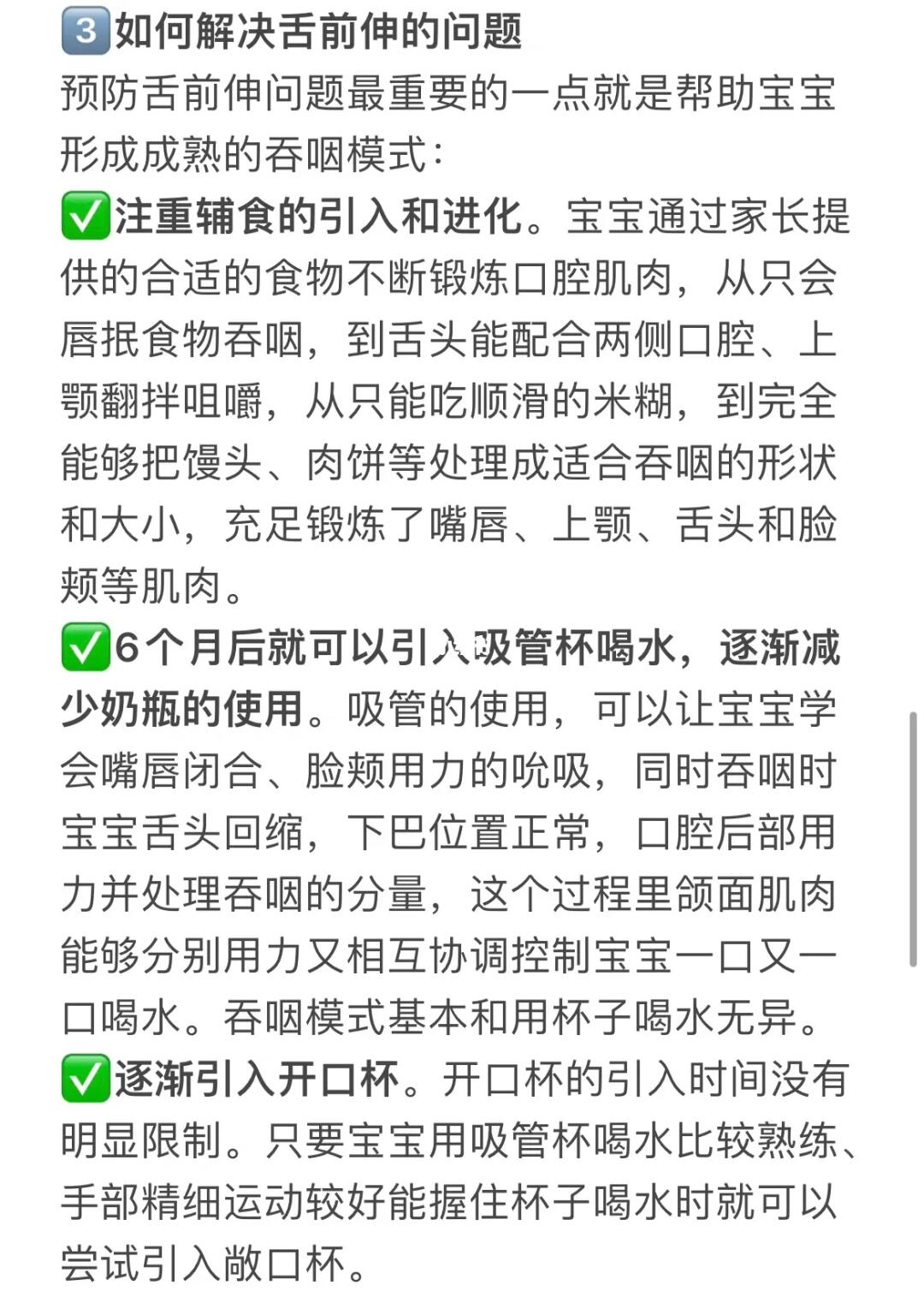 所以,非常建议无论是奶瓶喂养还是亲喂的妈妈们,都要好好吃辅食,并且最晚在18个月前引入吸管杯,帮助宝宝形成成熟吞咽模式,对口腔颌面健康发育非常有帮助。
