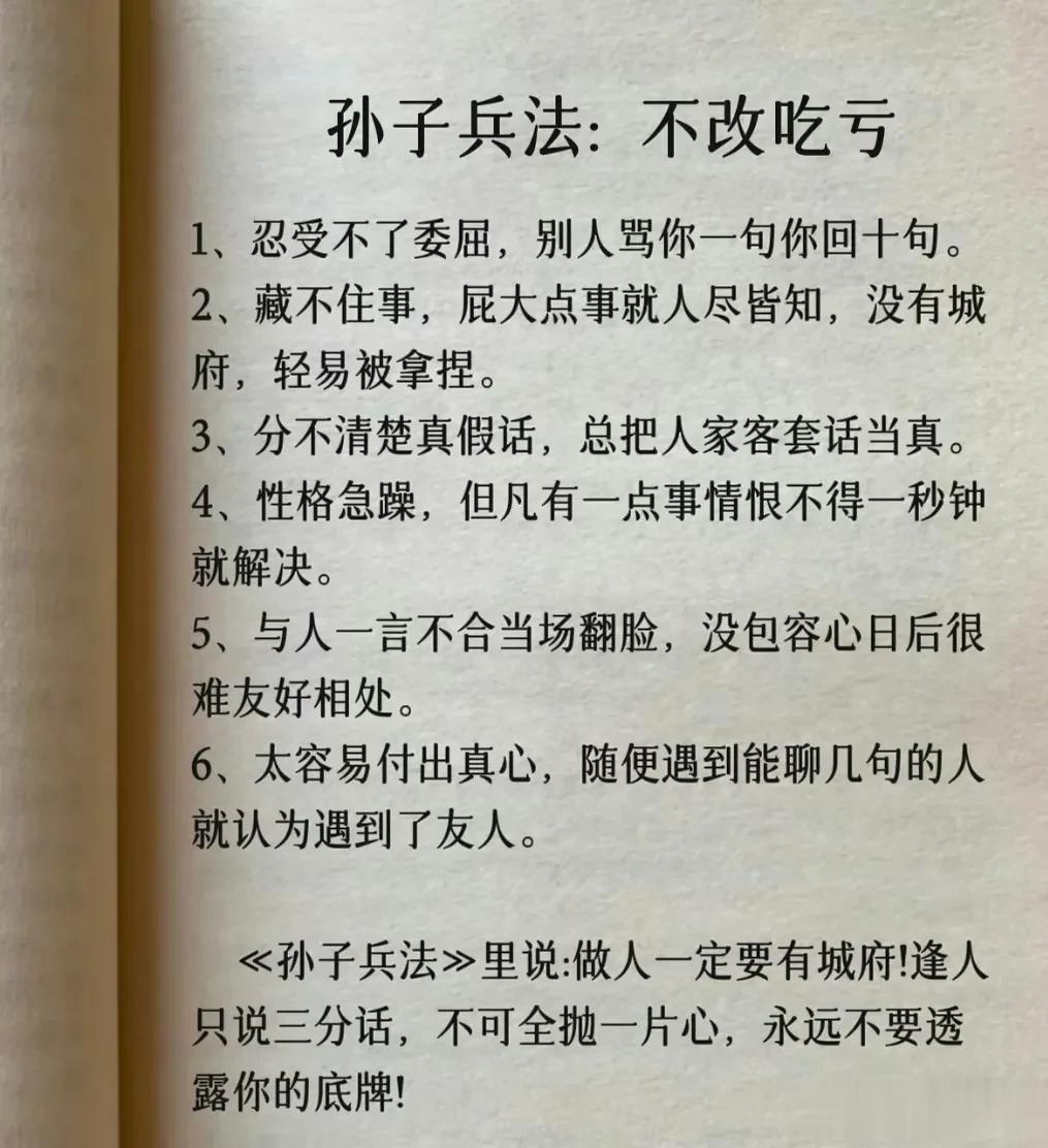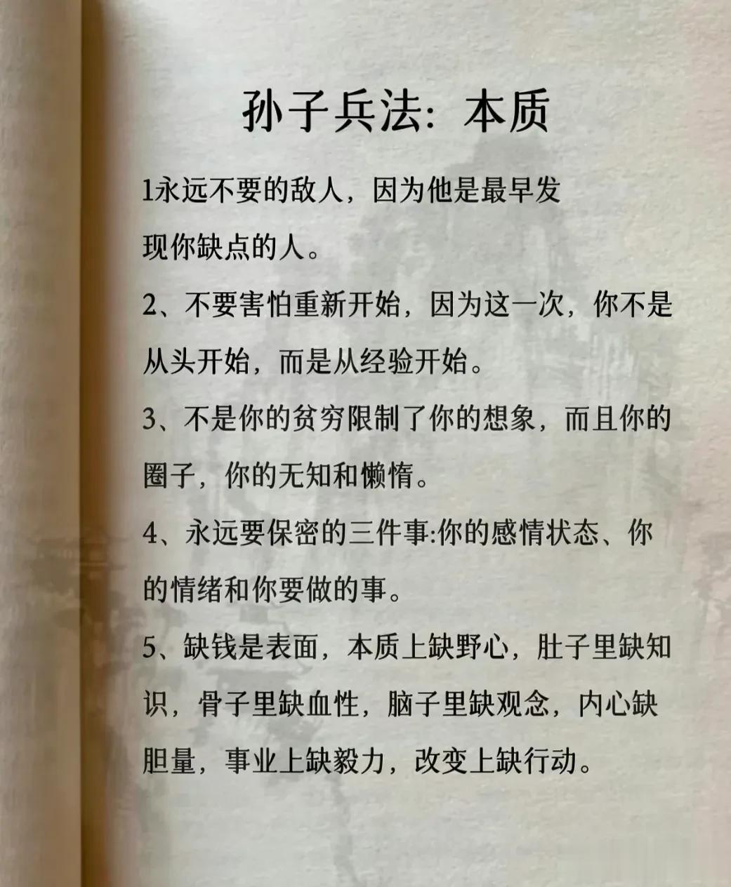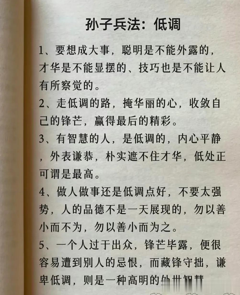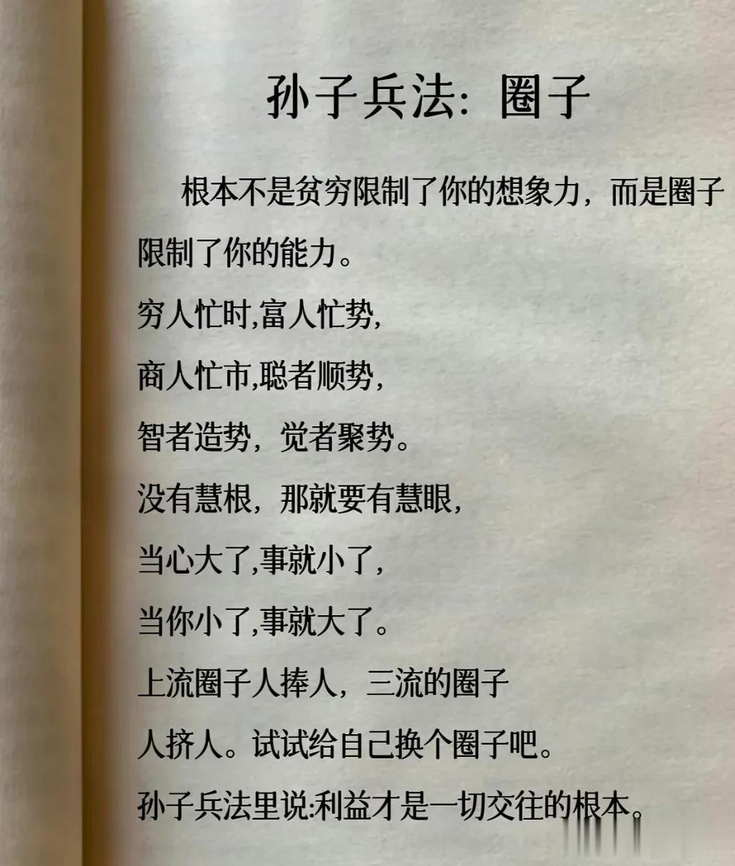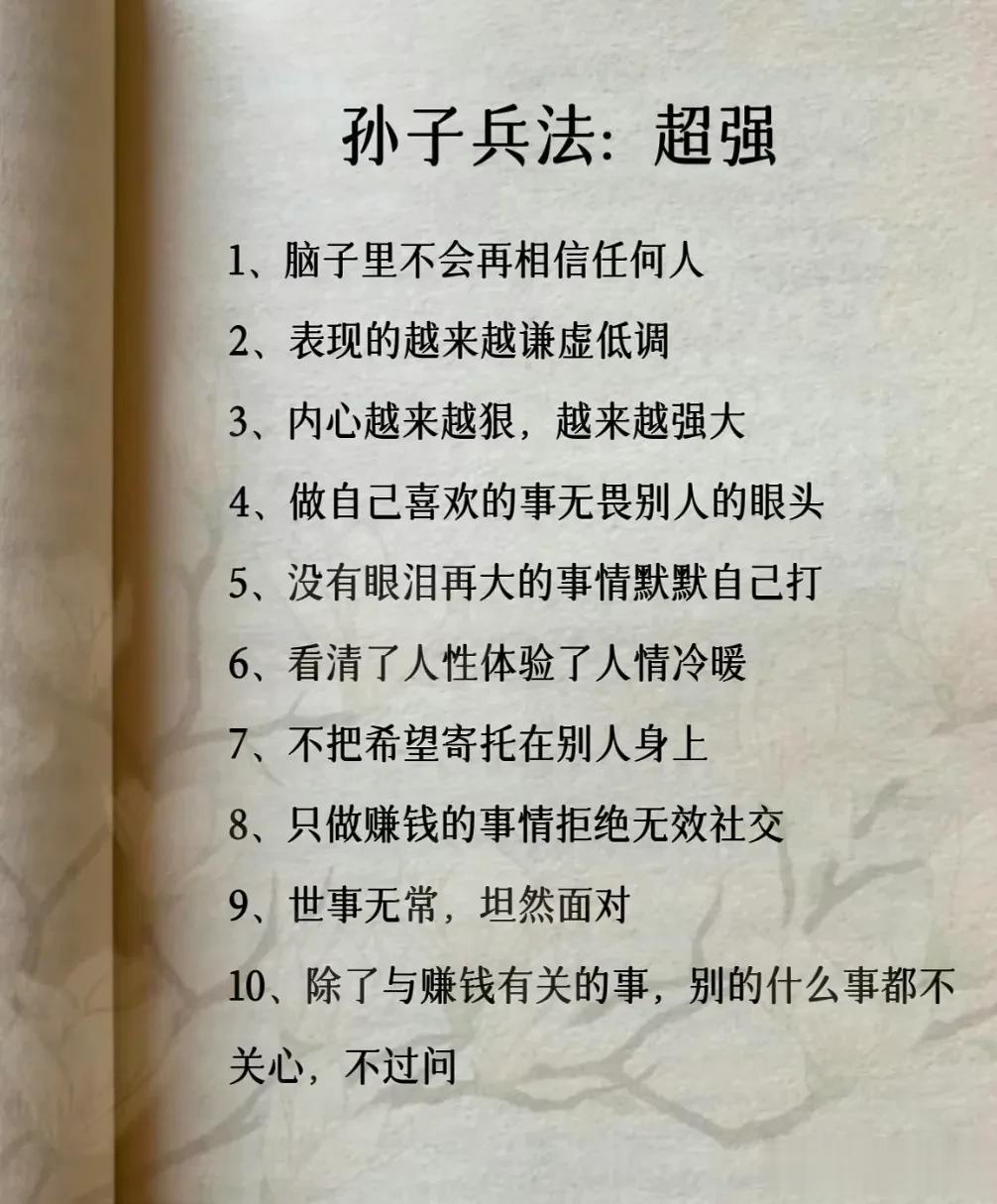 我滴天呐!第一次见到这么完整的孙子兵法解读,涵盖计谋、办事、借力、圈子、诱惑、处世、智慧、反杀术、格局、改善等方面,这次终于涨见识了,不愧是一部旷世奇书的精髓,值得反复读,能提升你的人生格局和思考能力,不管对于你的生活还是事业上都有很大的帮助,受益一生。 比如第一篇计谋: 你想跟人借2000你先张嘴问别人借20000他拒绝,你再改口说,那就借我2000,这叫"以退为进”。 工资1万,对亲戚说4000,对同事说,跟你差不多,这叫“瞒天过海”。 别人想要你的东西,你要是不愿意给,别眼巴巴的不敢拒绝,问他一句,你拿什么跟我交换,这叫“以守为攻”。 …… 为人处世中,一个不懂谋略智慧的人很容易吃亏,多翻一翻下方链接这本高启强翻烂的《孙子兵法》,能增长你的谋略智慧,提升处世能力,藏着普通人改变命运的底层逻辑。 孙子兵法国学经典精粹
