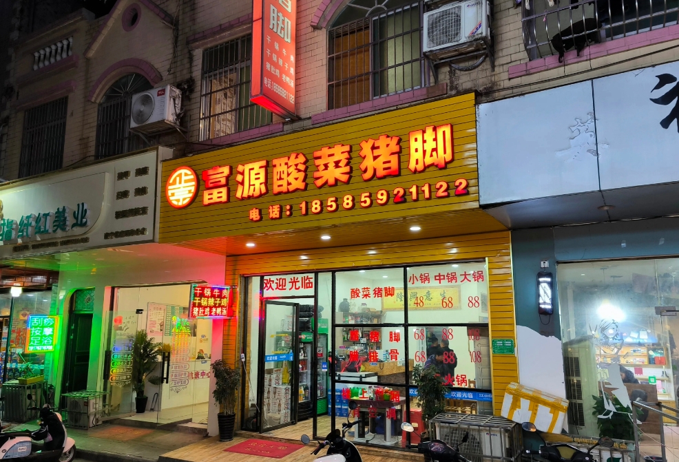 今天是开启蜜月纪念月的第一天,虽然这里只途中的一个落脚点——广西百色的西林县,但第一餐(午餐因为要赶路只吃了方便面),必须要隆重一点,特色一点,仪式感一点。那就当地的特色菜——酸菜猪脚,反正我没吃过的就是特色,而火锅就是隆重和仪式感,说实在的,可能有饥饿的加持,这一顿酸菜猪脚和自带的木瓜酒,那美味,美出了天际!