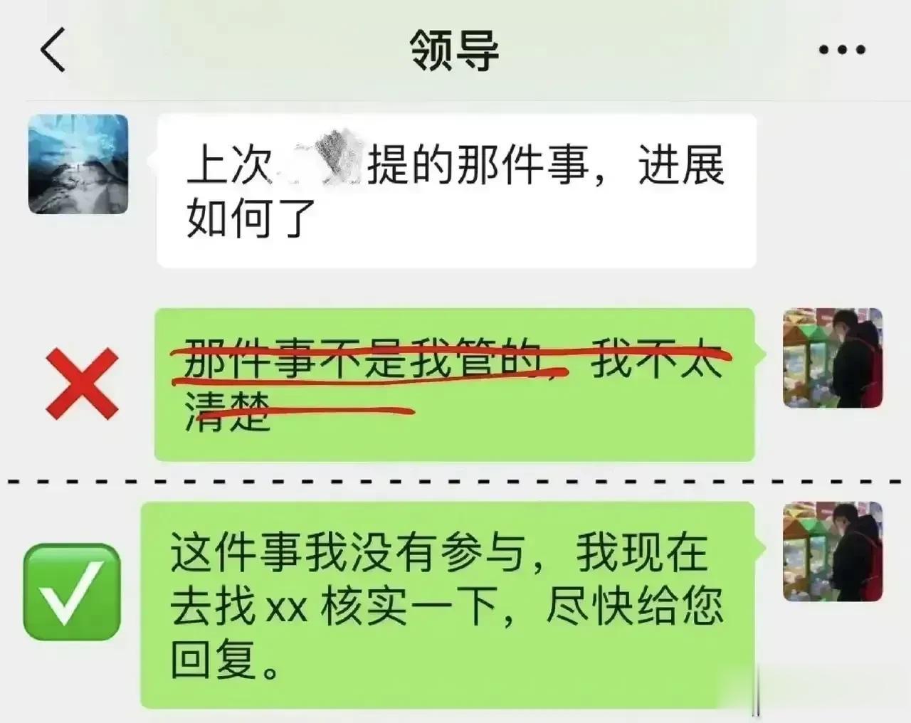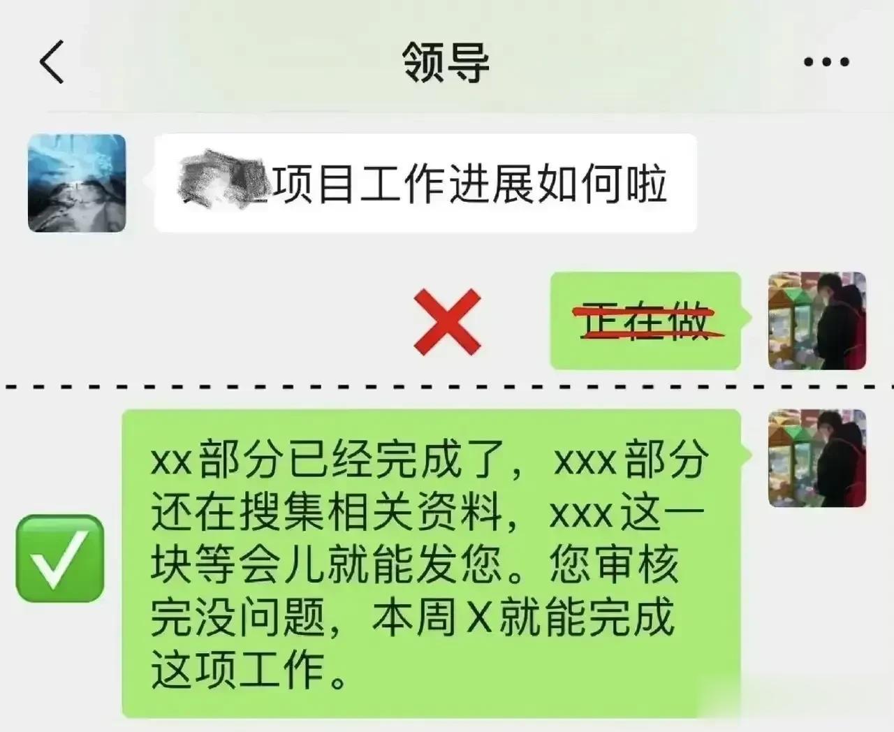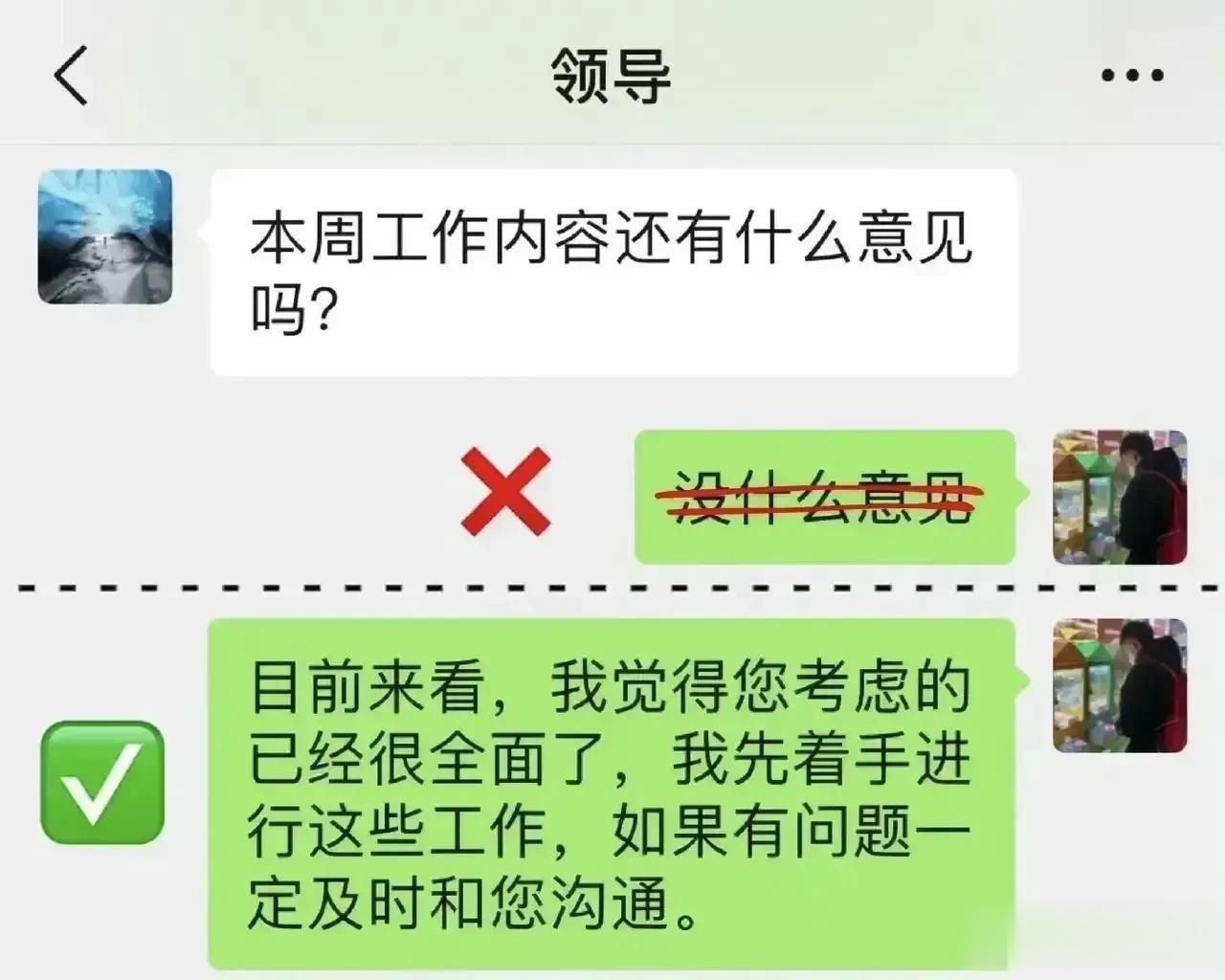 在工作上,千万别简单地回复领导“好的”“收到”的话术,那些混得好的职场高手都有回复领导的万能公式,总能深入老板的喜爱。比如对于安排性质的消息回复公式:确认收到+行动+完成时间。对于通知性质的消息回话公式:确认收到+具体行动。对于跟进性质的信息回话公式:完成结果+截止日期+询问是否有变动等等,会回话就是厉害,想升职加薪的,赶紧背下来! 总而言之,在回话时,借助公式来组织和表达我的思想。这些公式使得回答更加结构化、有条理,并且能够有效地传达我的观点和建议。 回话是一门技术,这对于想要晋升和加薪的人来说是非常重要的。只有把话说到领导心里,才能够得到他们的重视。更多技巧下方链接走起! 中国沟通智慧回话技术