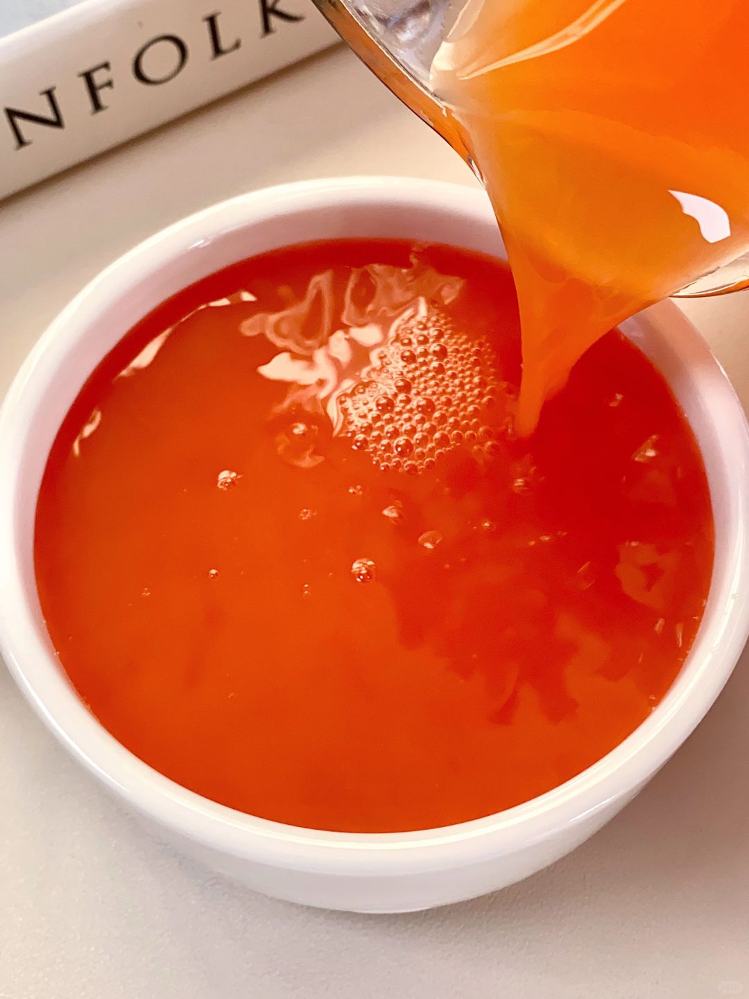 经常熬夜、小脸腊🟡的姐妹一定要喝起来! 平时火锅重口味吃的比较多!还不爱运动!可以适当喝一点温热的果蔬汁哦!!清爽又解腻,营养也补充了~这杯富含VC和番茄红素,对👀和🧏🏻♀️皮肤不要泰友好! 📝食材:苹果半个、番茄、胡萝卜半根、柠檬1片 ✔️做法:番茄热水泡5分钟左右,食材清洗干净放入破壁机,加700毫升水果汁模式打2.5min 做法简单5分钟就搞定啦!是酸甜的口感! 还蛮好喝的!酸酸甜甜的!🧏🏻♀️真的不要太掉色了!