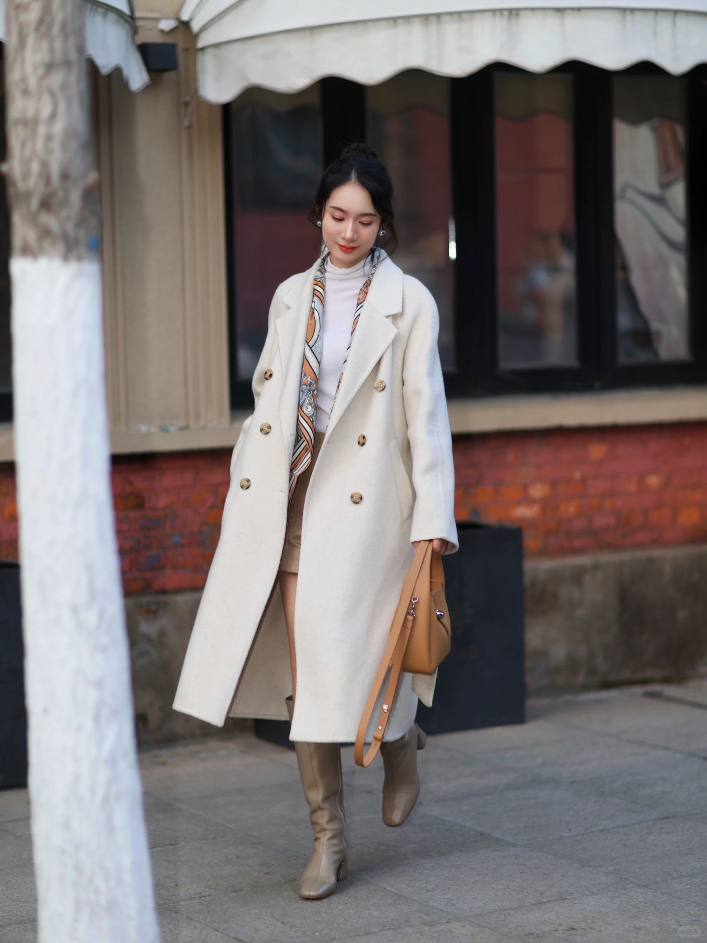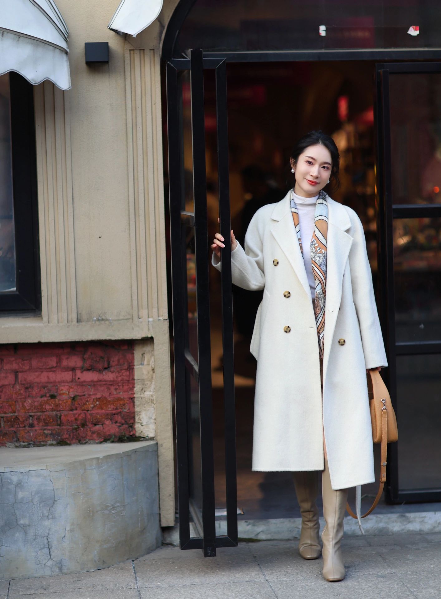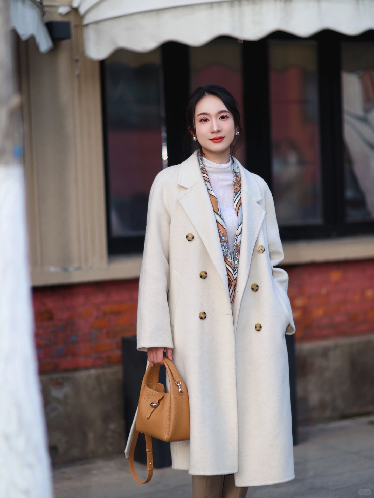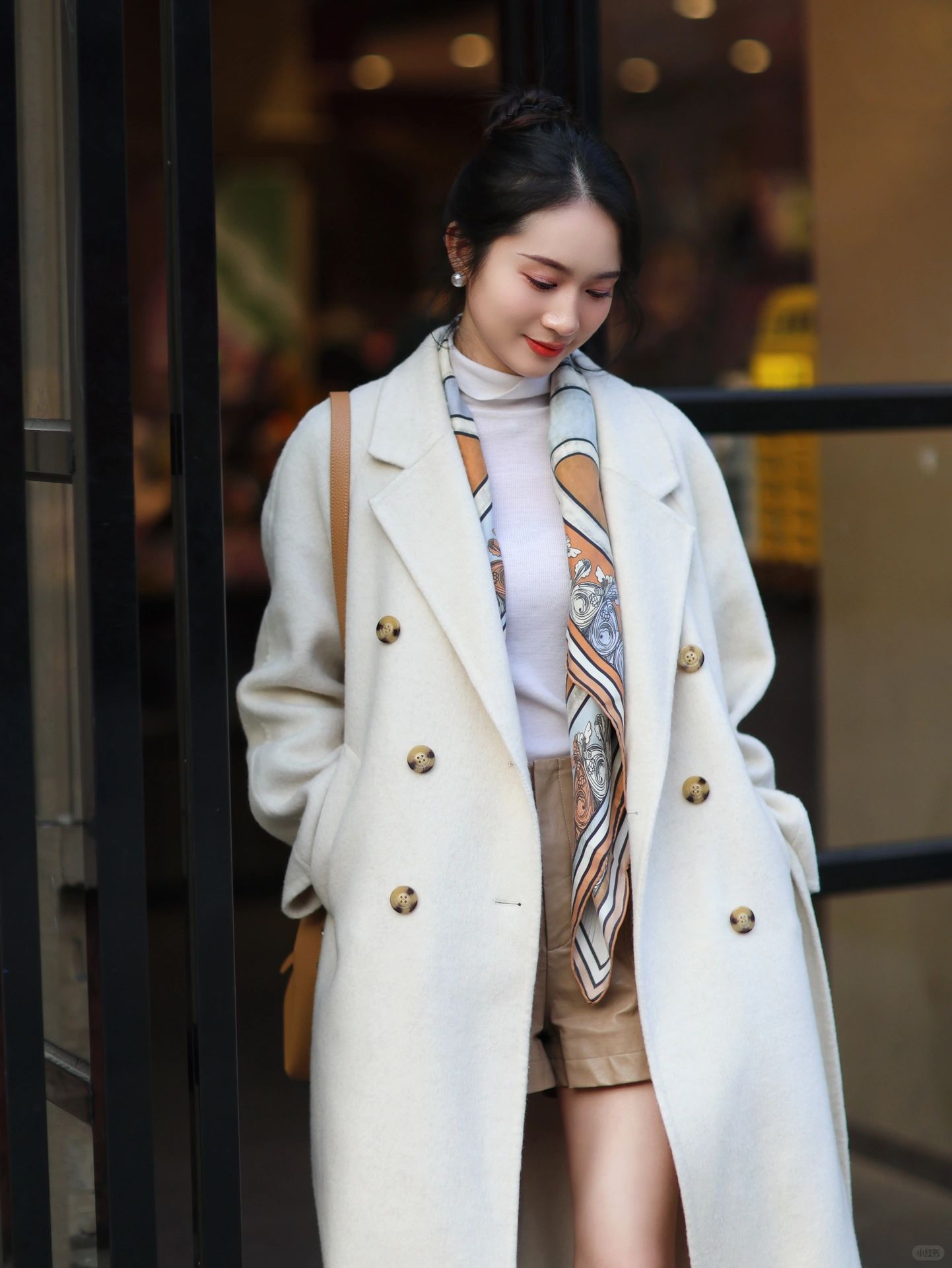 秋冬穿搭 大衣穿搭 白色大衣 丝巾搭配