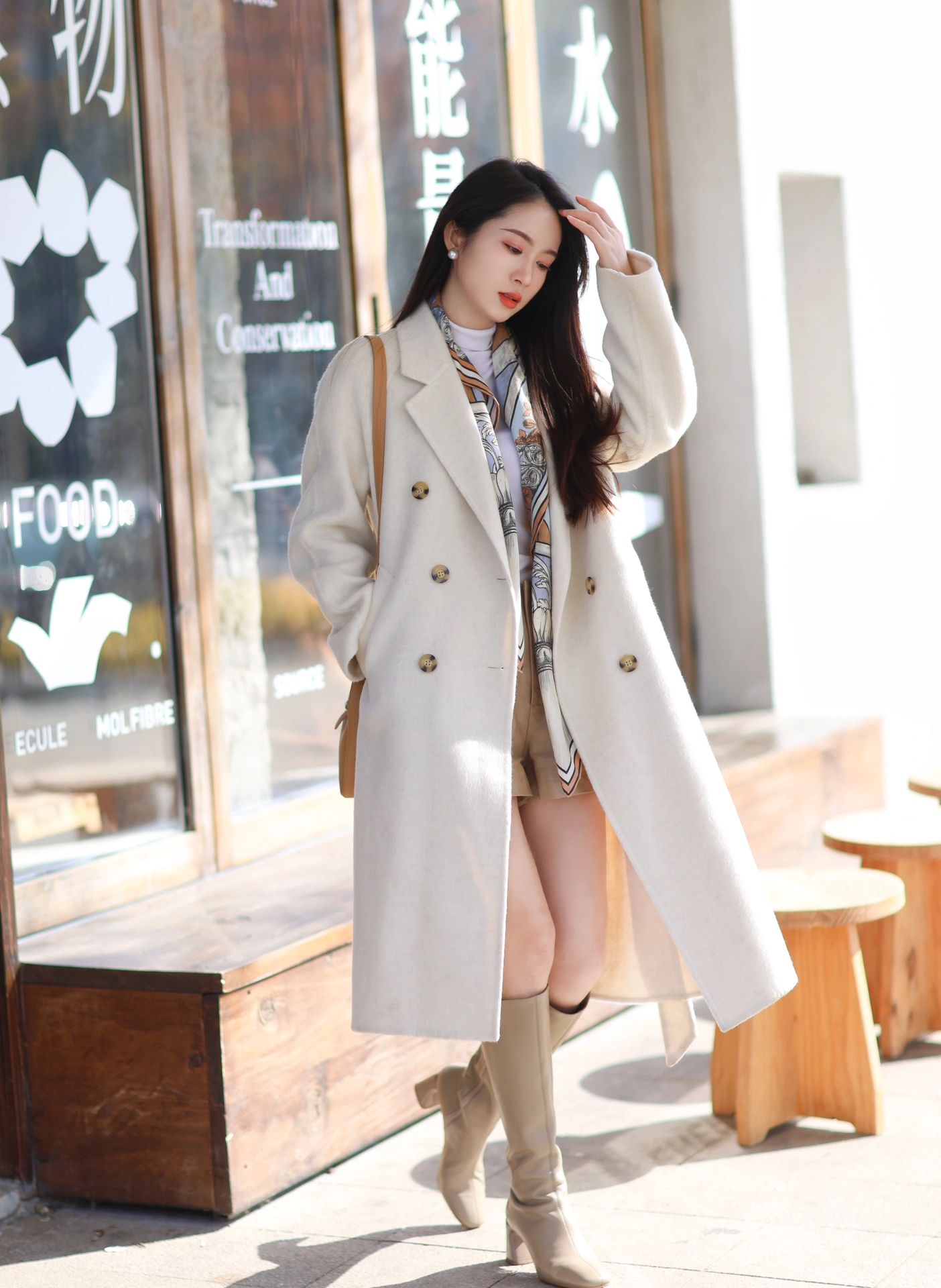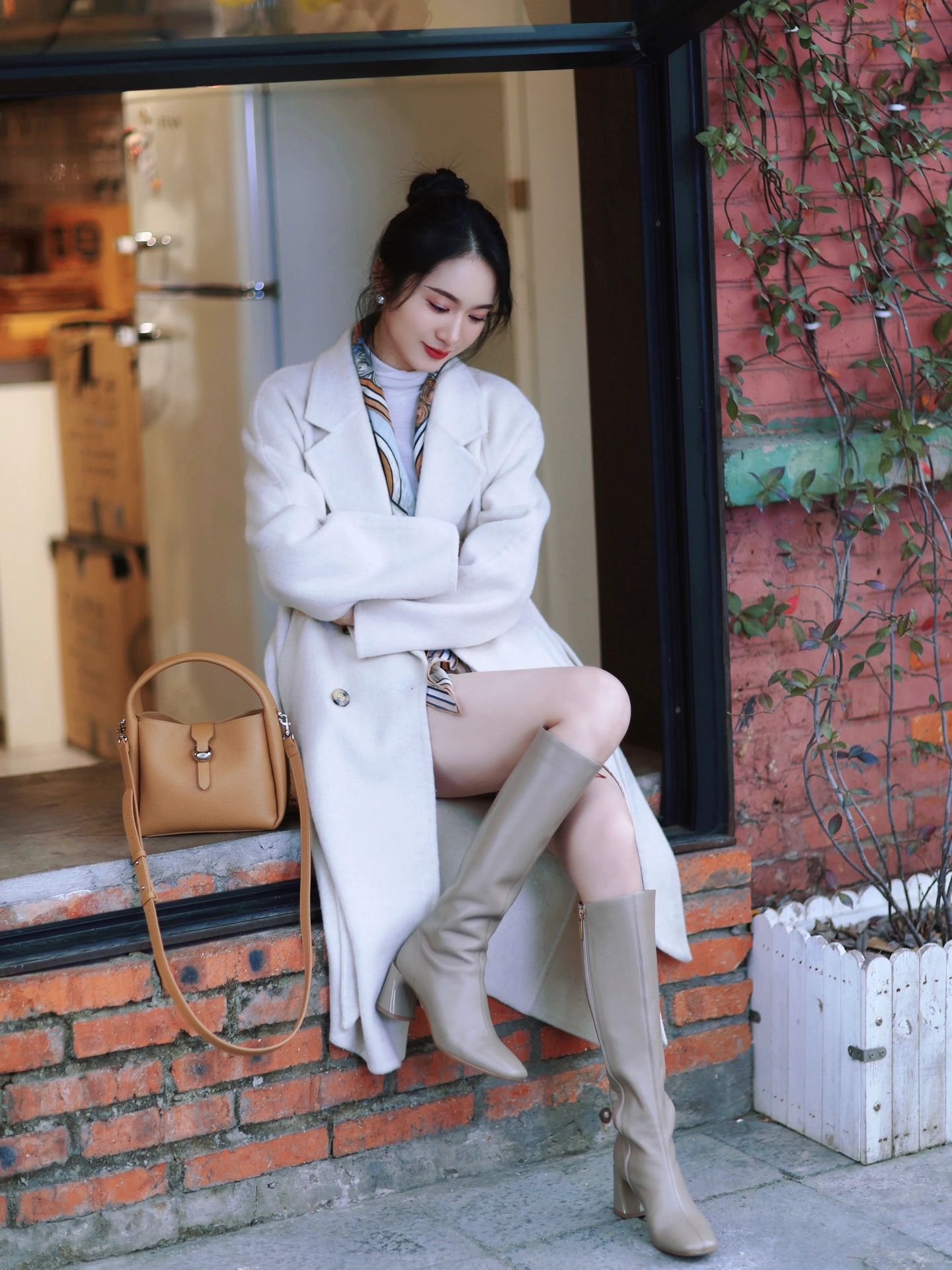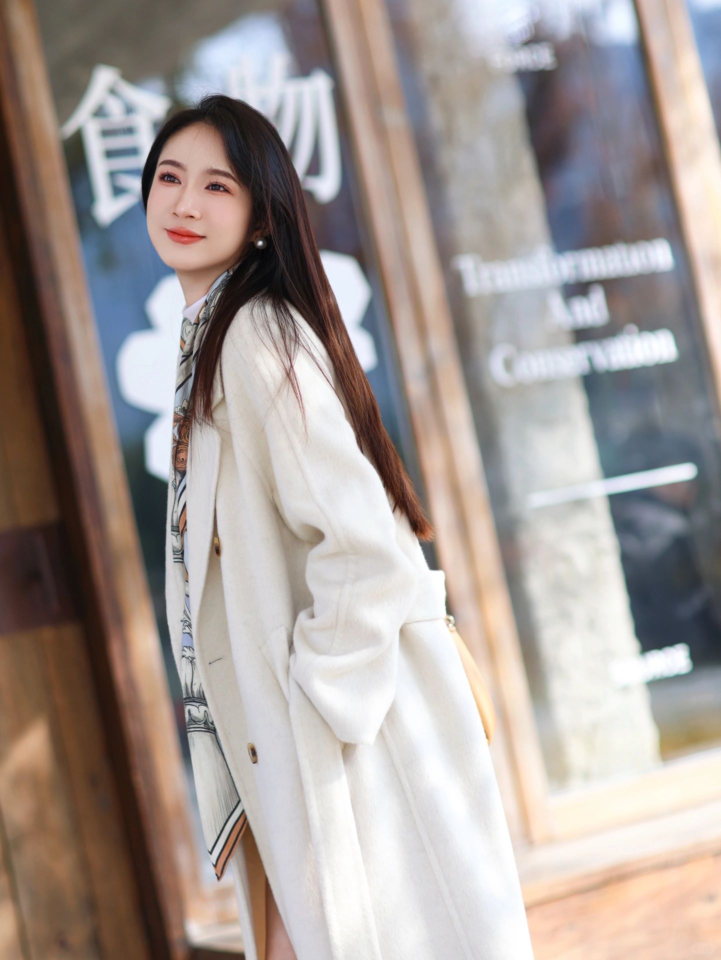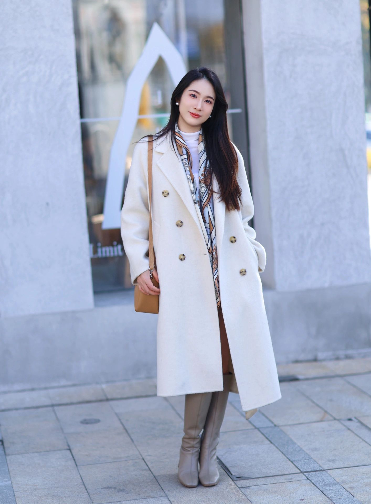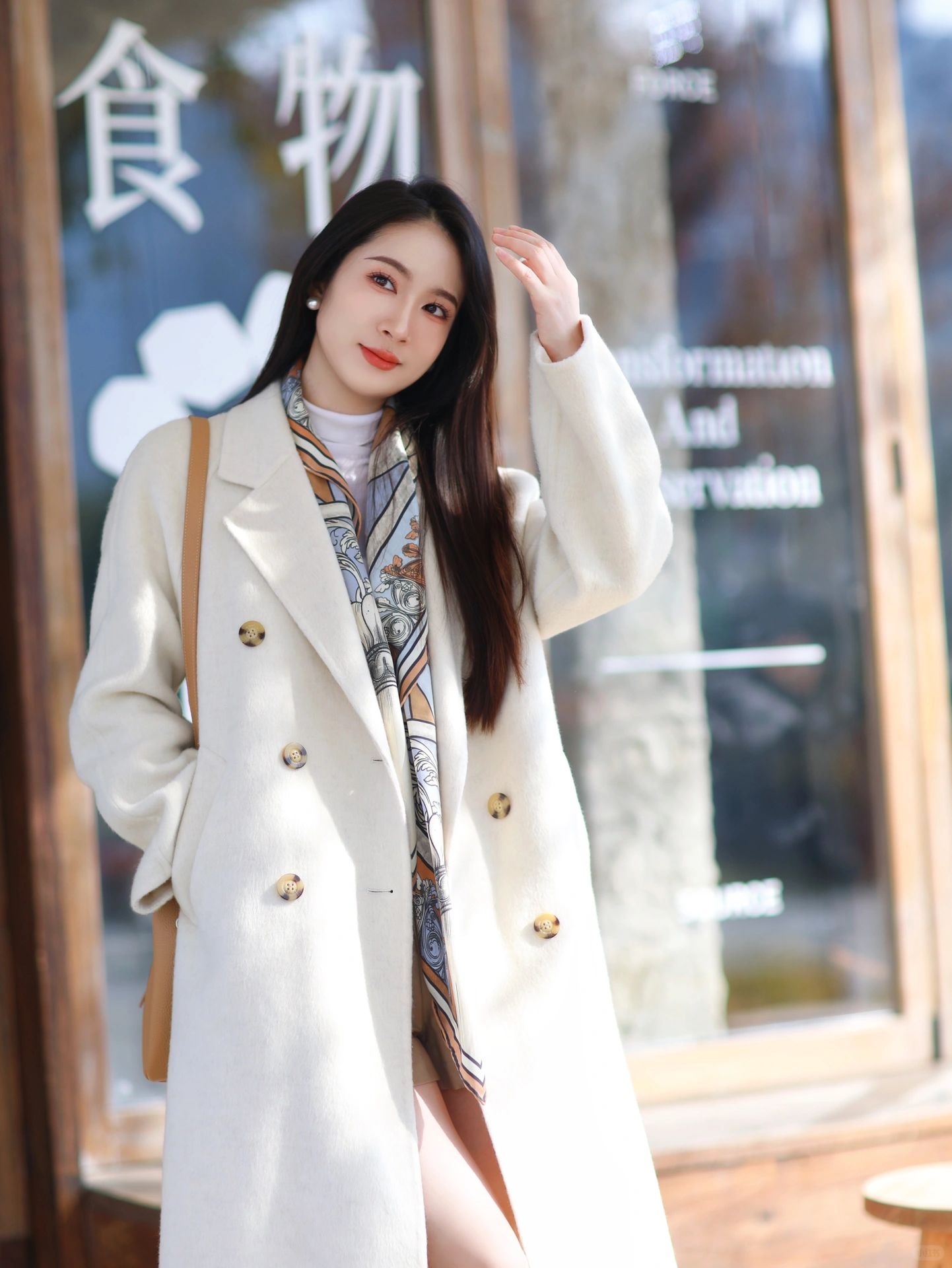 秋冬穿搭 大衣穿搭 白色大衣 丝巾搭配