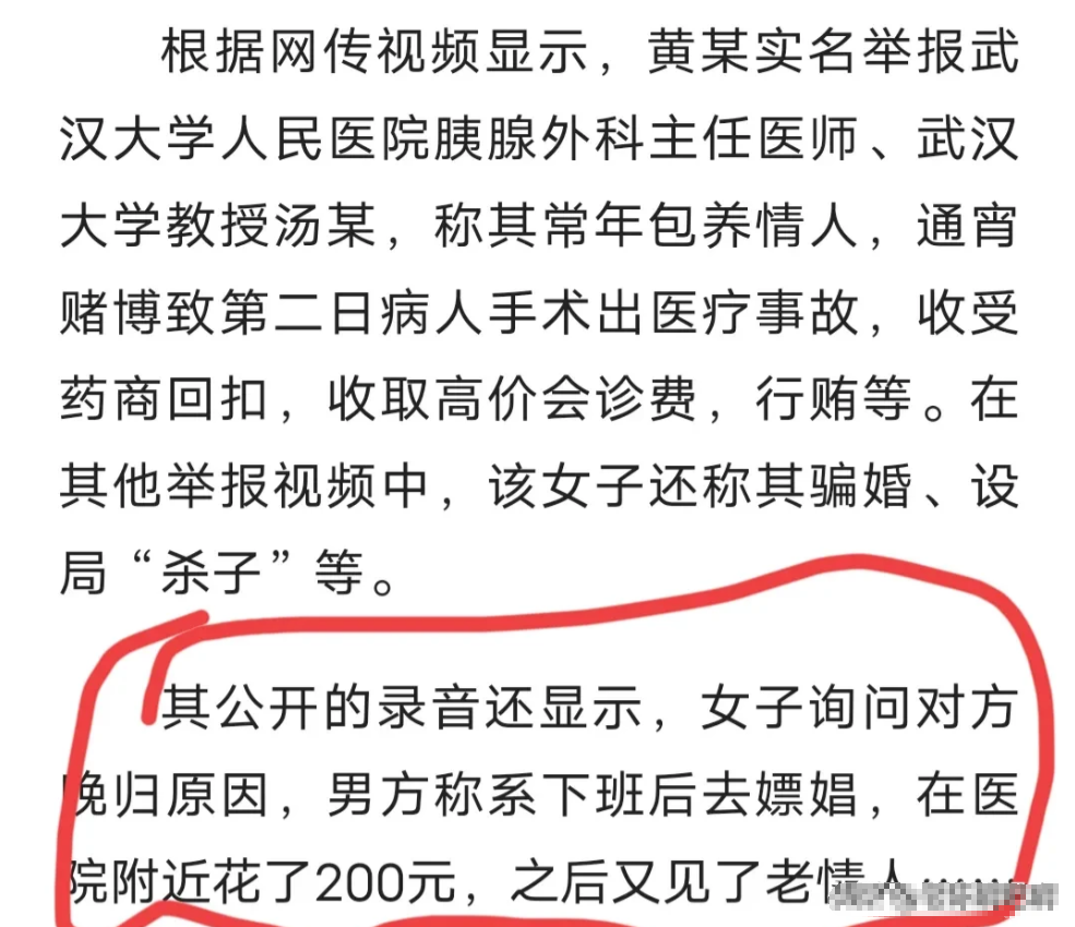 此外黄女士还举报汤志刚接受患者的红包,拿药品回扣,长期包养情人,把第一任妻子逼成精神分裂等罪状。
