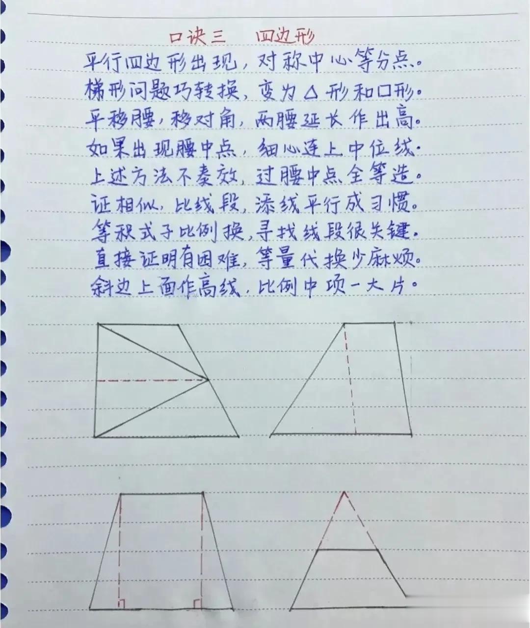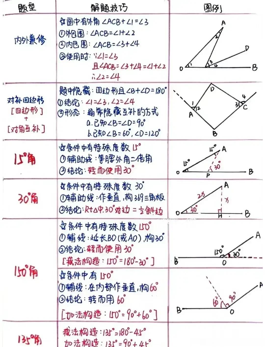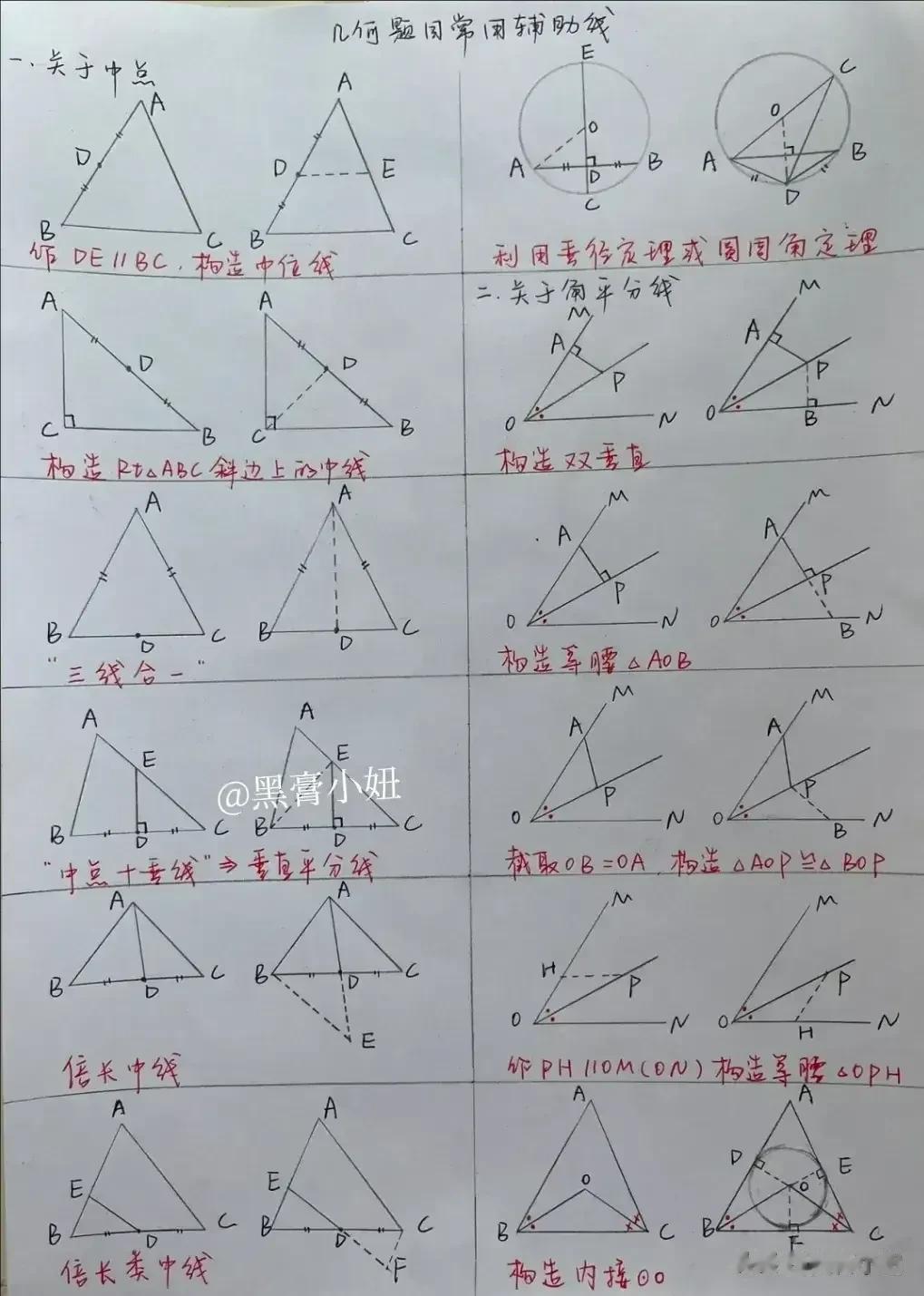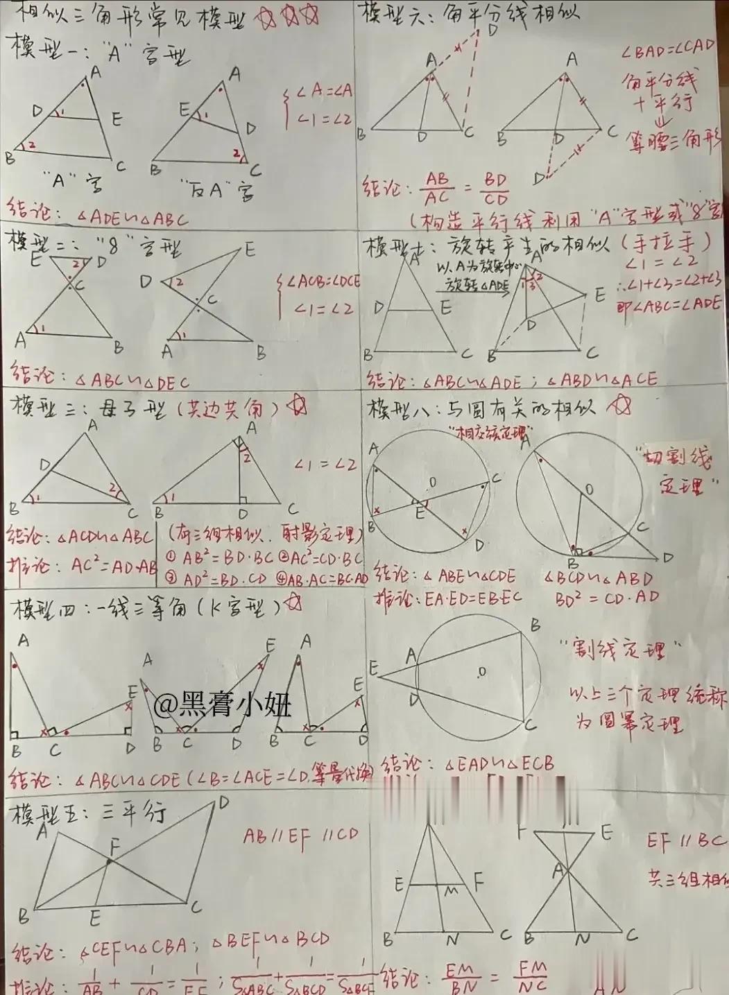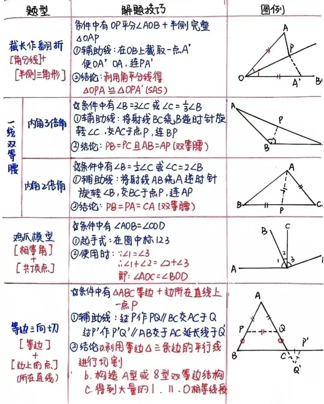 不愧是北大学霸爸爸,为了让上初中的女儿学好数学,手写整理出来几何模型,看完之后,简直太专业了!没有比这份资料更贴心的了,什么辅助线口诀技巧、模型及结论、模型动态图,孩子学完后,考试果然次次不下120分,数学老师都赞叹不已。家有孩子的赶紧收藏!让孩子抓紧时间学一学,练一练,熟练掌握并灵活运用这些知识点,数学轻松拿高分! 初中四大金刚几何模型