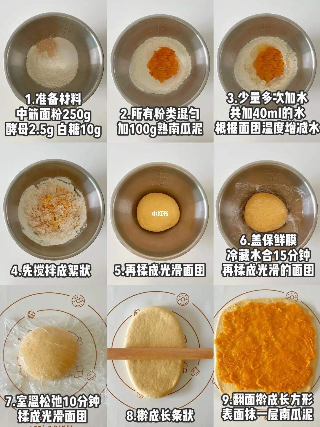 中筋面粉250g、酵母2.5g、熟南瓜泥100g