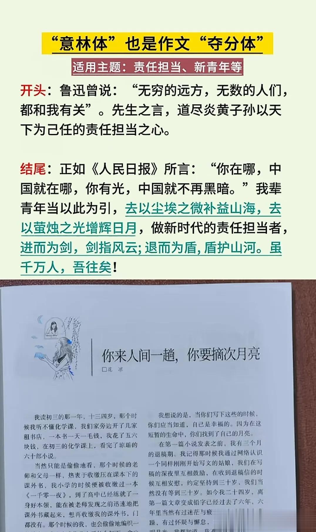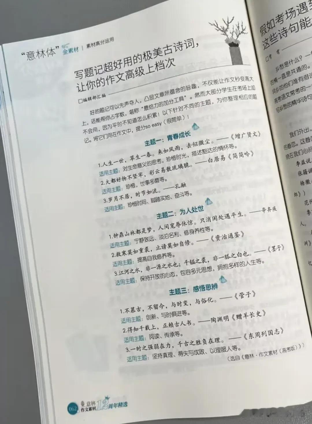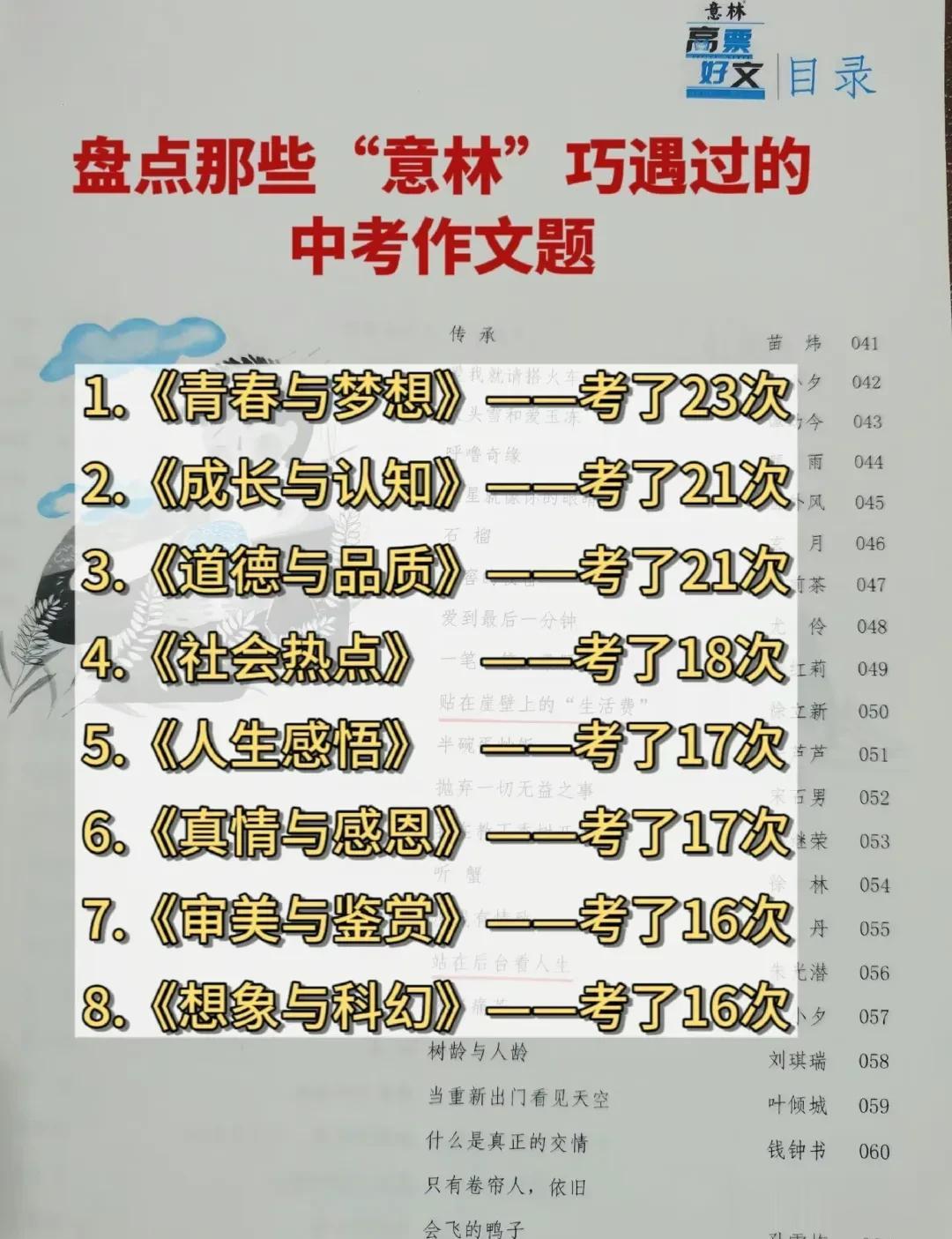 不得不说,这些押题作文开头和结尾的素材金句,写得太好了!运用到作文中,妥妥的高分!看完你就明白,用好金句可以给文章画龙点睛,多看好文章,多学金句,你也能写出好文章! 所以说,金句在文章里有多重要!没事让孩子看一看,多积累《意林》作文里的神仙点睛金句,积累多了,都会滔滔不绝,下笔成章,写出高分作文文章! 《意林》作文素材13周年,连续13年“巧遇”中高考作文,所选皆精华。多读意林为写作打下好基础。 中高考任选押题作文