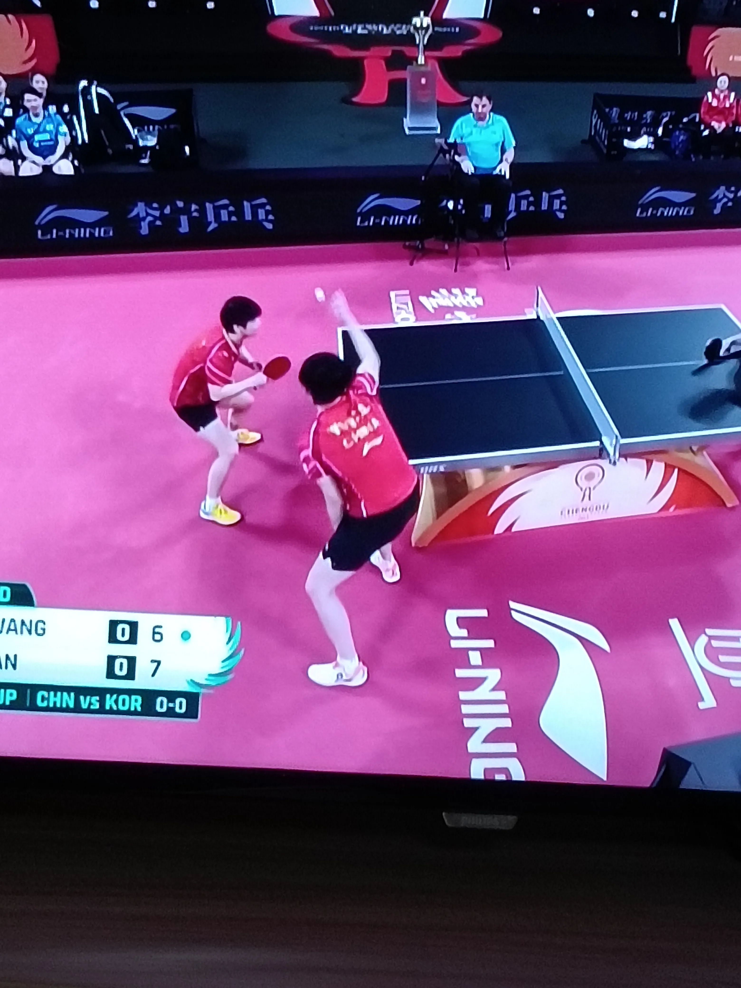 团体冠军赛已经打响,看混双,中国依旧是王楚钦孙颖莎,韩国派出申玉斌安宰贤新骑兵迎战中国。中国队虽然3:0首先拿下对手,但孙颖莎的失误太多,尤其是打出界,至少有6个球。希望孙颖莎及时总结,迎接更重要的比赛。 祝贺王楚钦孙颖莎。