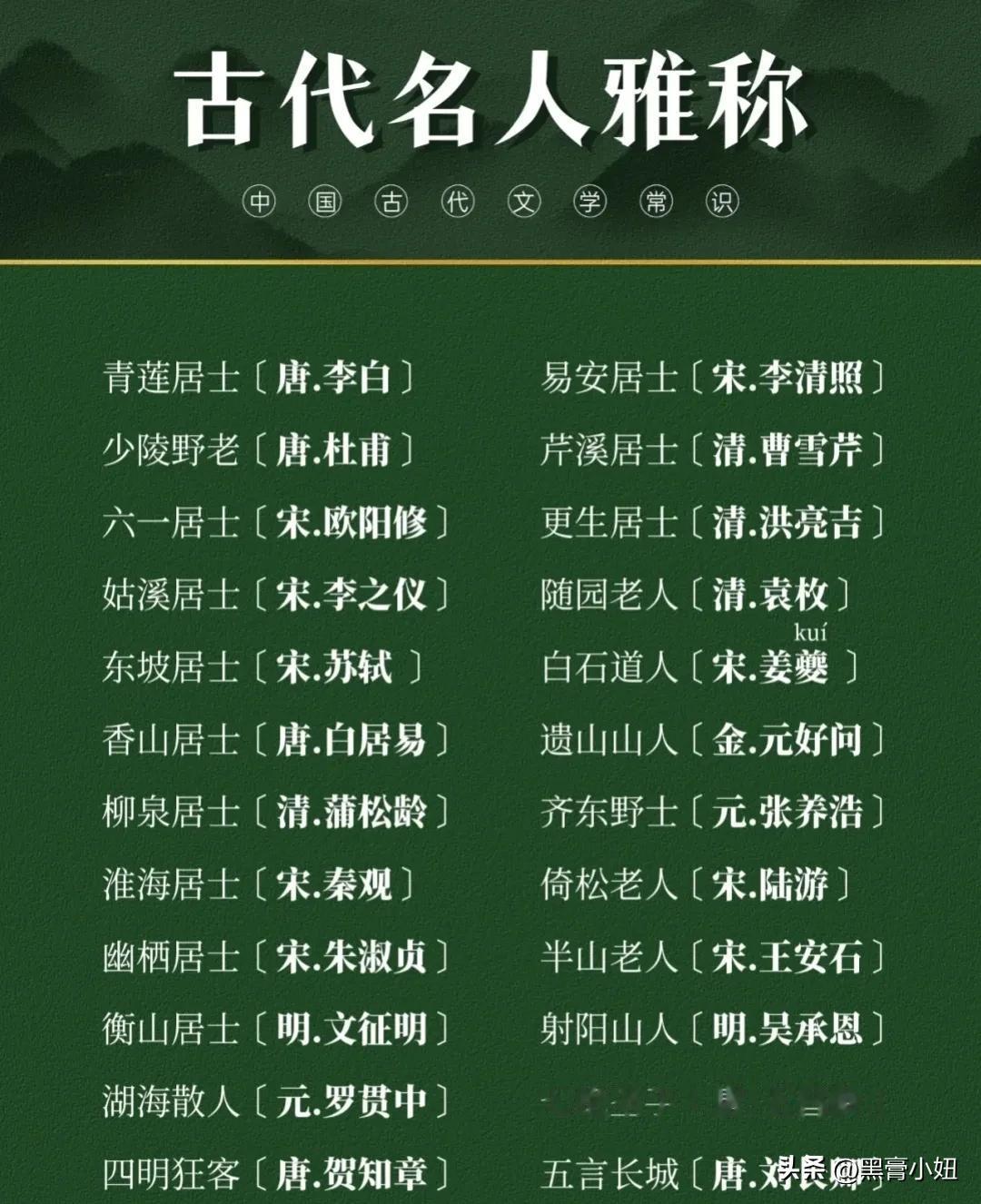 背完它,语文基础稳稳不丢分! 老师真的是用心良苦呐!一口气把语文文学常识全都整理出来了,包含中国四大、古人对万物的雅称、二十四节气含义、古人雅称、文明礼仪用语、传统文化、古代计时单位等,这些常识蕴藏着浓厚的文化底蕴,是老祖宗的智慧结晶。家长们保存下来,尽早让孩子背一背这些文学常识,不但积累了知识,还能提升语文成绩! 文学常识考哪些,考频如何,怎么考,有哪些新考法,要怎么备考,下方链接文学常识走起! 小初必背文学文化常识
