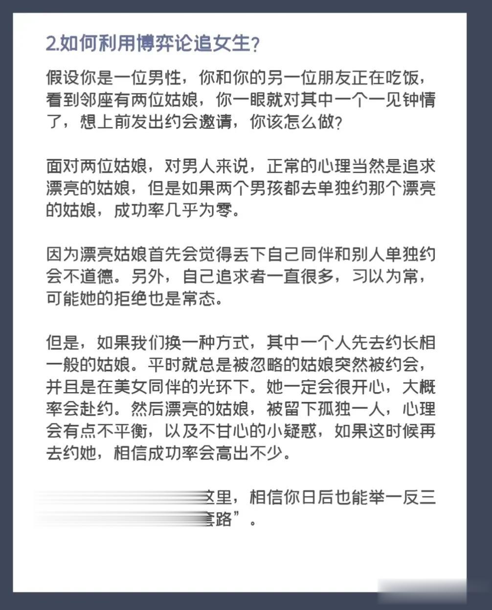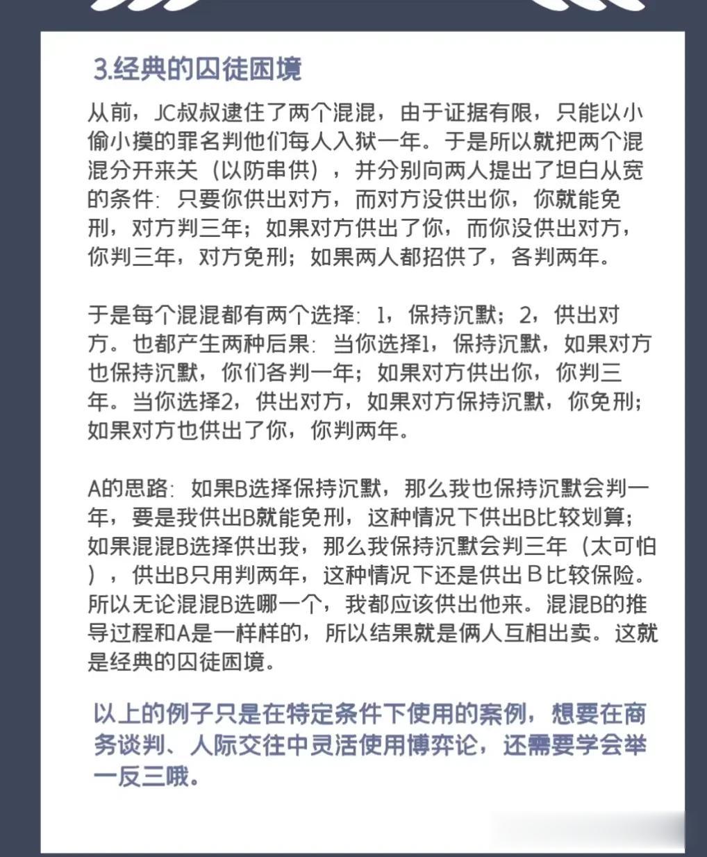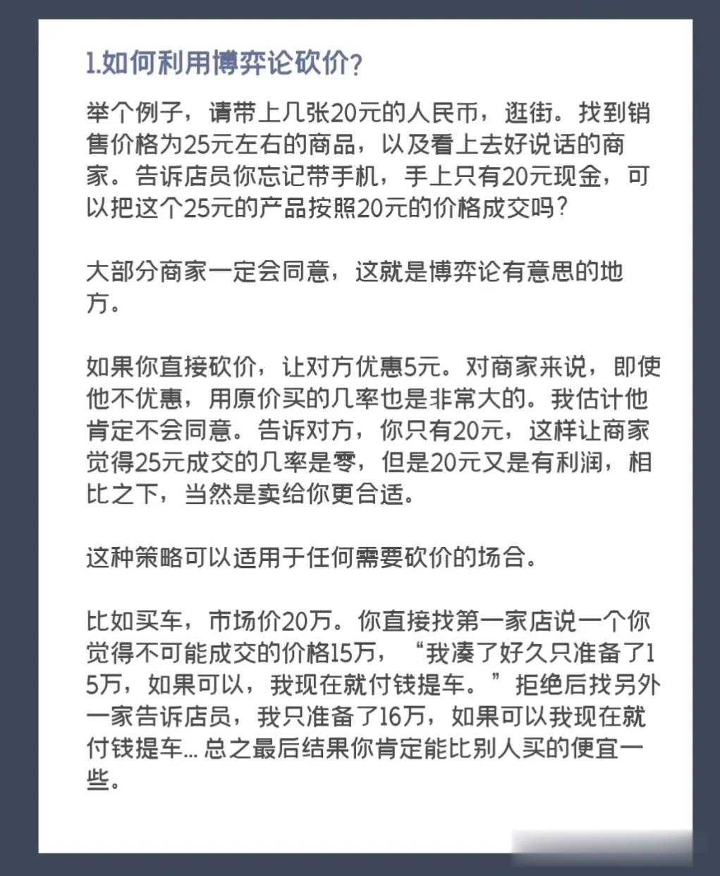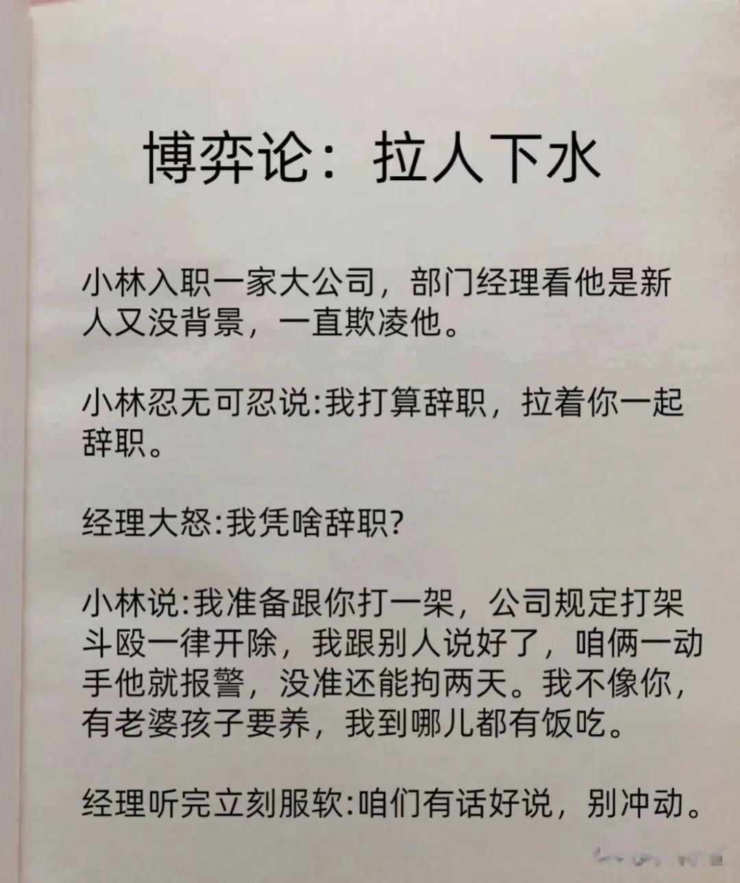教大家一个对付小人的心理博弈术,学会了再也没人敢欺负你!面对工作和生活的难题,都能轻松解决,这就是神奇的“博弈论”——解决问题的手段和方法,偷偷学会它,让你在人际交往中立于不败之地! 商业上与对手竞争需要博弈! 同事之间争权夺利需要博弈! 创业,经商,工作,生活中博弈无处不在。用博弈论来指导生活,会让你更聪明地立身处世,这是应对复杂现实的高级谋略,打开人生困境的实用智慧,通赢人生弈局。
