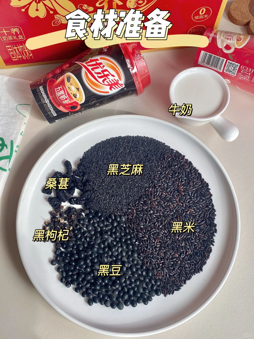 📝食材:黑芝麻、黑米、黑豆、黑枸杞、黑桑葚