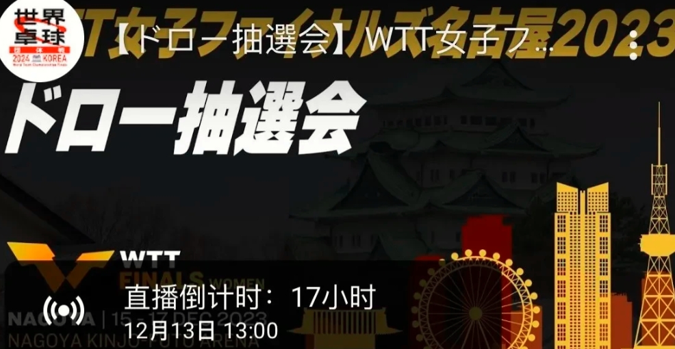 12月13日,北京时间13:00,名古屋女子总决赛举行抽签仪式,东电直播。