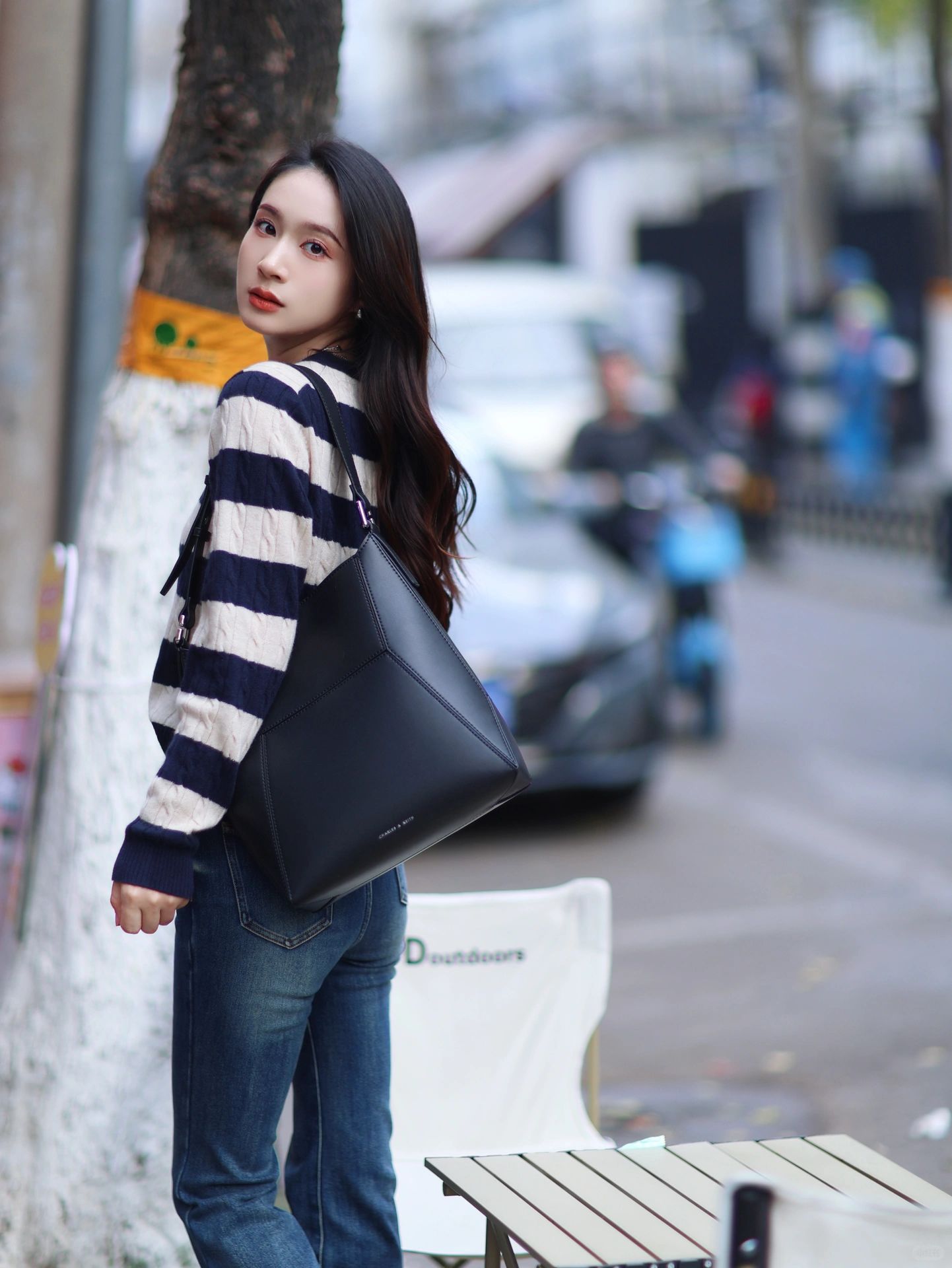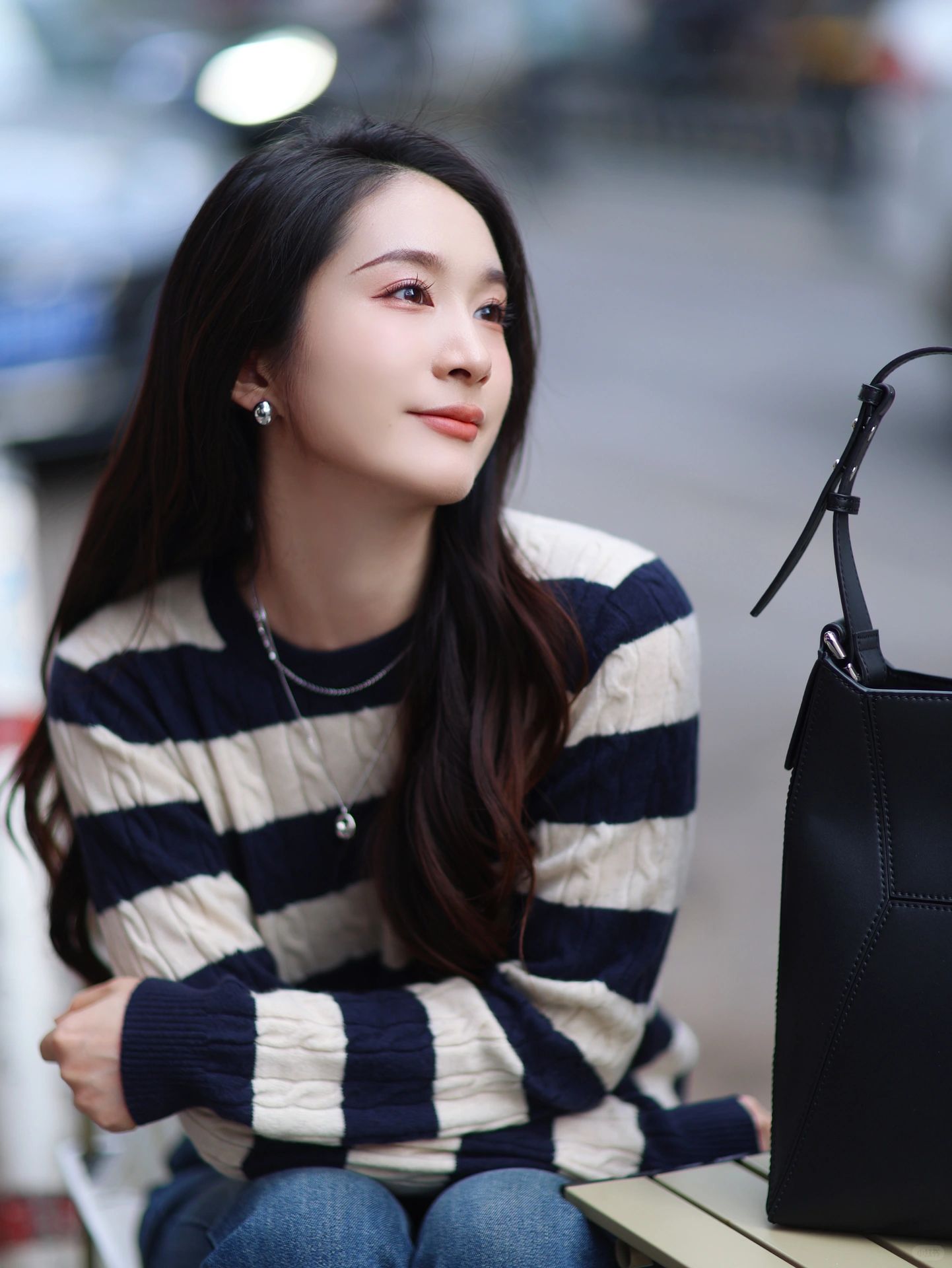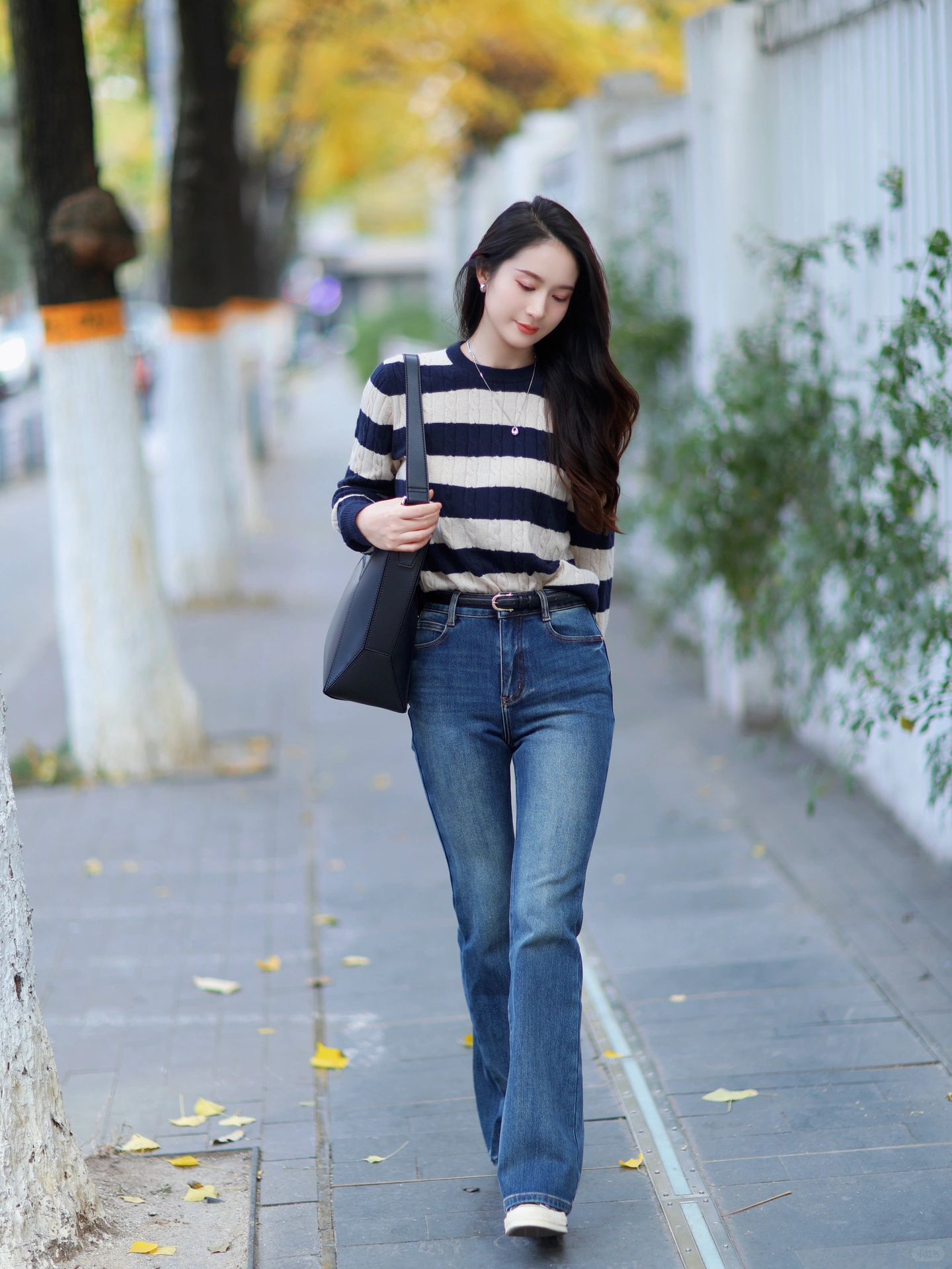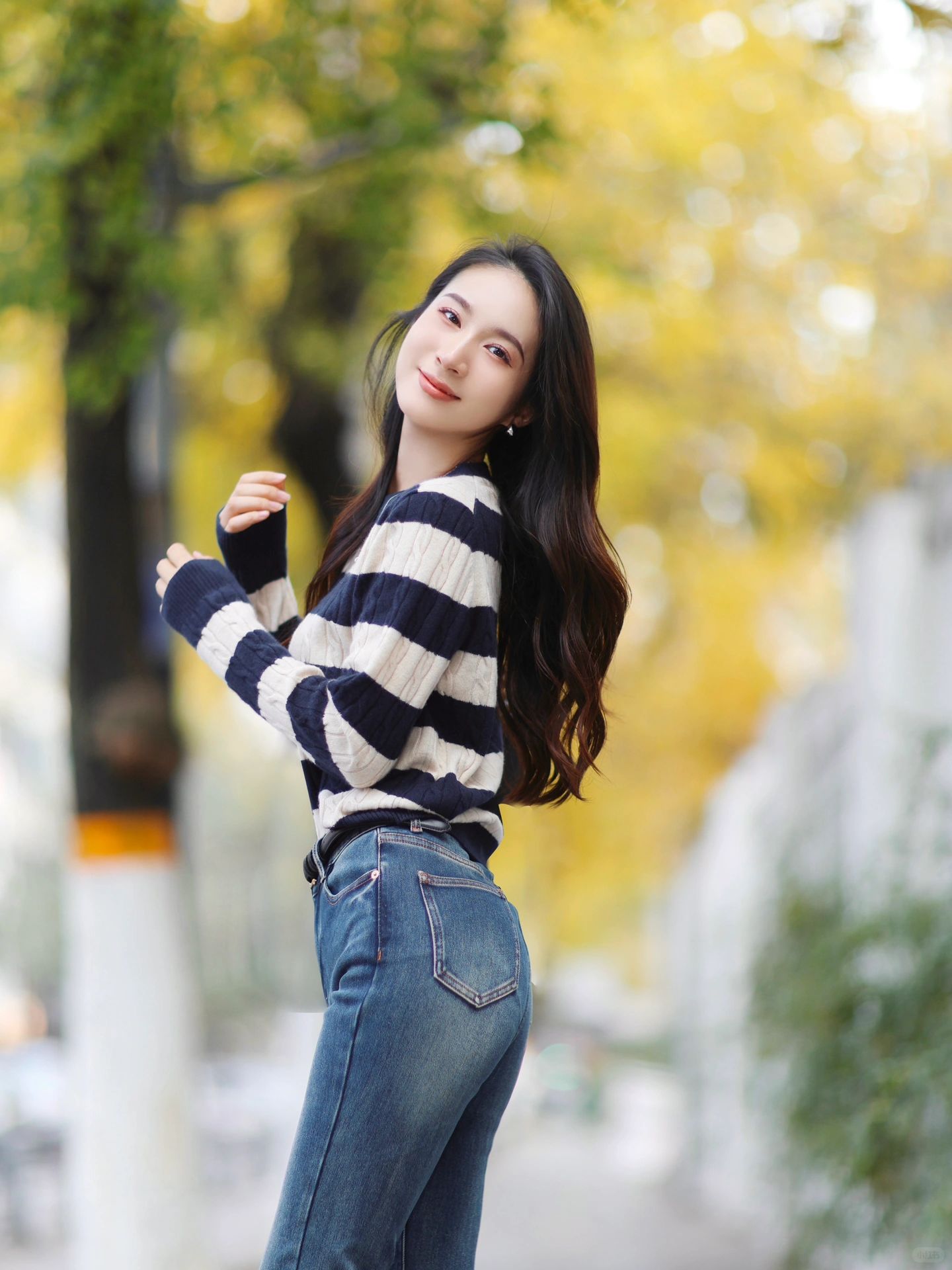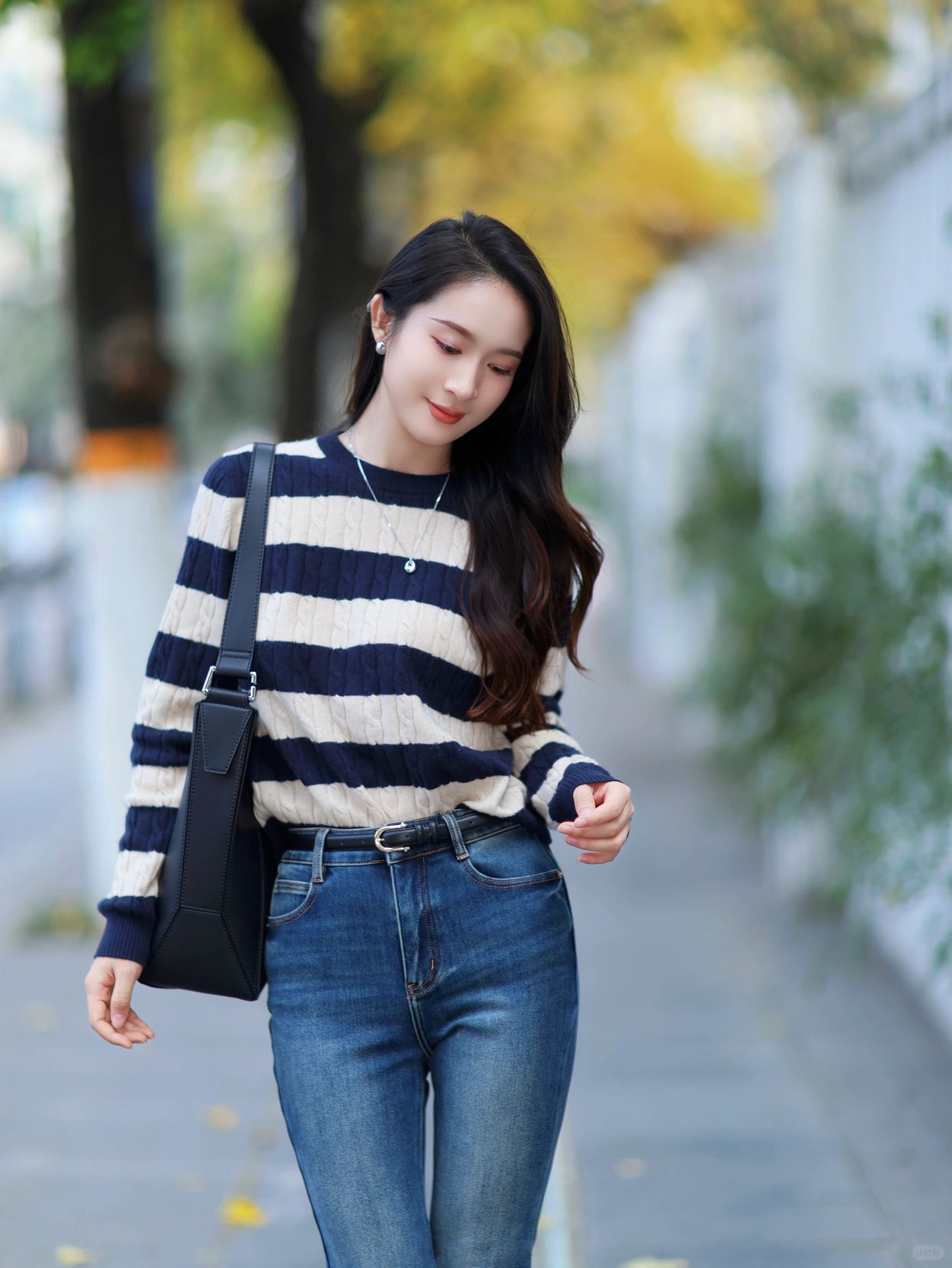 条纹针织➕牛仔裤👖简单随性感