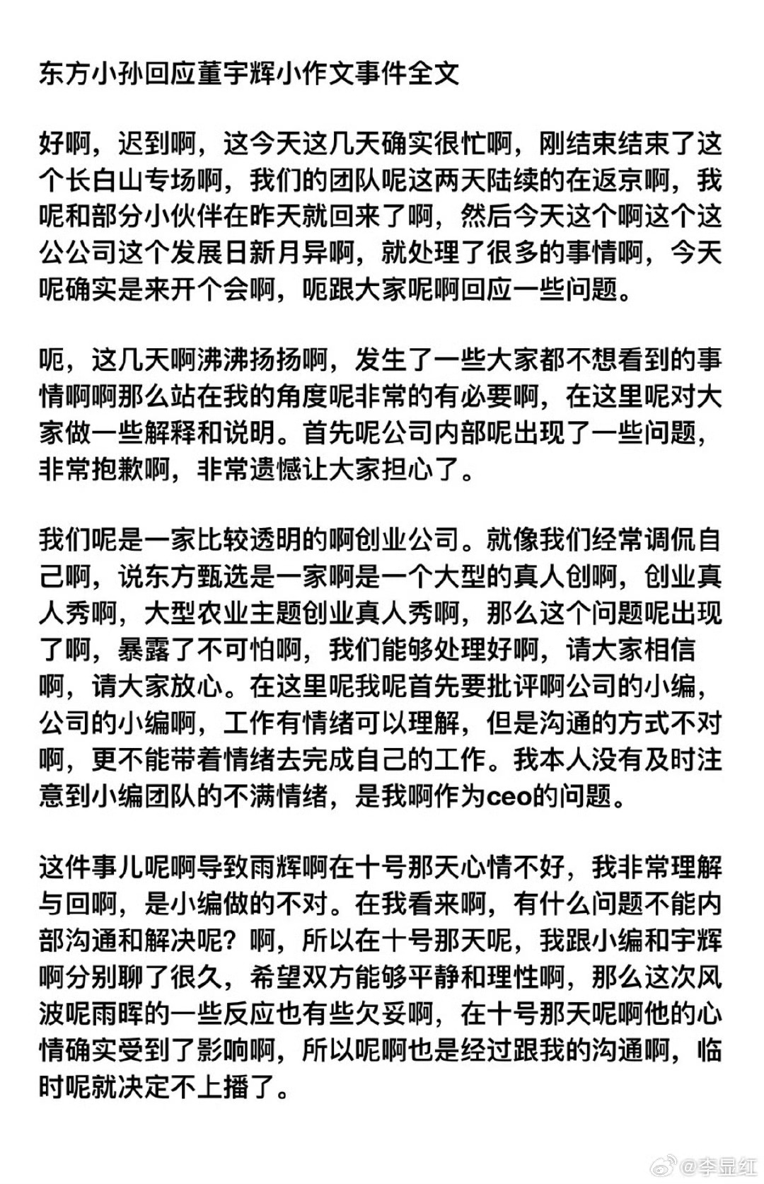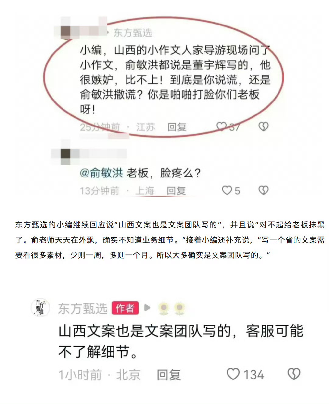 东方甄选的小编是不是太自以为是了,这种事情内部工作总结或者对外跳槽时自己说就好,文案本来就是编辑的本职工作,厂商发布会老板上台的ppt文案说什么哪家不是品牌部干的,有人会跳出来说吗?