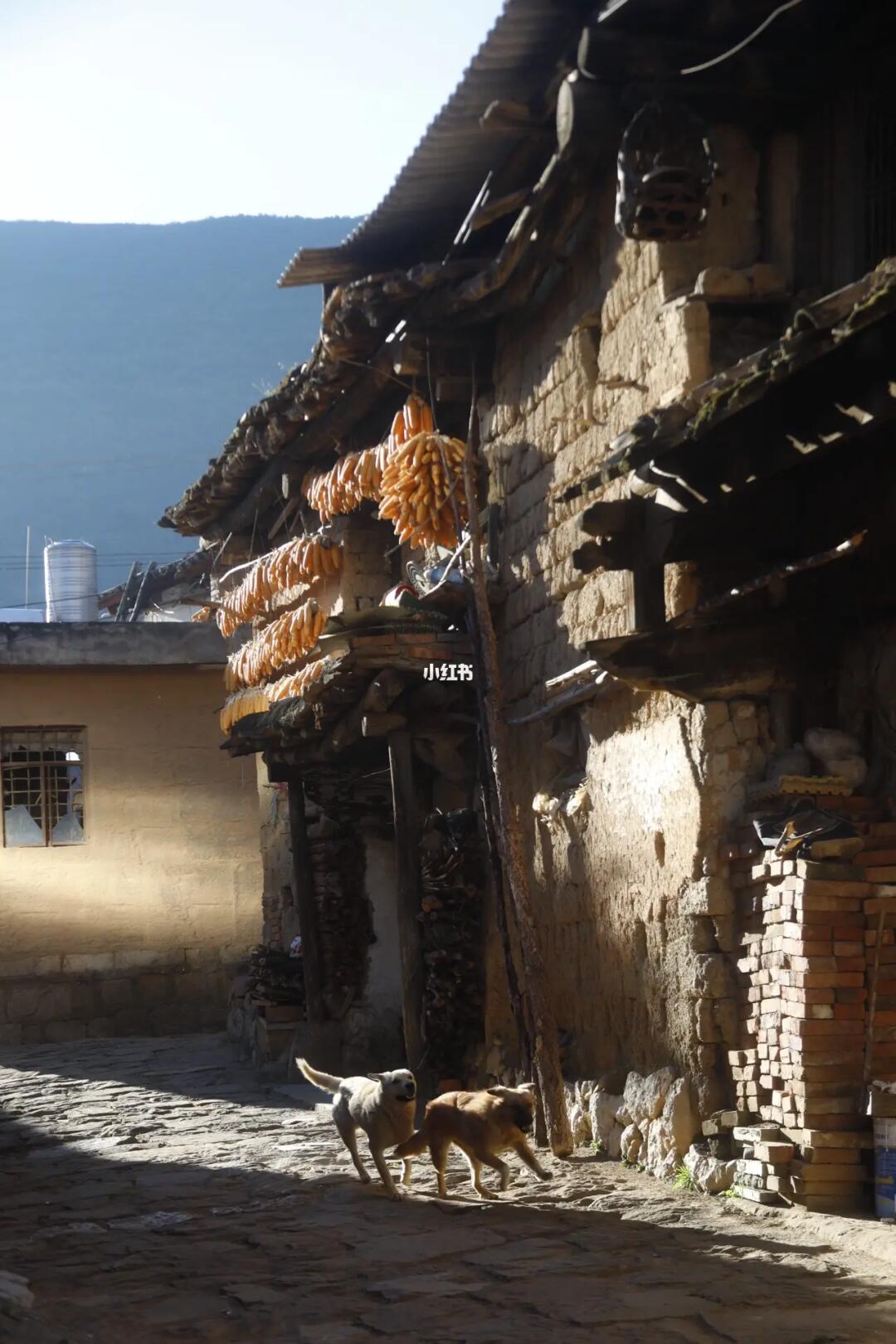 各家各户都会在屋顶上晾晒玉米🌽